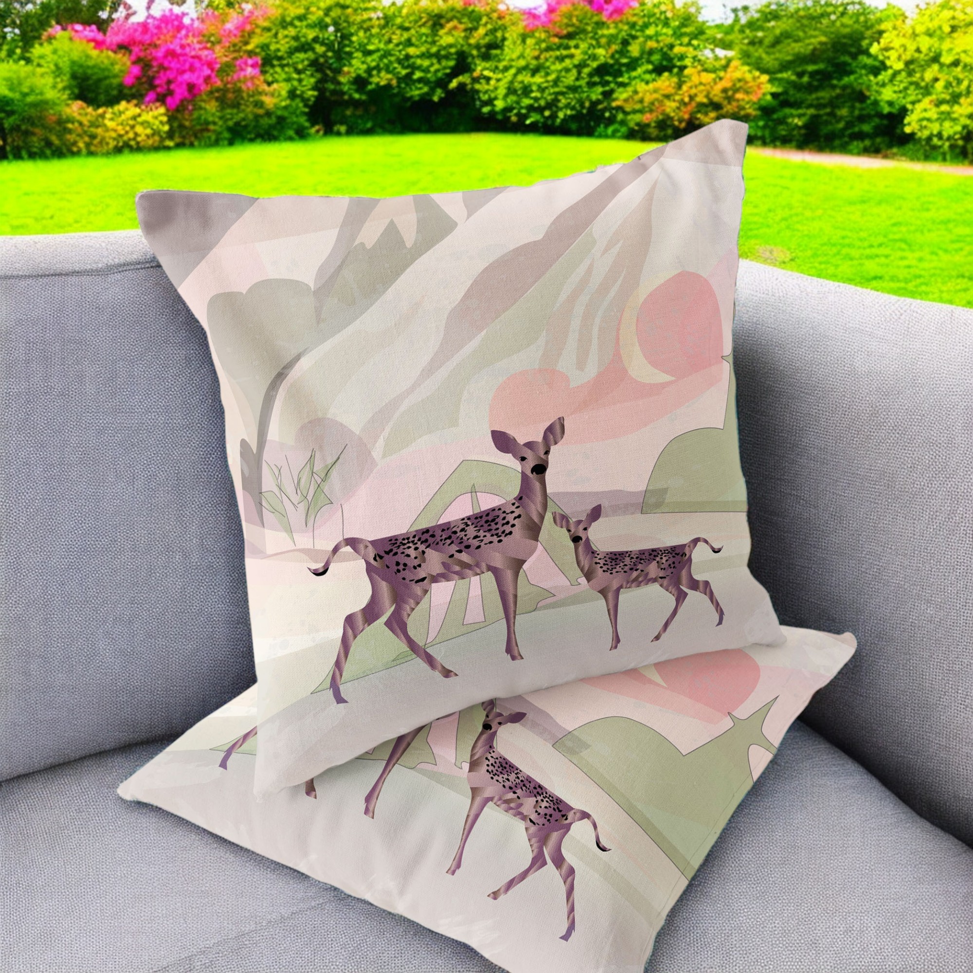 Curious Deer Indoor/Outdoor Set of 2 Pillows in Black Pink