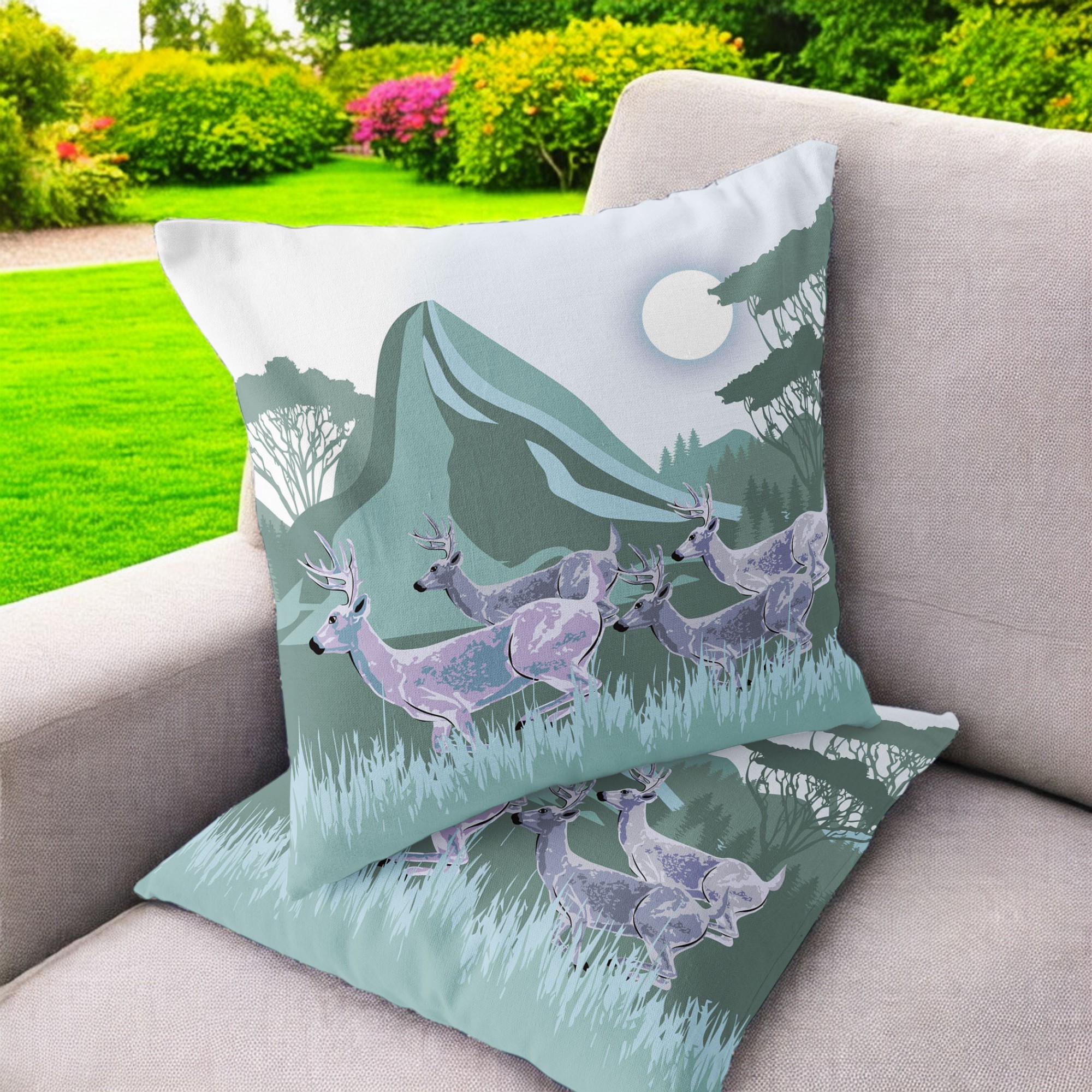 Reindeer Herd Indoor/Outdoor Set of 2 Pillows in Green White