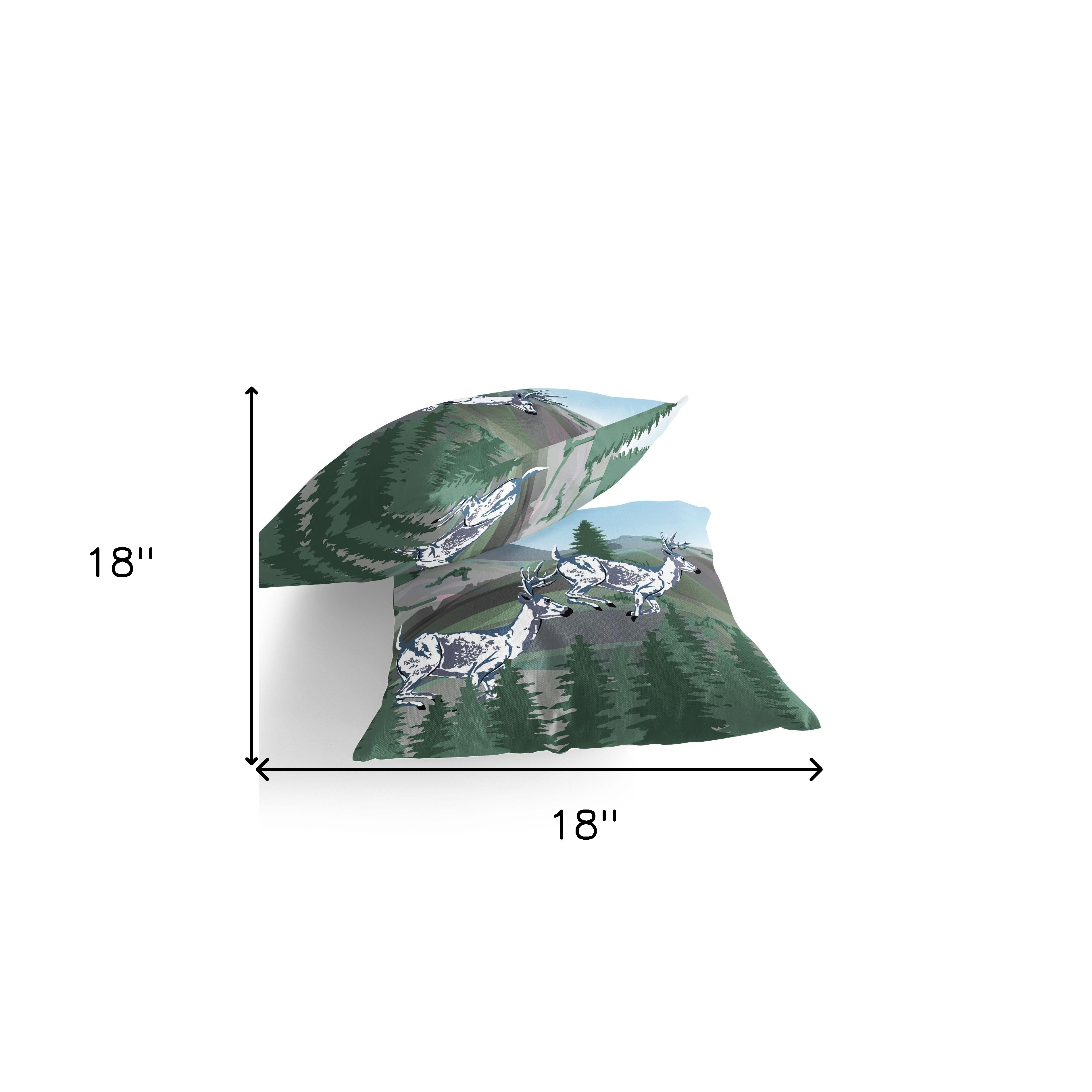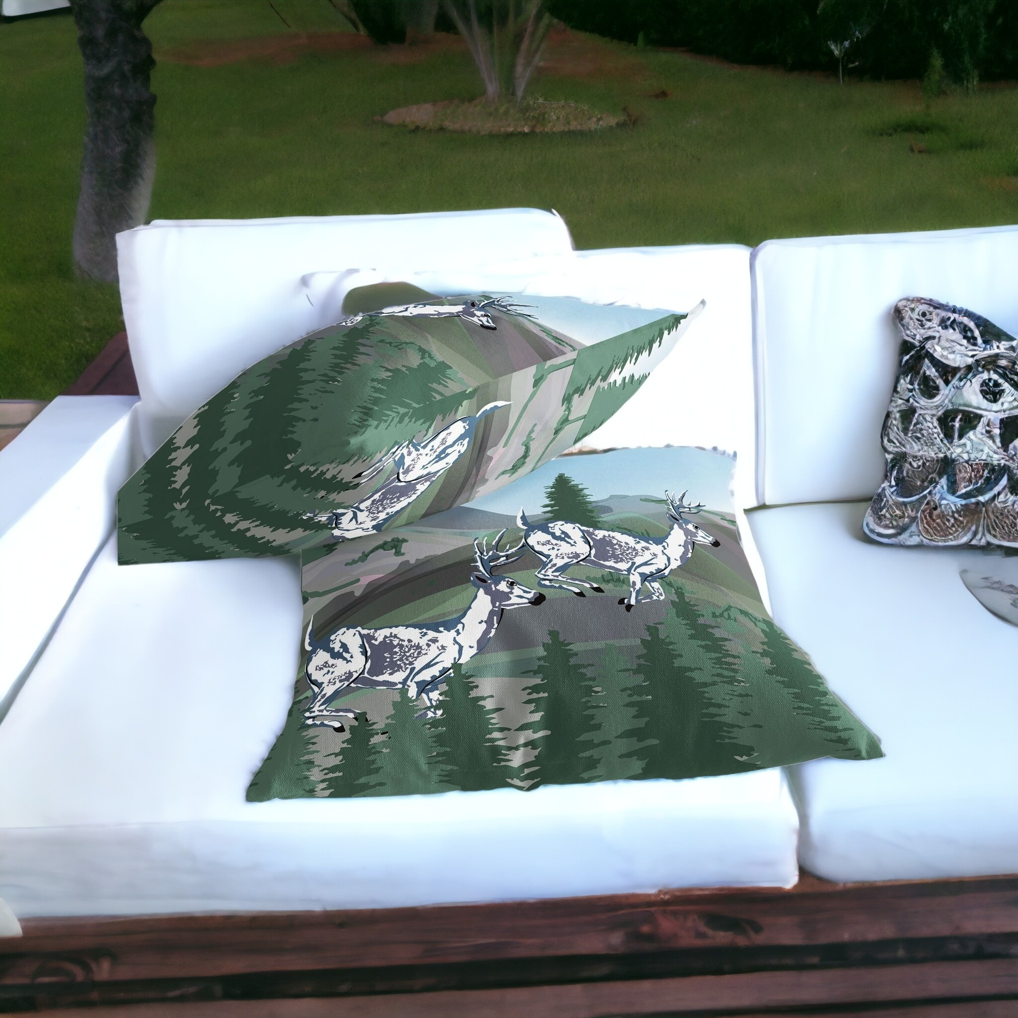 Running Reindeer Indoor/Outdoor Set of 2 Pillows in Green Blue