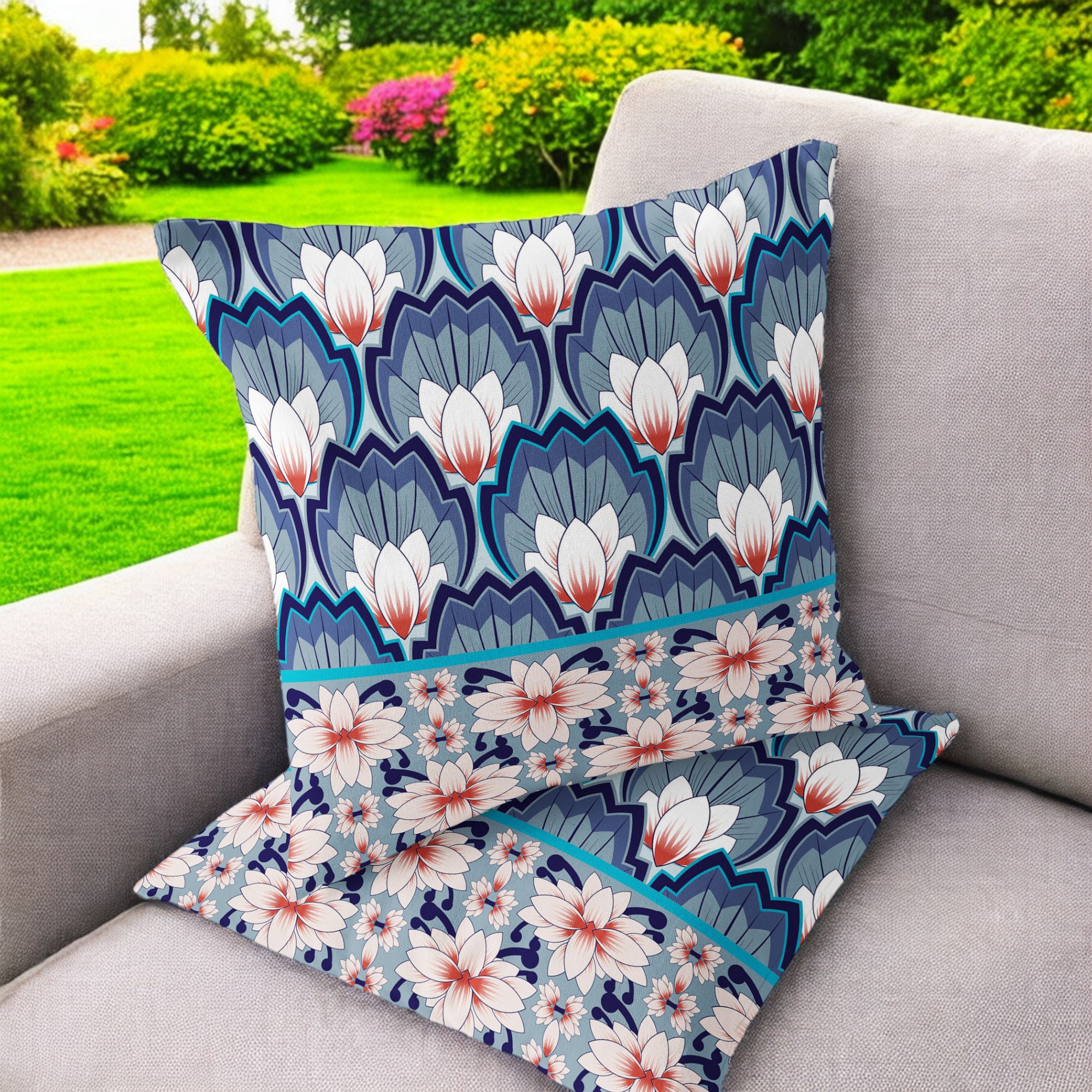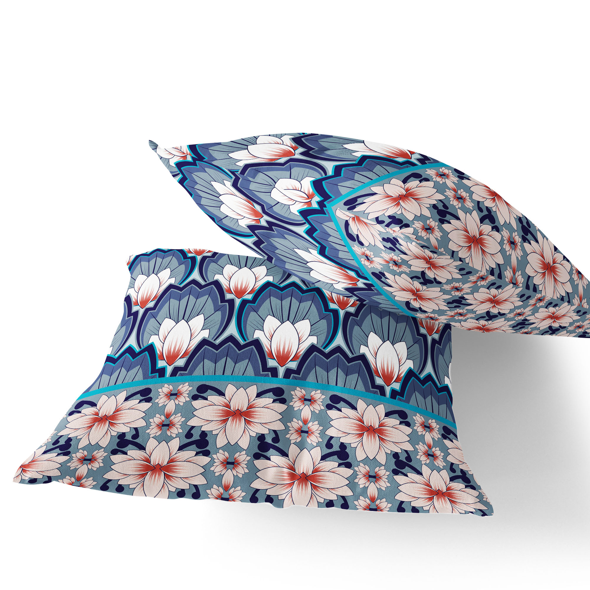 Lotus Indoor/Outdoor Set of 2 Pillows in Gray Blue Orange