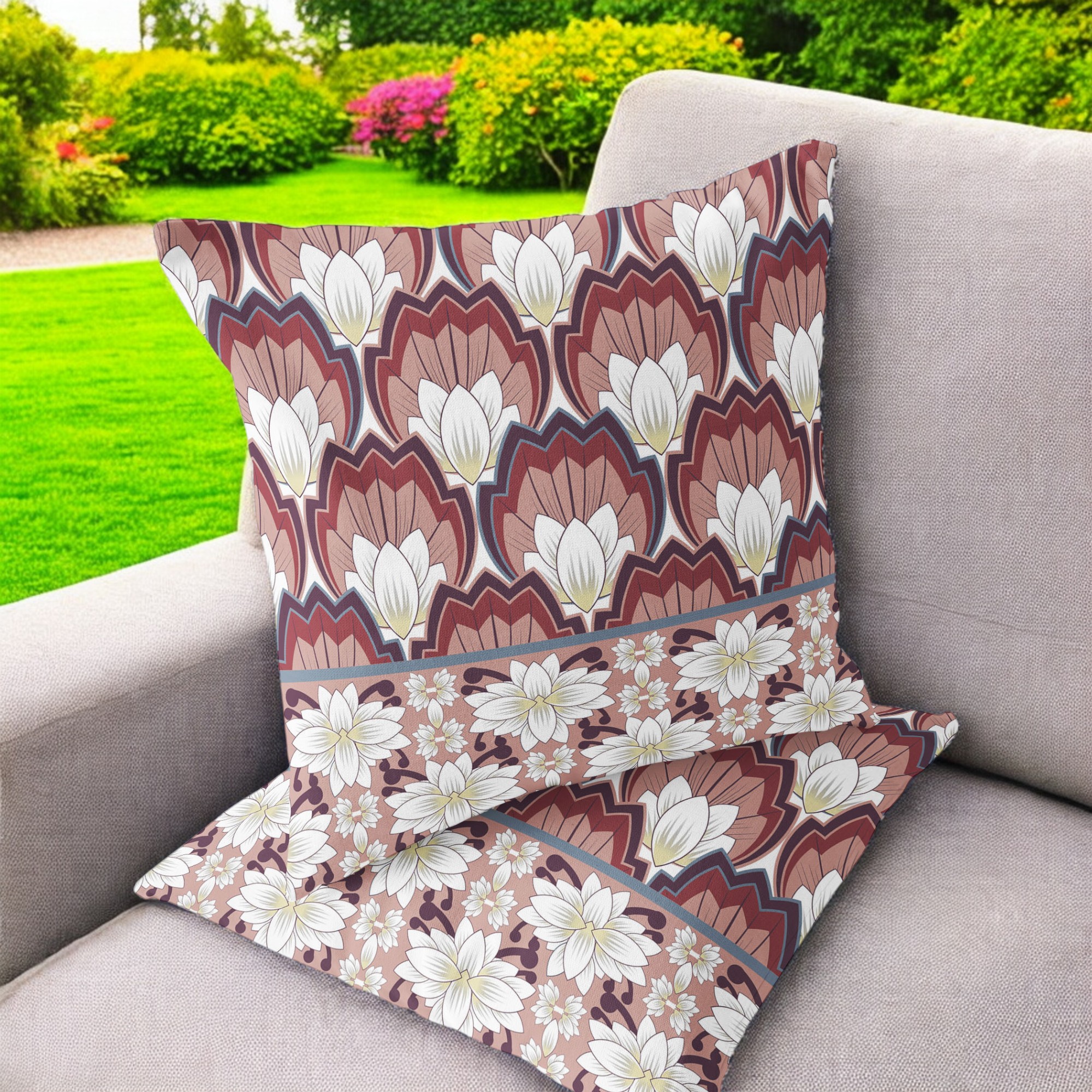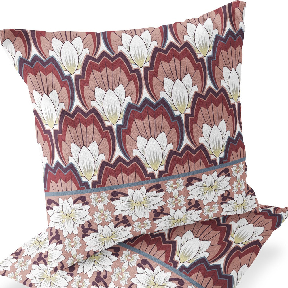 Lotus Indoor/Outdoor Set of 2 Pillows in Red White
