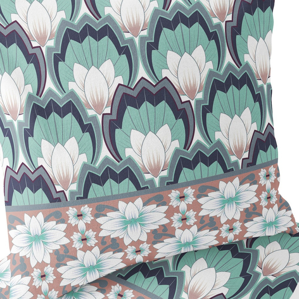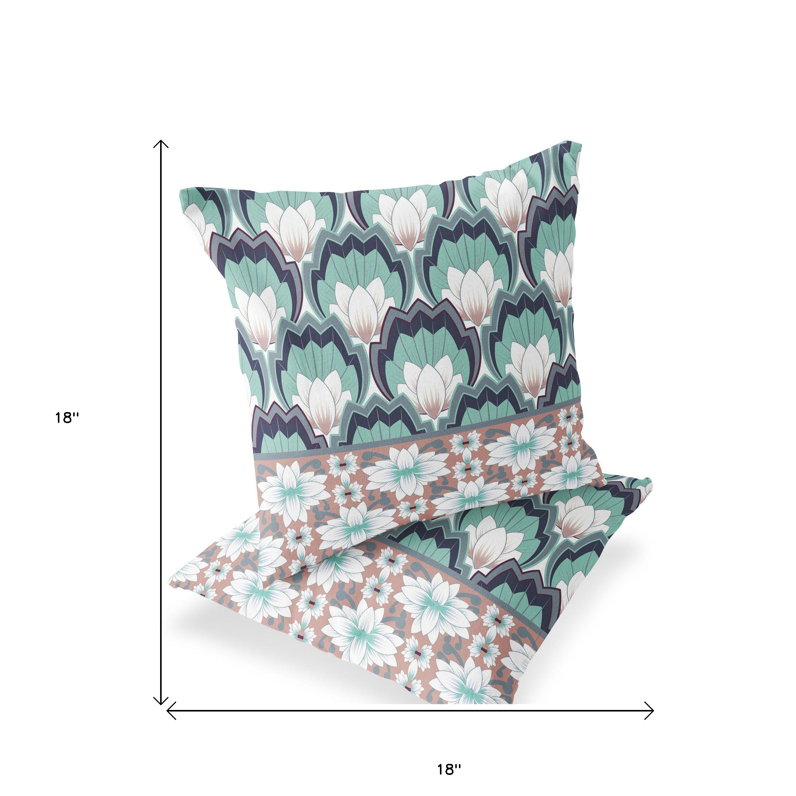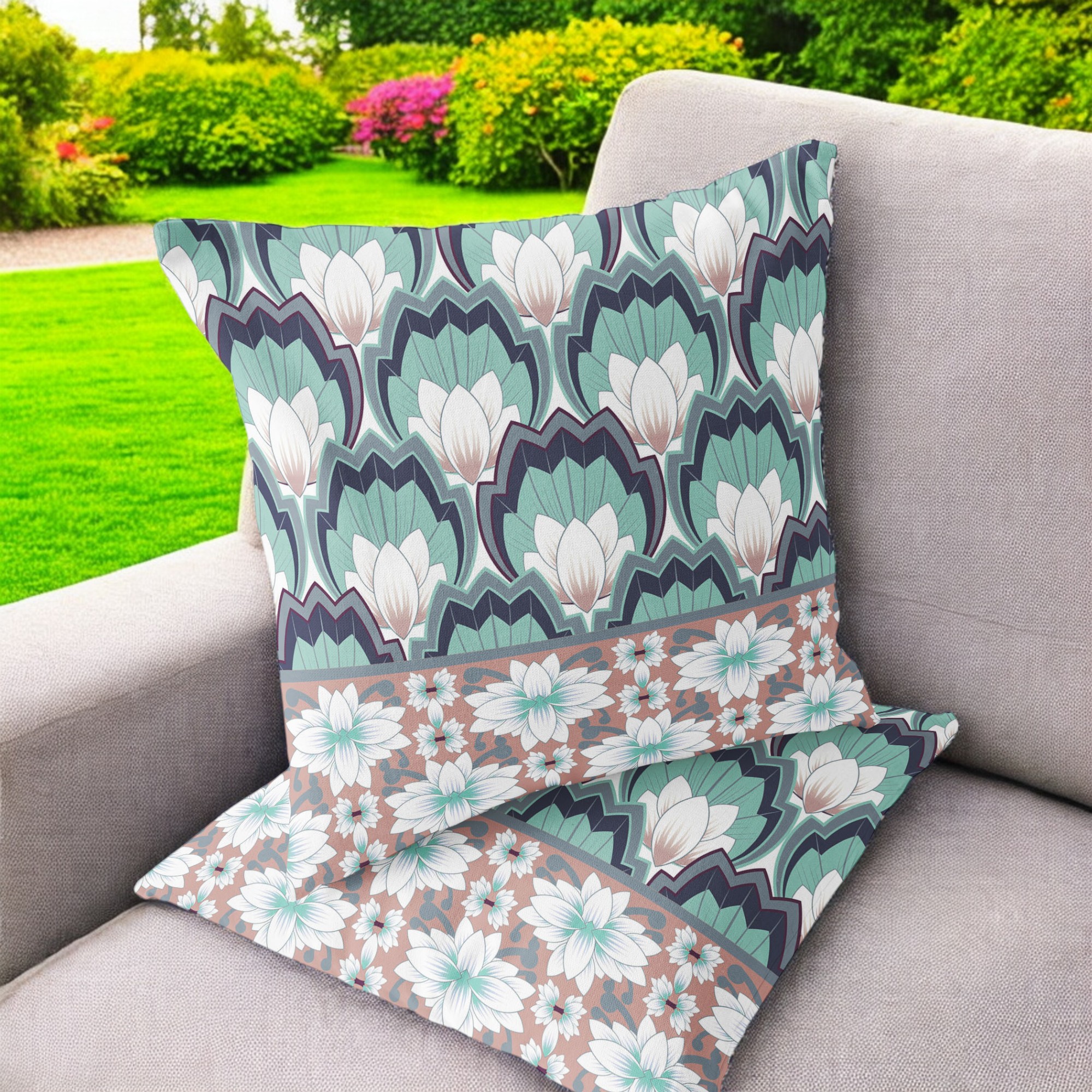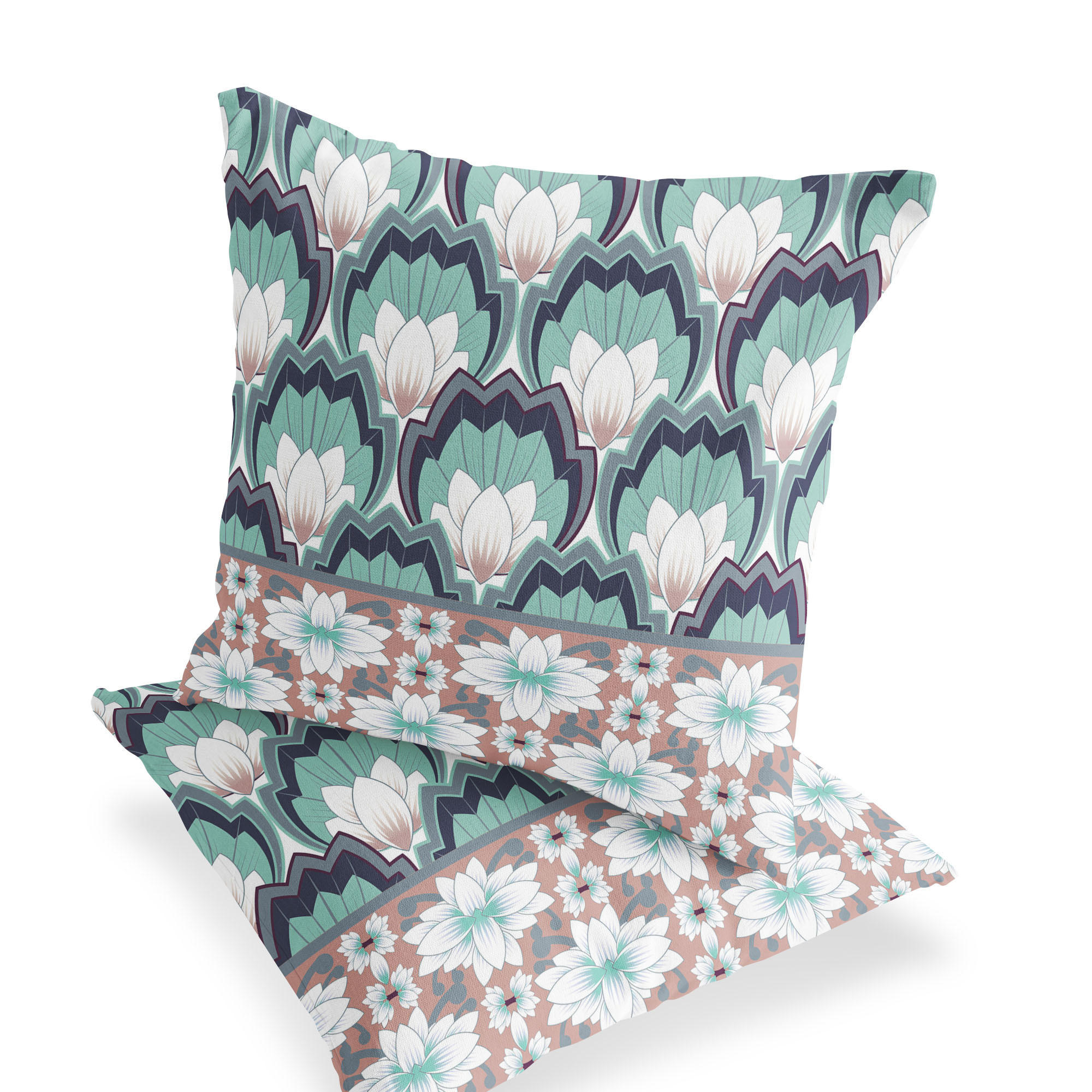 Lotus Indoor/Outdoor Set of 2 Pillows in White Green Pink