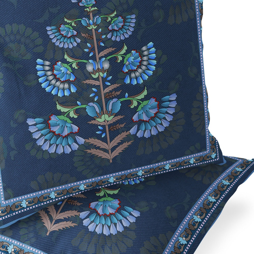 Set of Two Blue Botanical Indoor Outdoor Throw Pillow