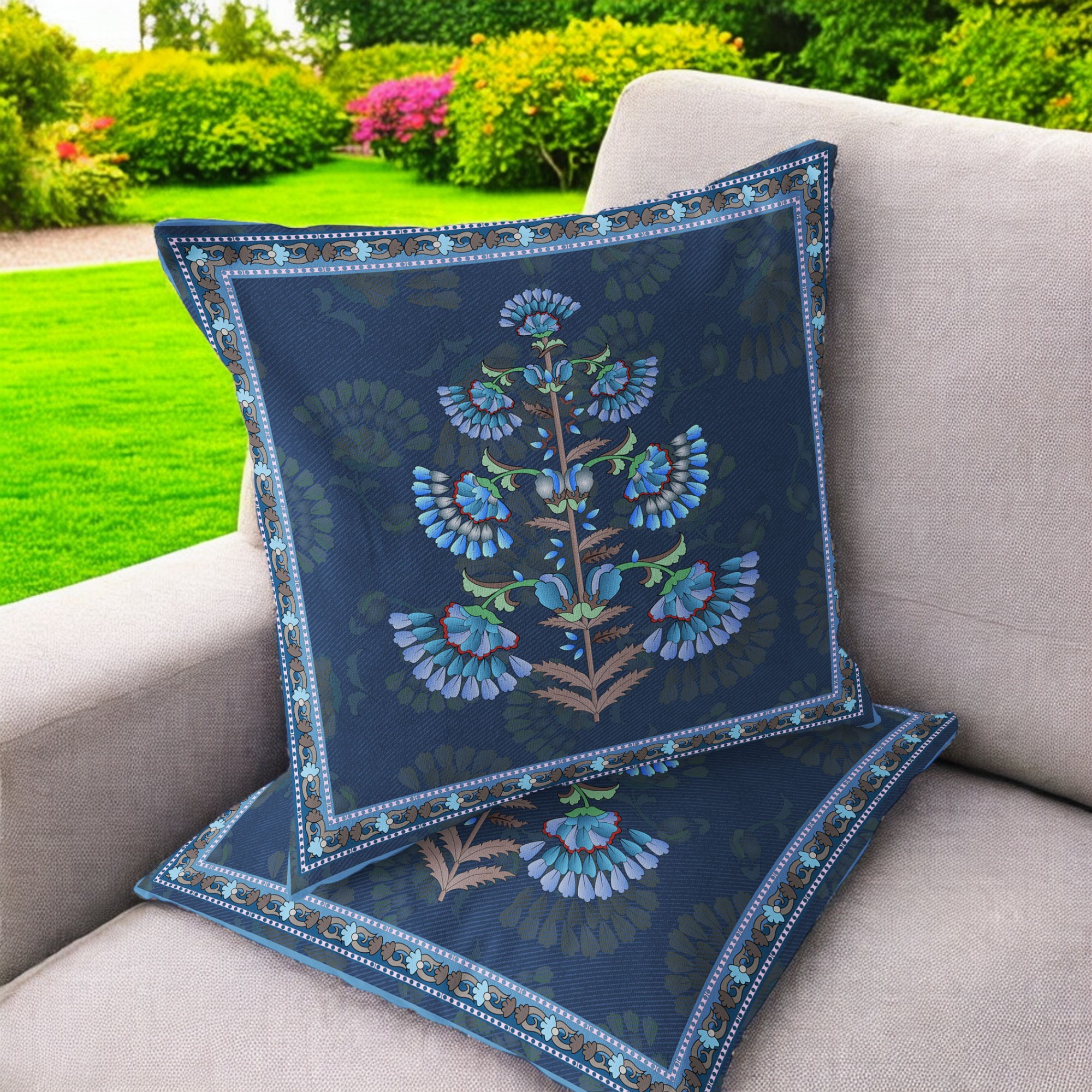 Mughal Buta Indoor/Outdoor Set of 2 Pillows in Blue Brown