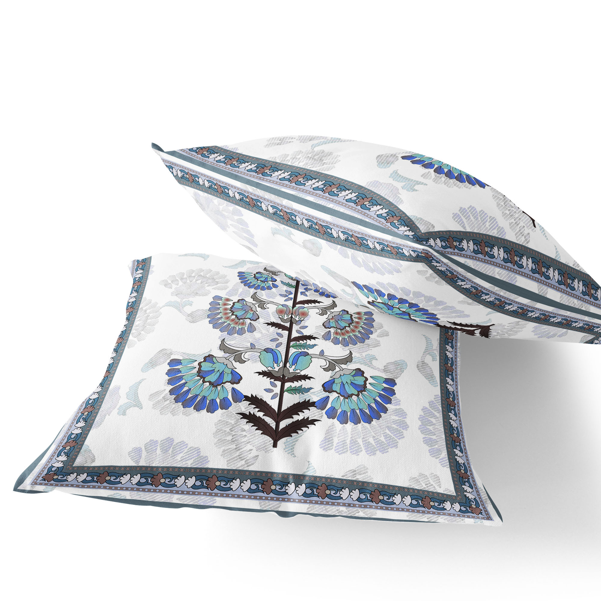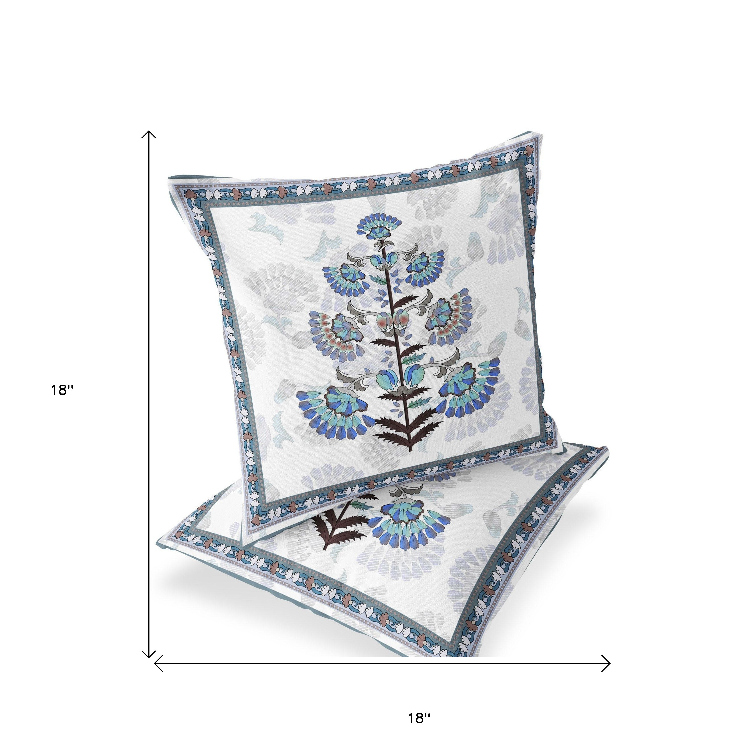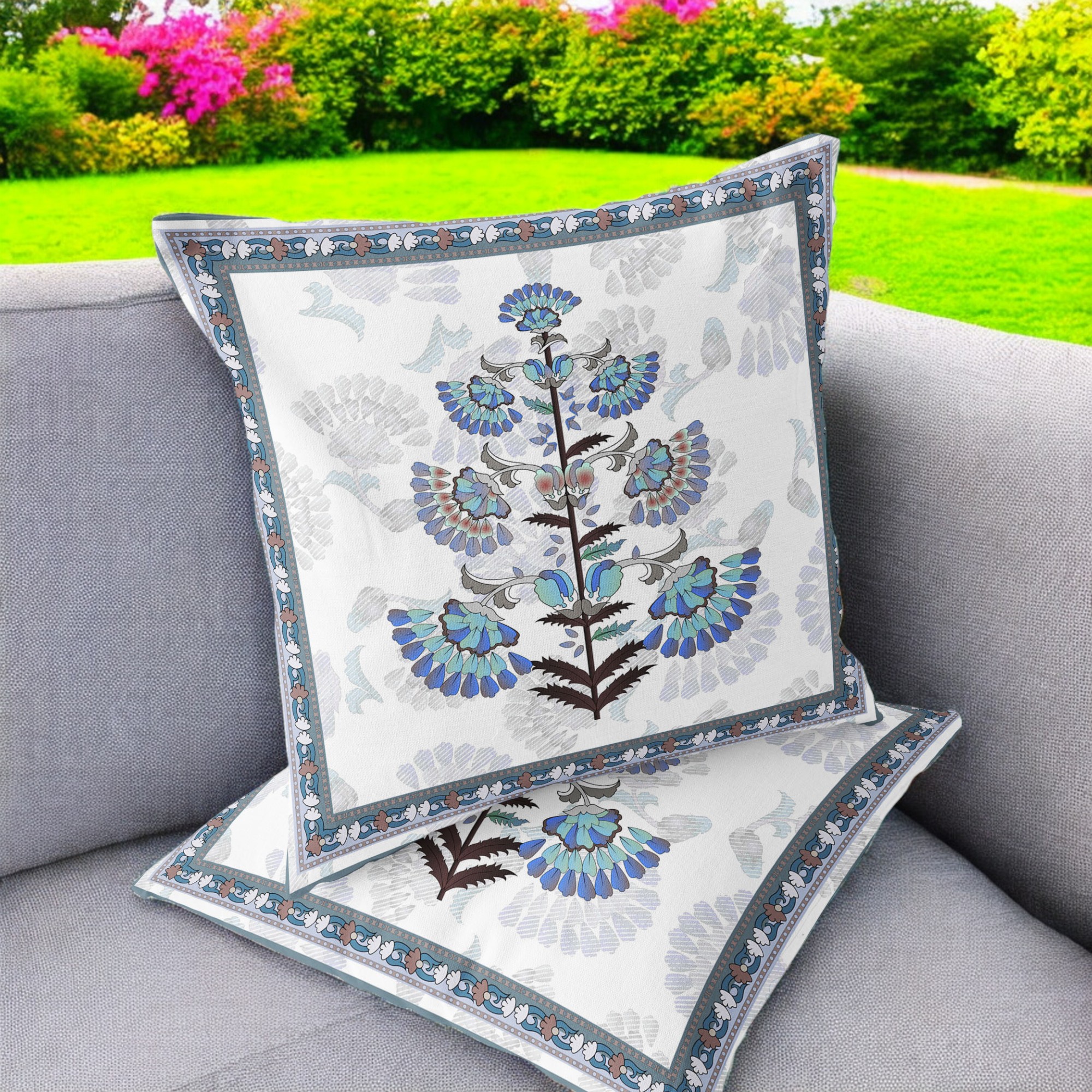 Set of Two Off White Botanical Indoor Outdoor Throw Pillow