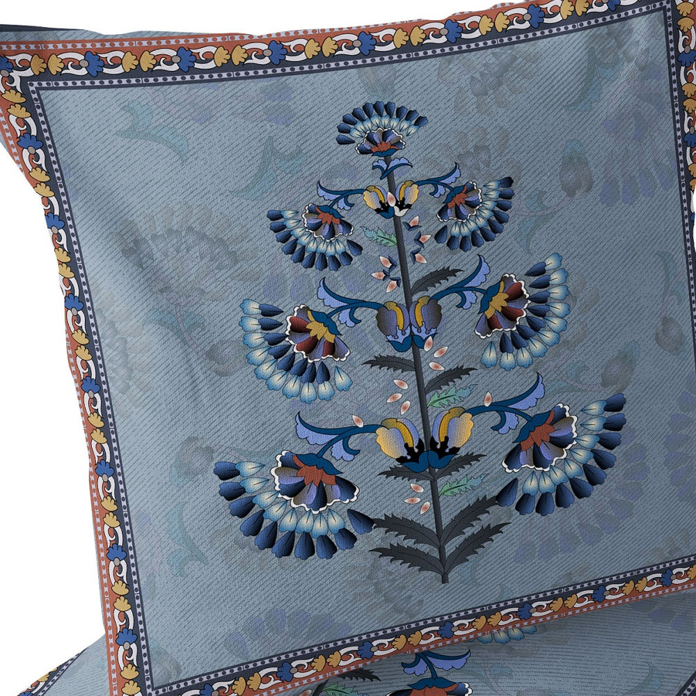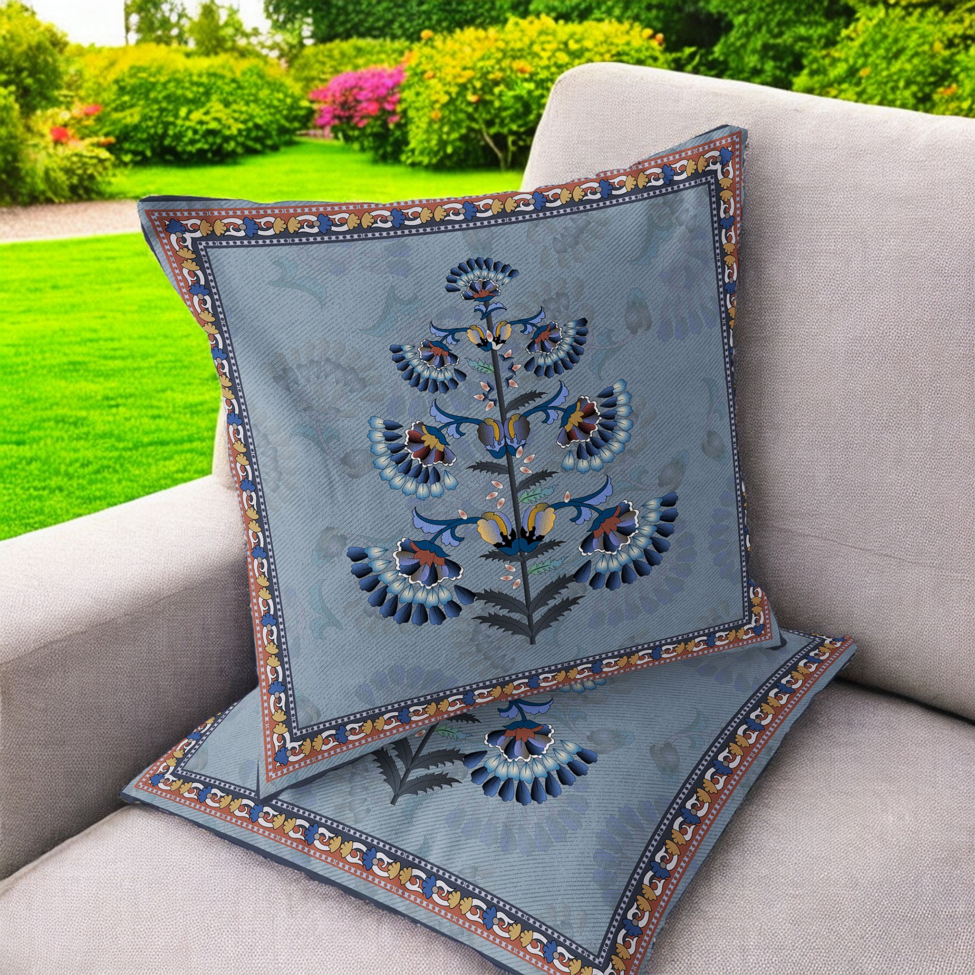 Mughal Buta Indoor/Outdoor Set of 2 Pillows in Gray Blue Red