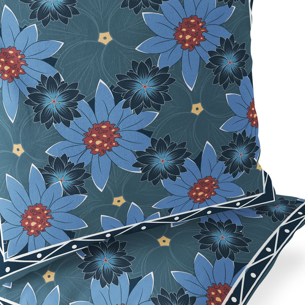 Sun Flowers Indoor/Outdoor Set of 2 Pillows in Blue Red