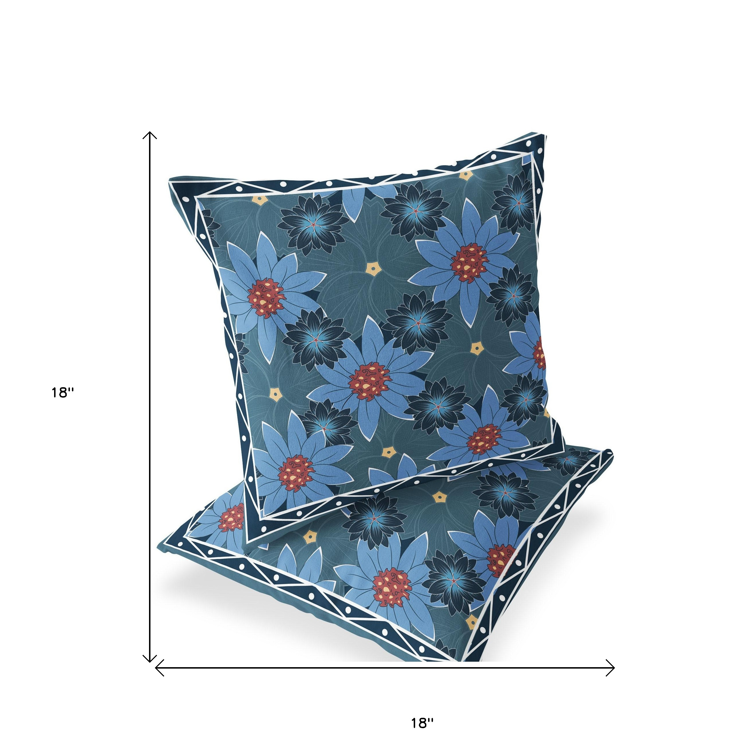 Set of Two Blue Botanical Indoor Outdoor Throw Pillow