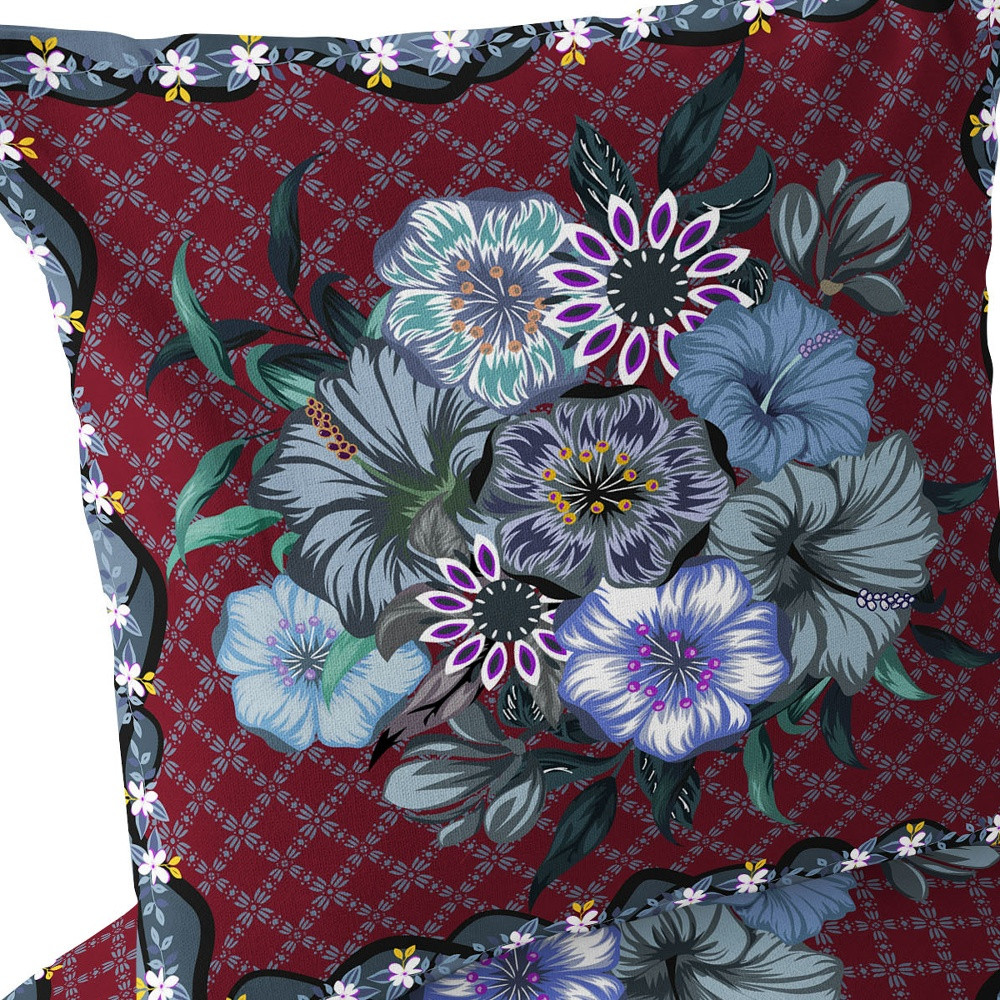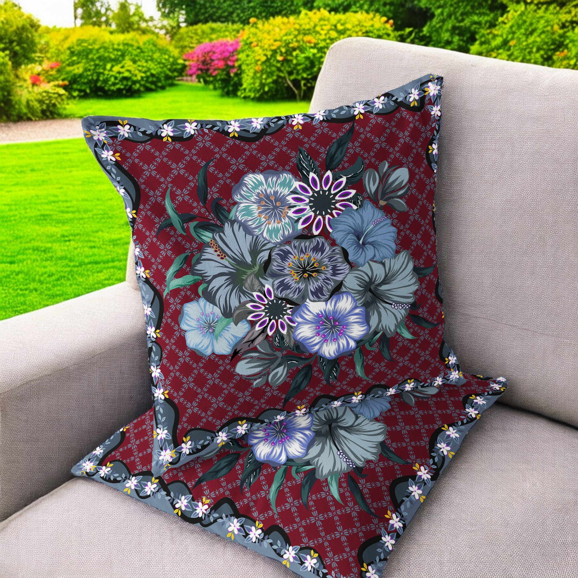 Flowers Indoor/Outdoor Set of 2 Pillows in Red Gray