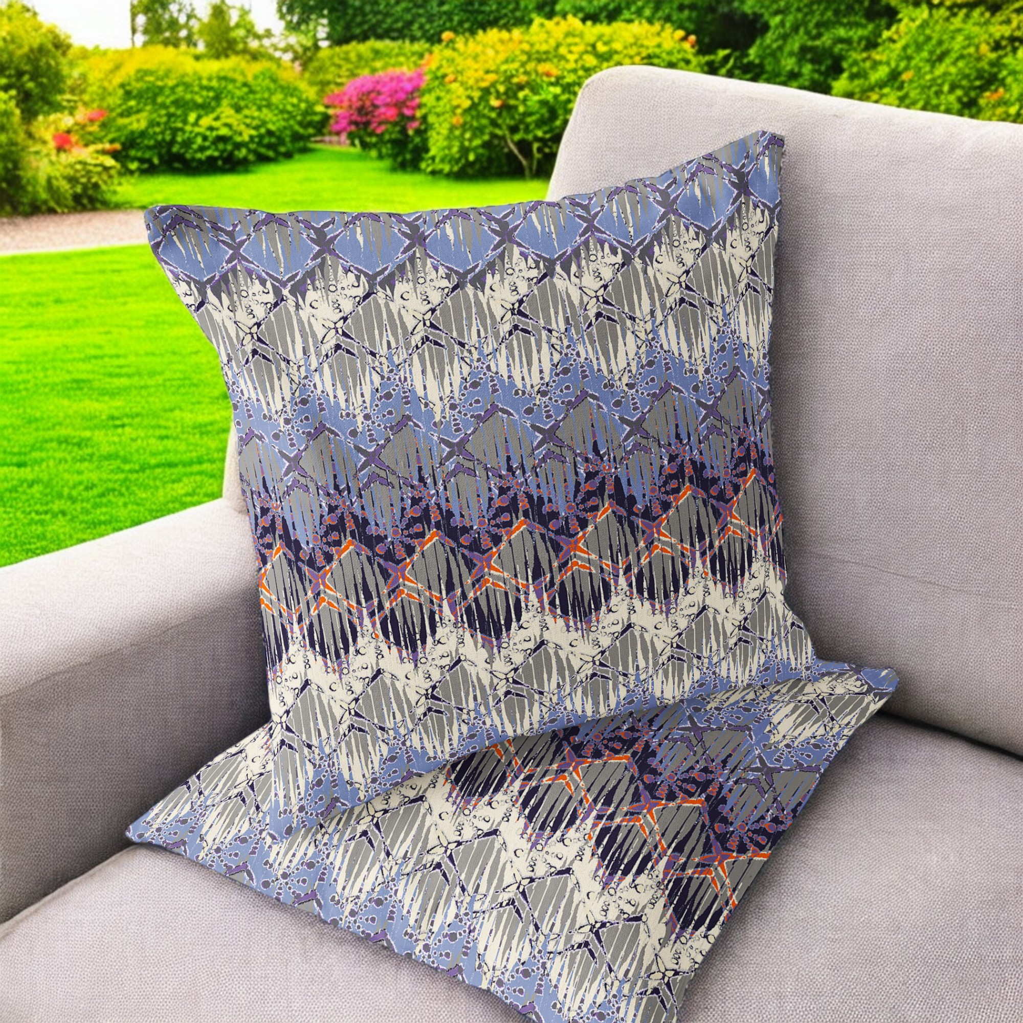 Set of Two Purple Geometric Indoor Outdoor Throw Pillow