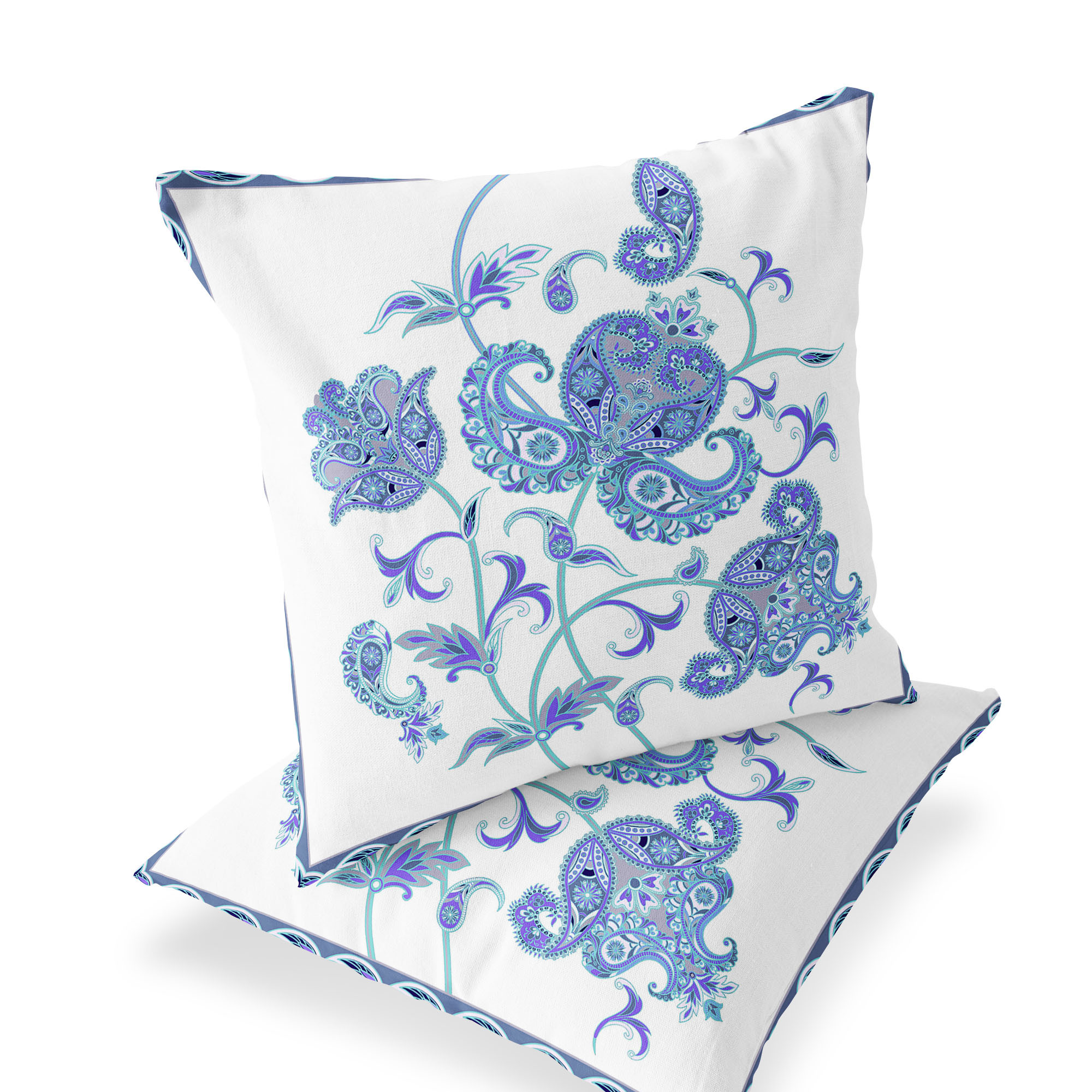 Set of Two Blue Botanical Indoor Outdoor Throw Pillow