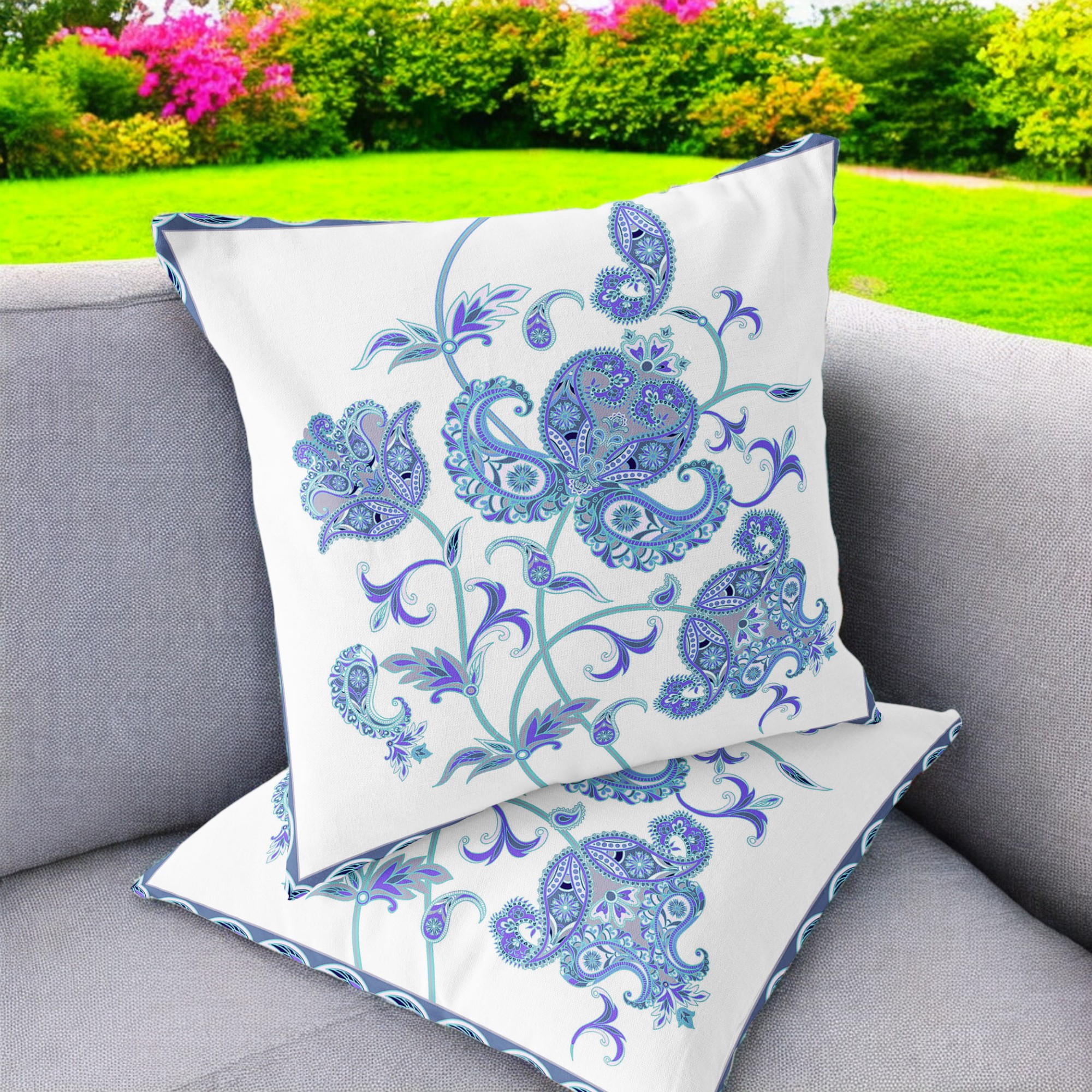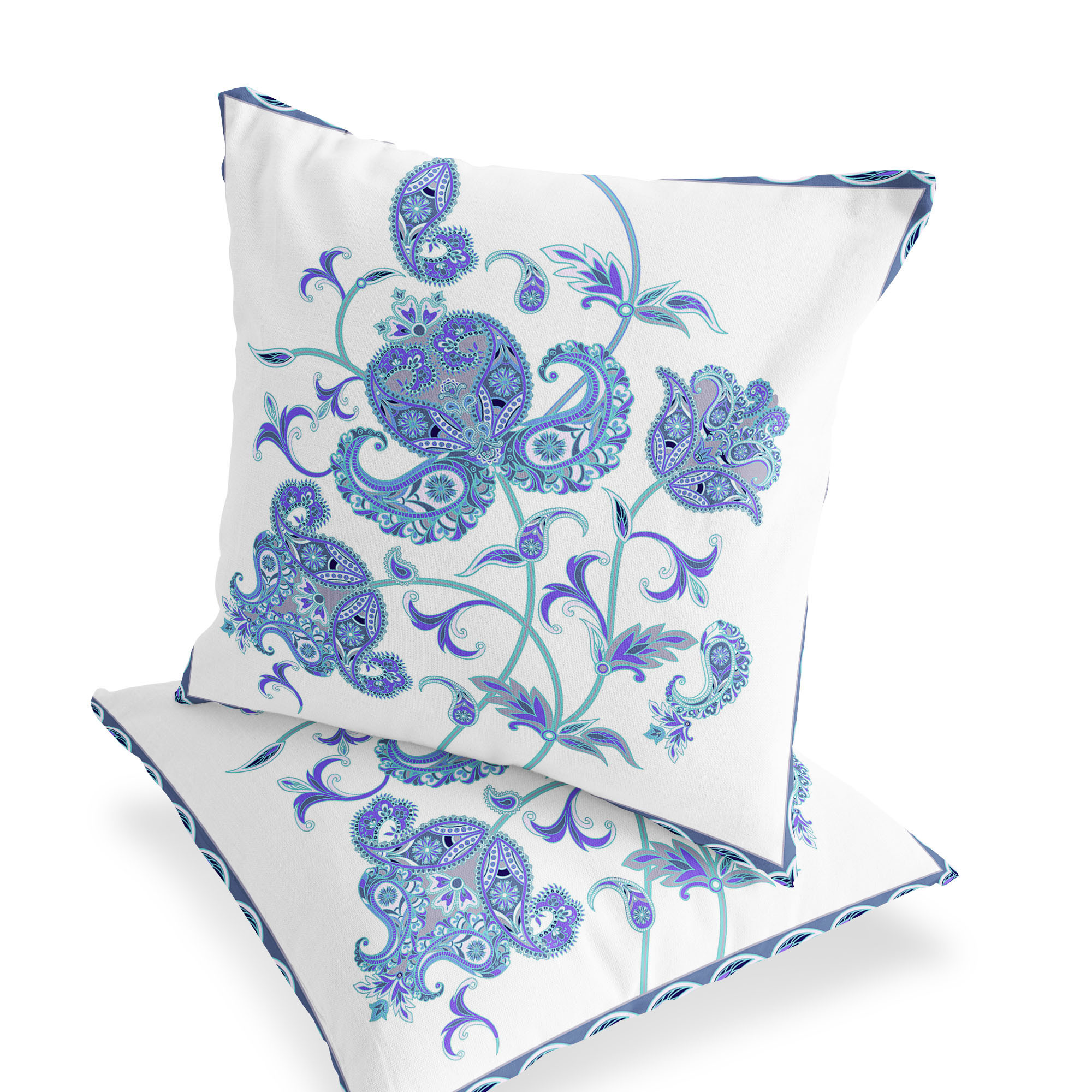Henna Wildflower Indoor/Outdoor Set of 2 Pillows in Light Blue