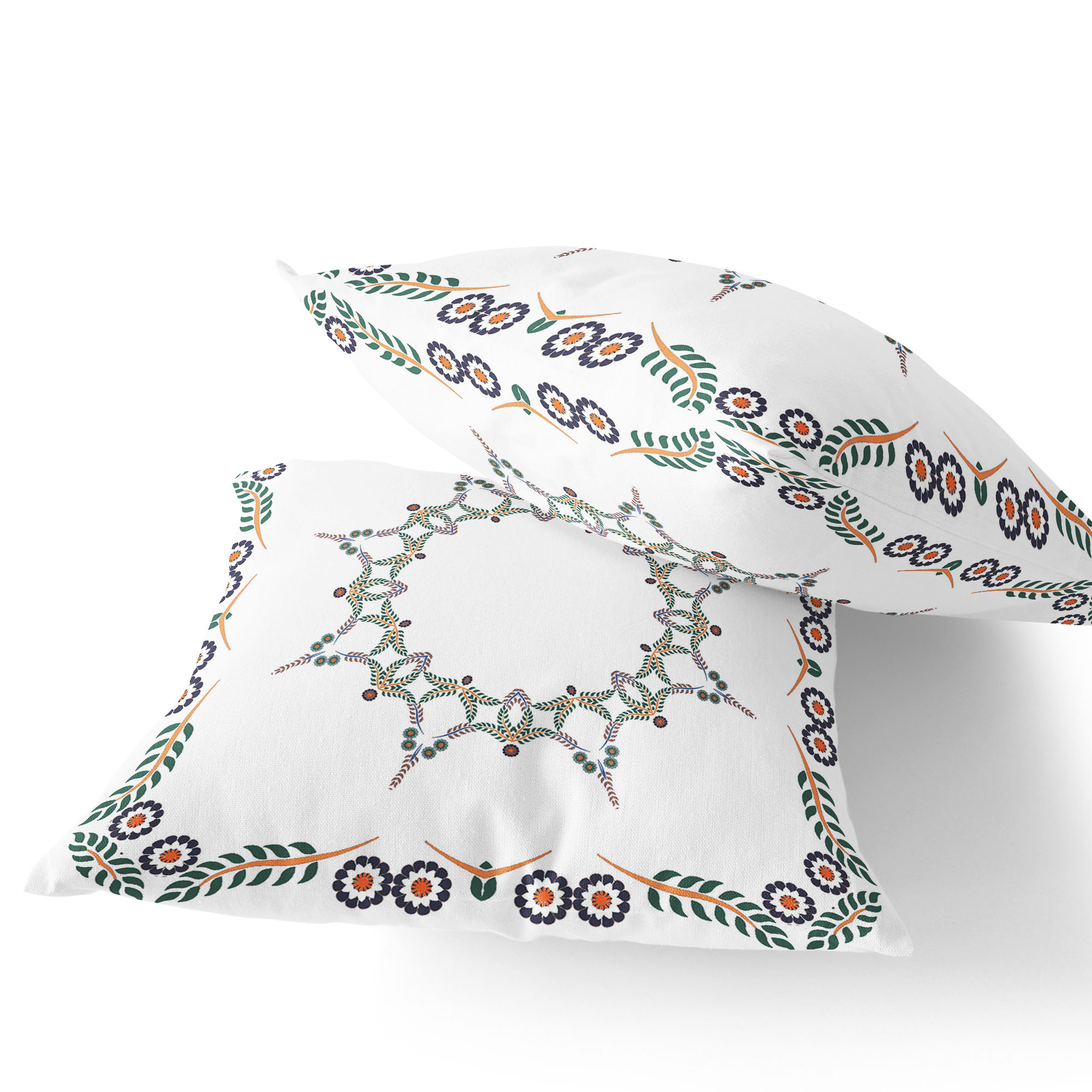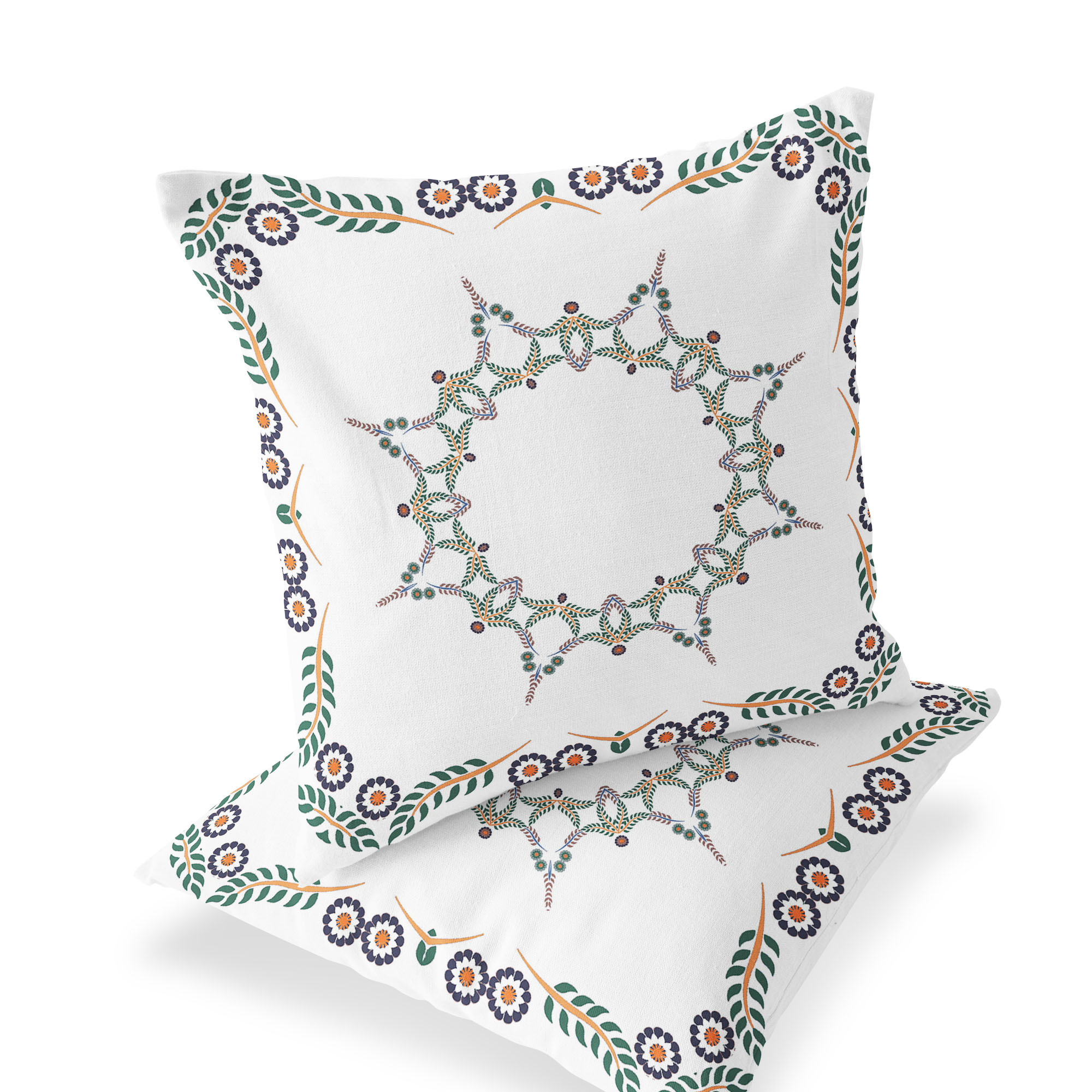 Set of Two White Botanical Indoor Outdoor Throw Pillow