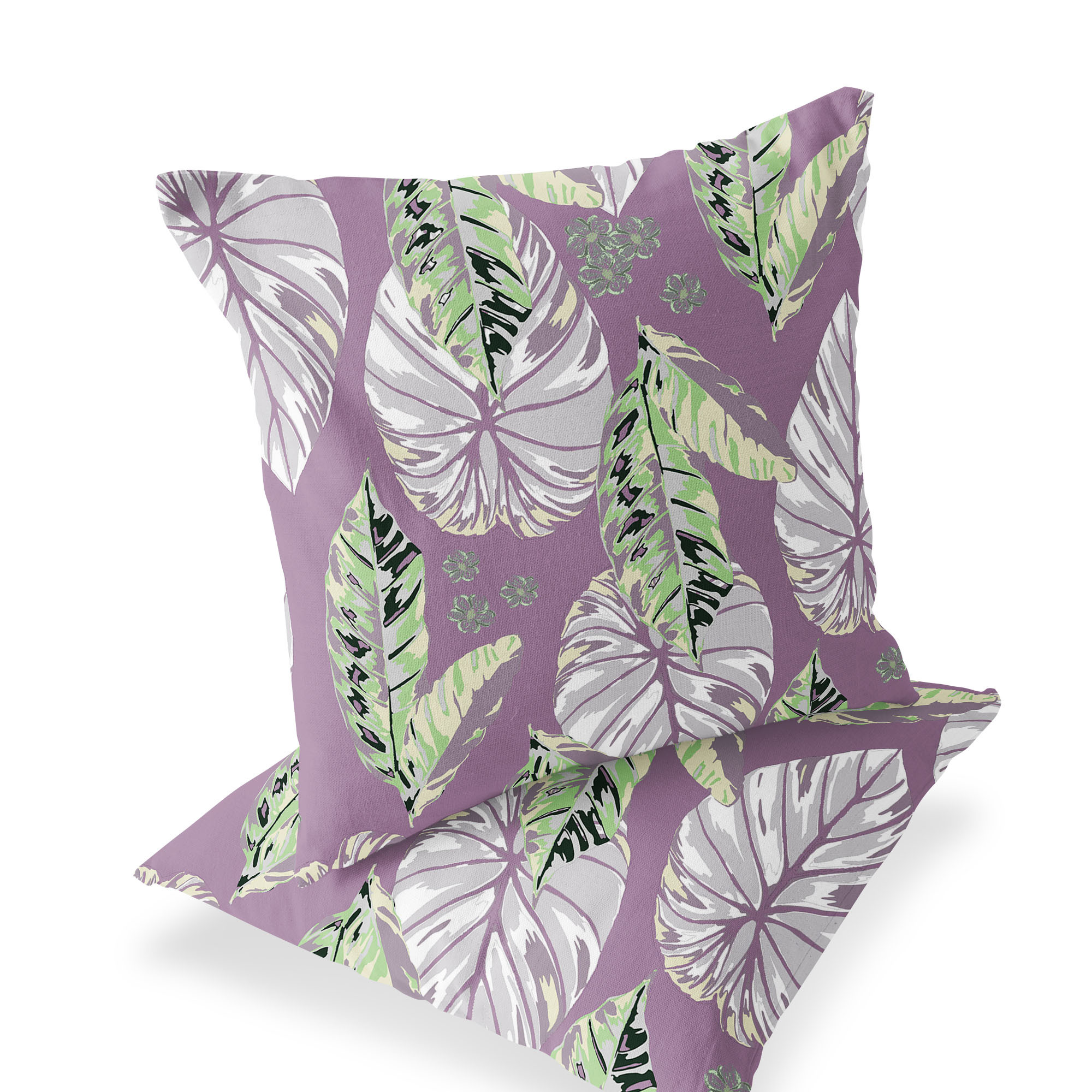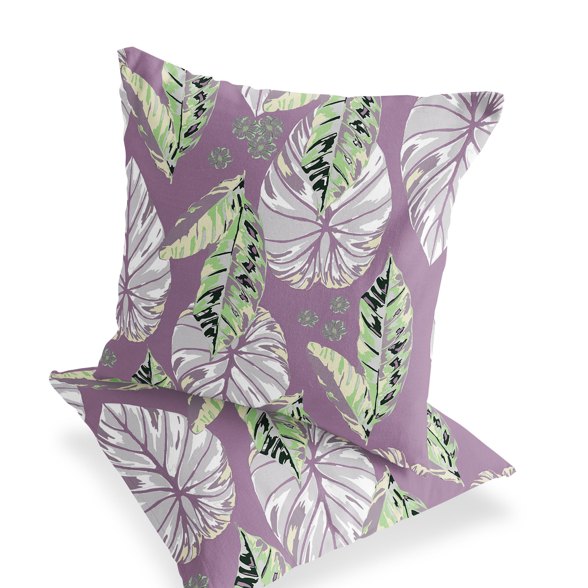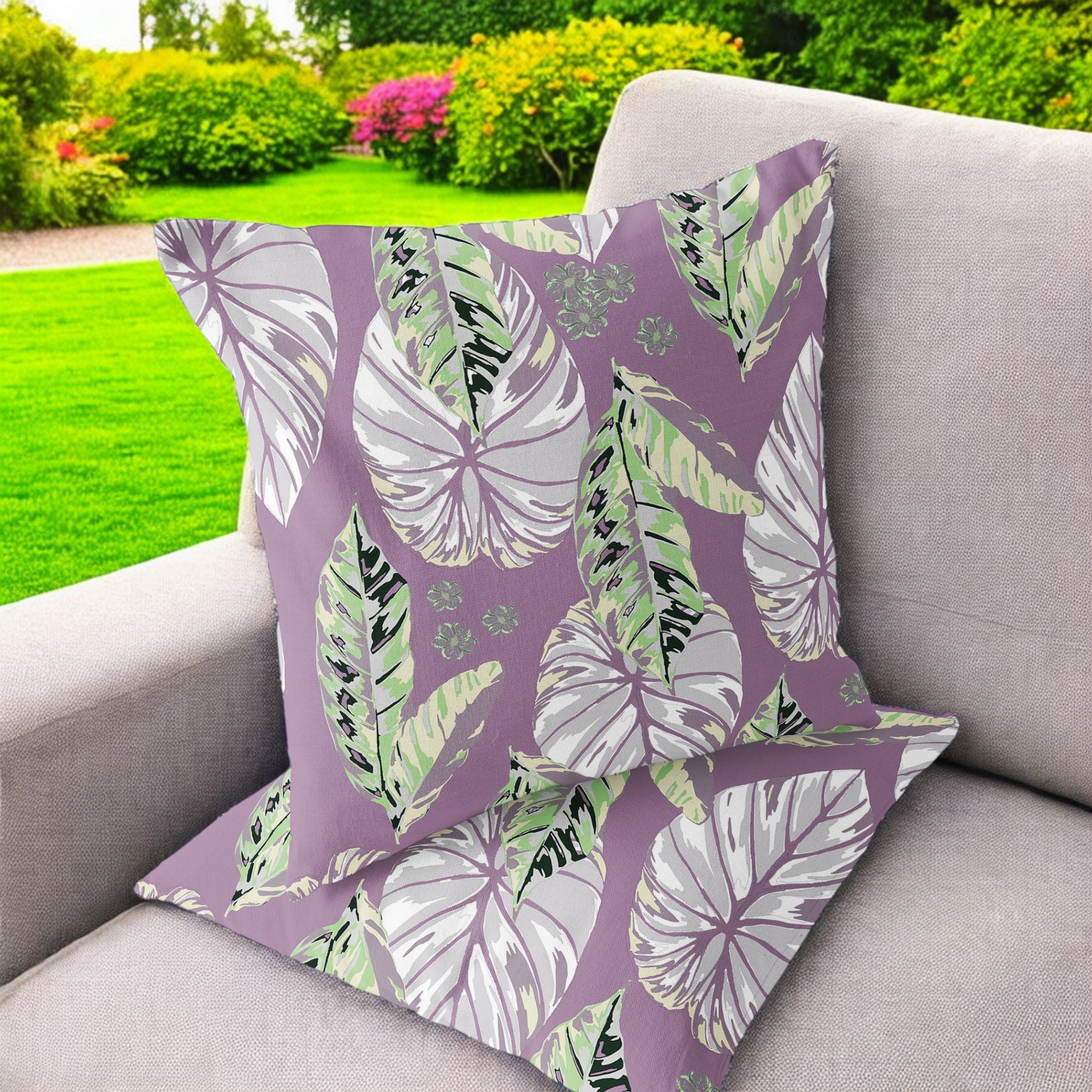 Tropics Indoor/Outdoor Set of 2 Pillows in Light Green and White on Purple