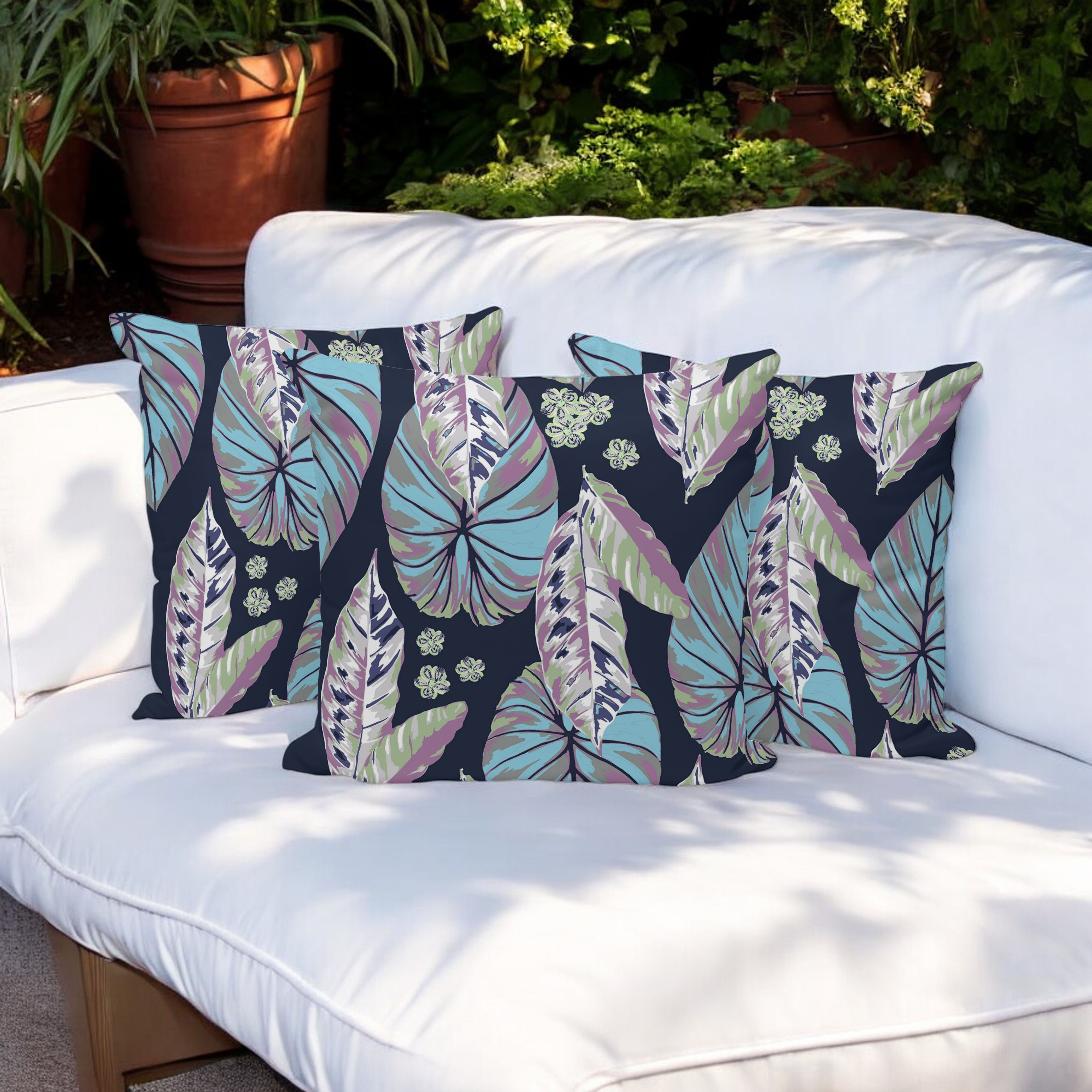 Set of Three Blue Botanical Indoor Outdoor Throw Pillow