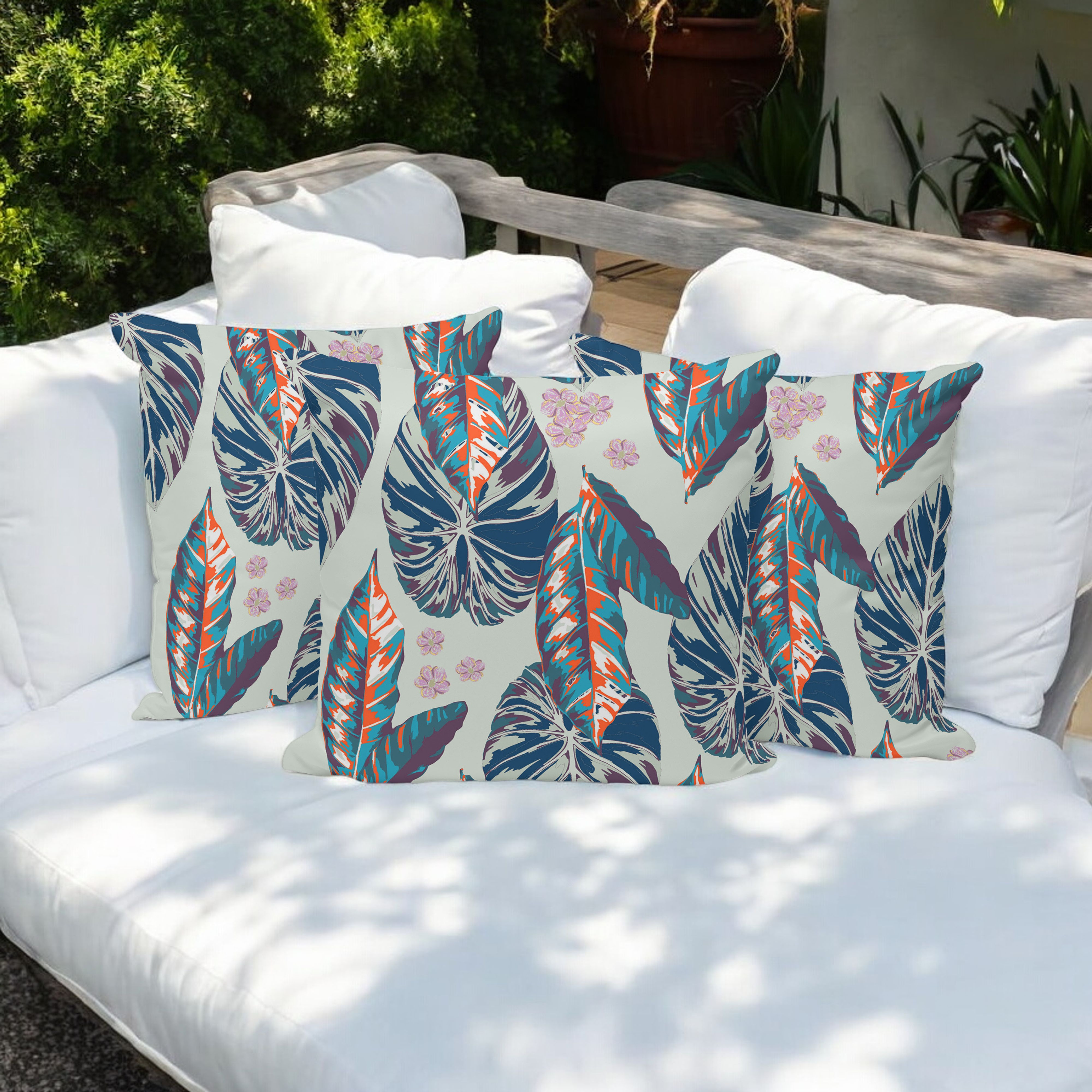 Set of Three Blue Botanical Indoor Outdoor Throw Pillow