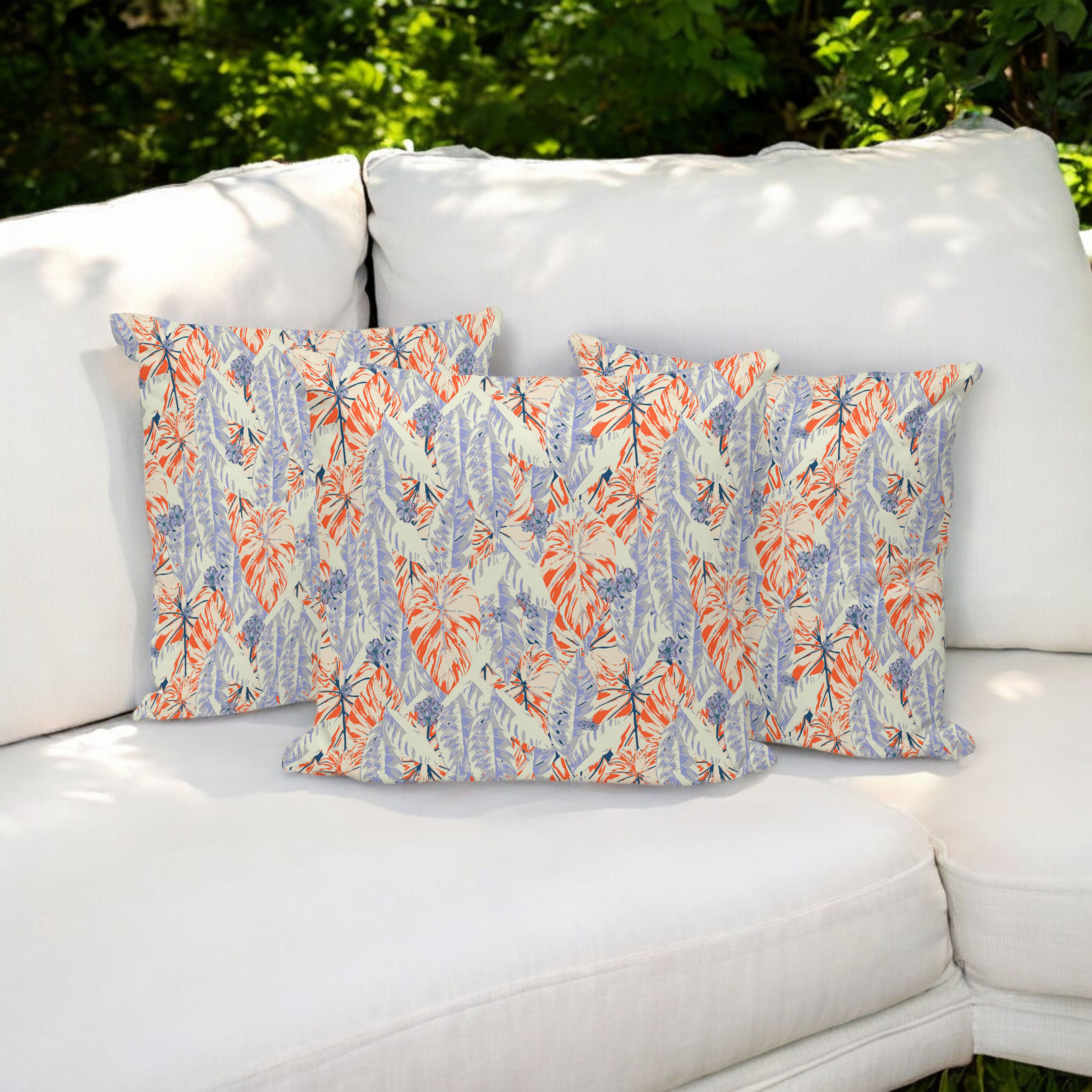 Set of Three Orange Botanical Indoor Outdoor Throw Pillow