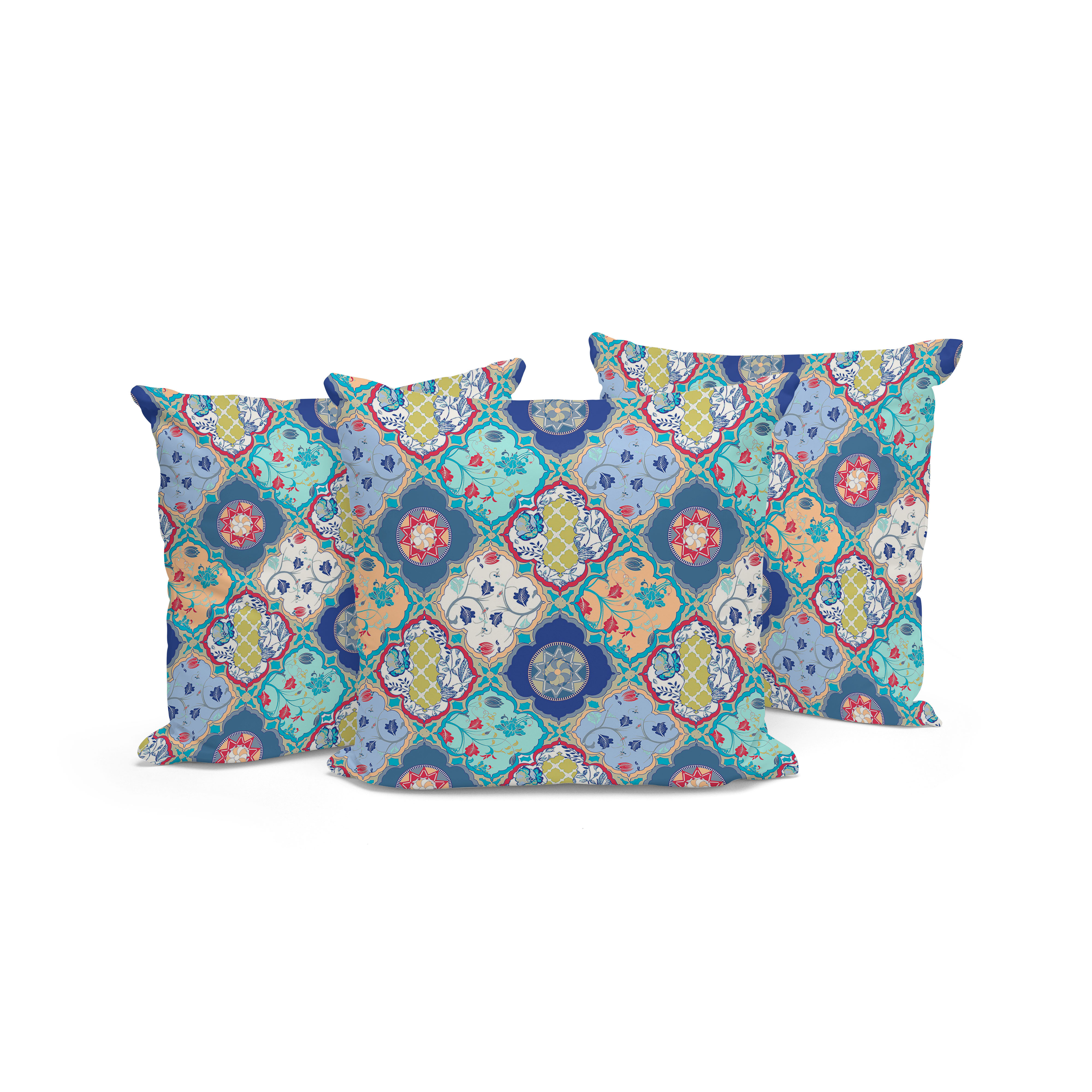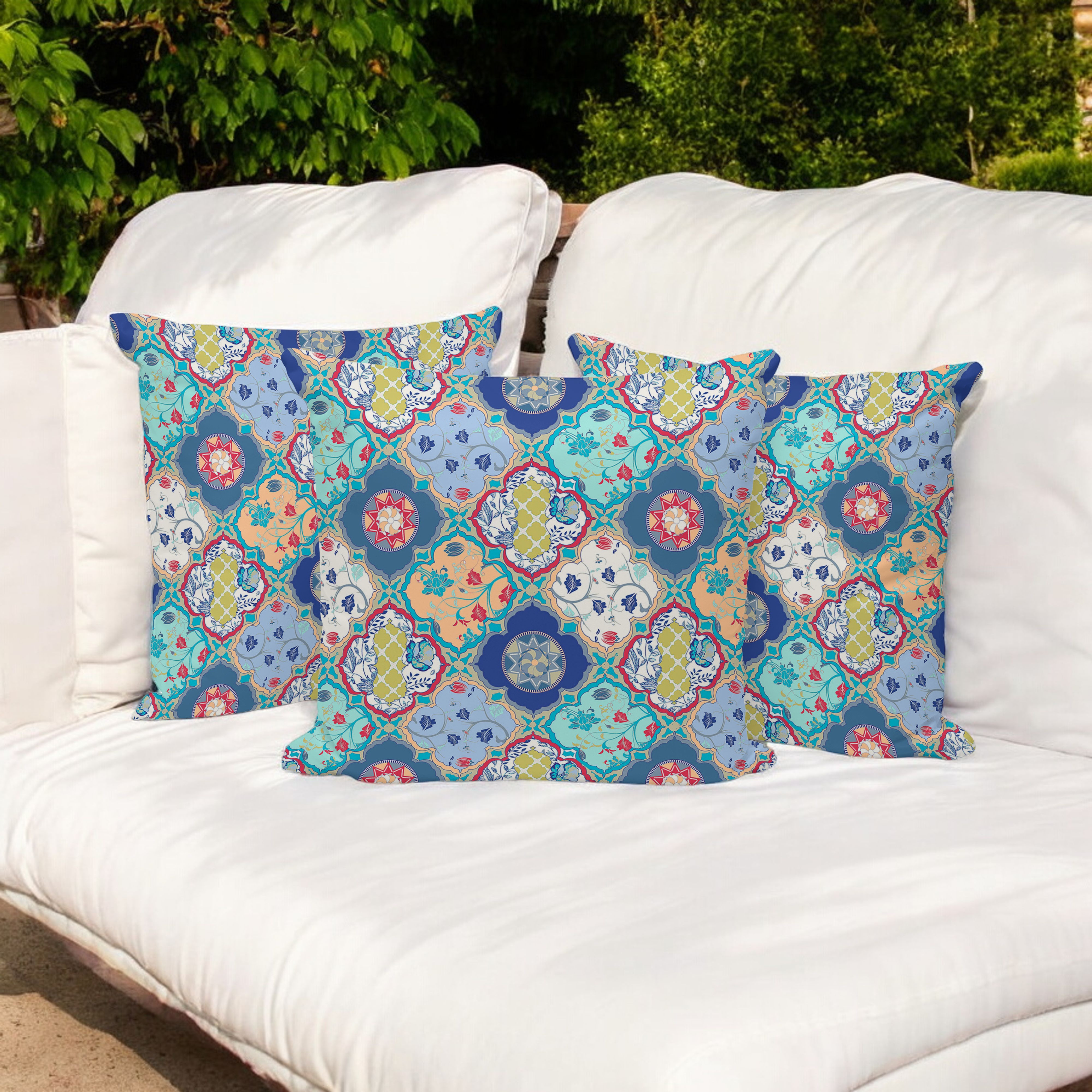 Flower Diamonds Indoor/Outdoor Set of 3 Pillows in Moss Green and Peach