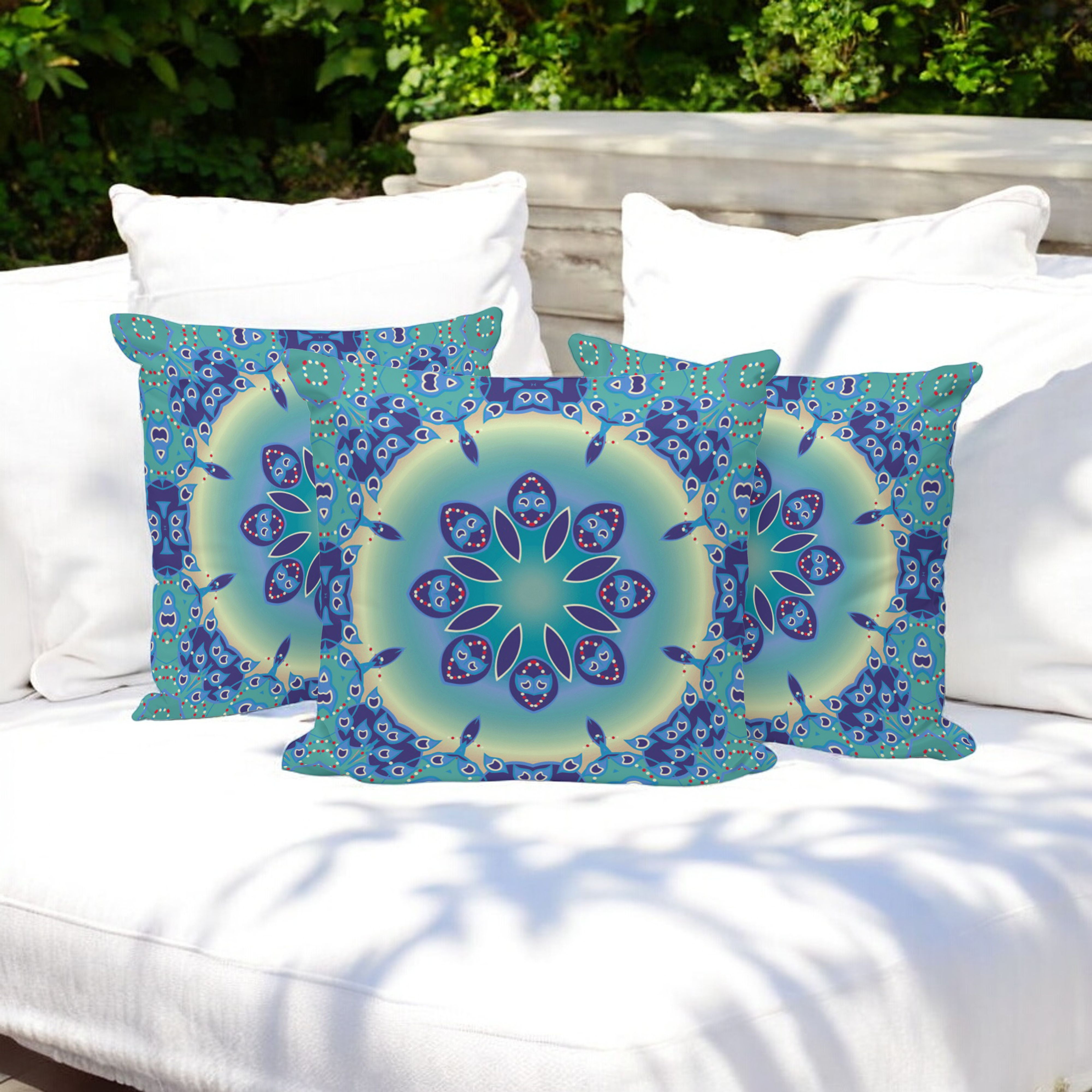 Jewel Circle Indoor/Outdoor Set of 3 Pillows in Blue Purple