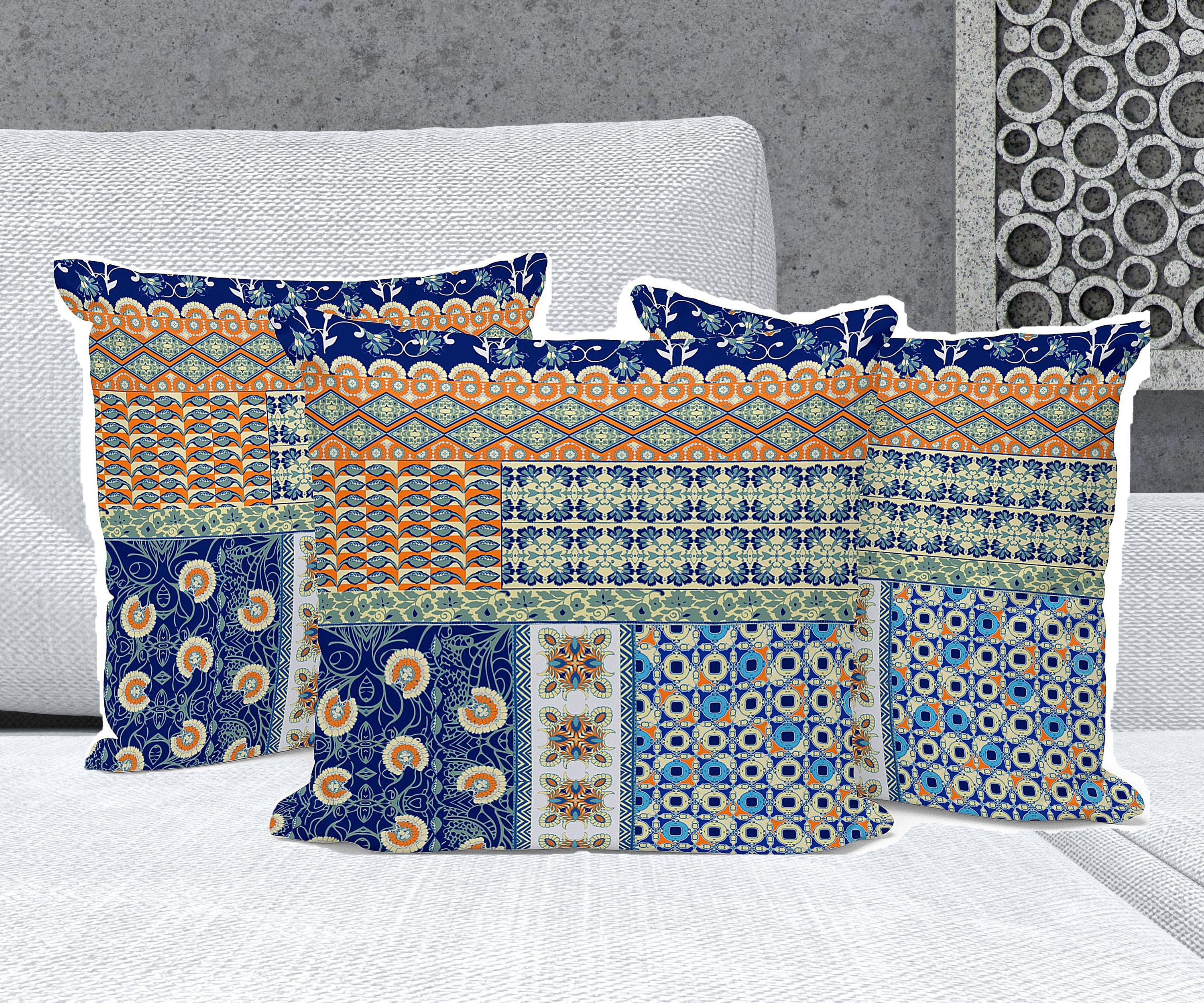 Flower Castle Patchwork Indoor/Outdoor Set of 3 Pillows in Navy Orange