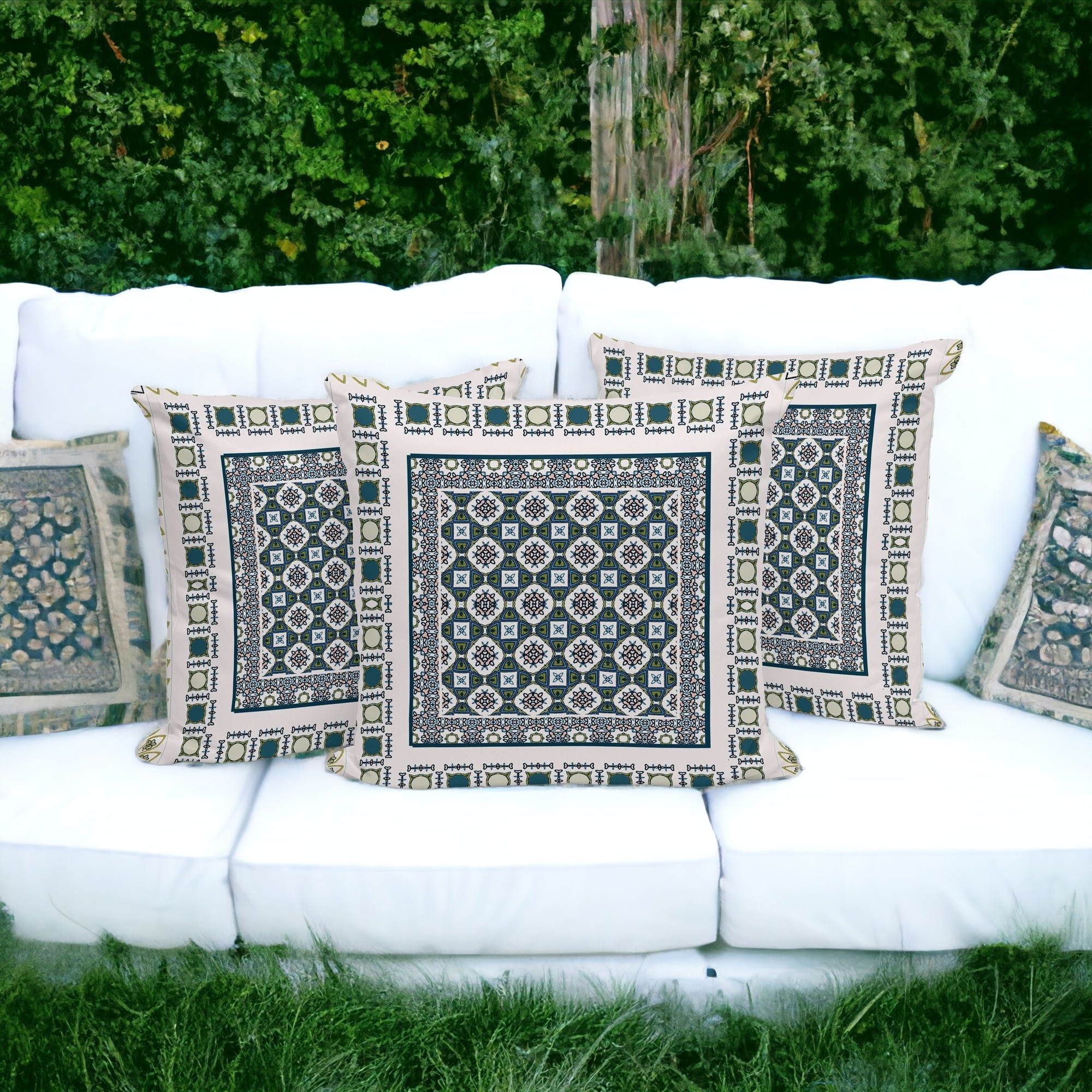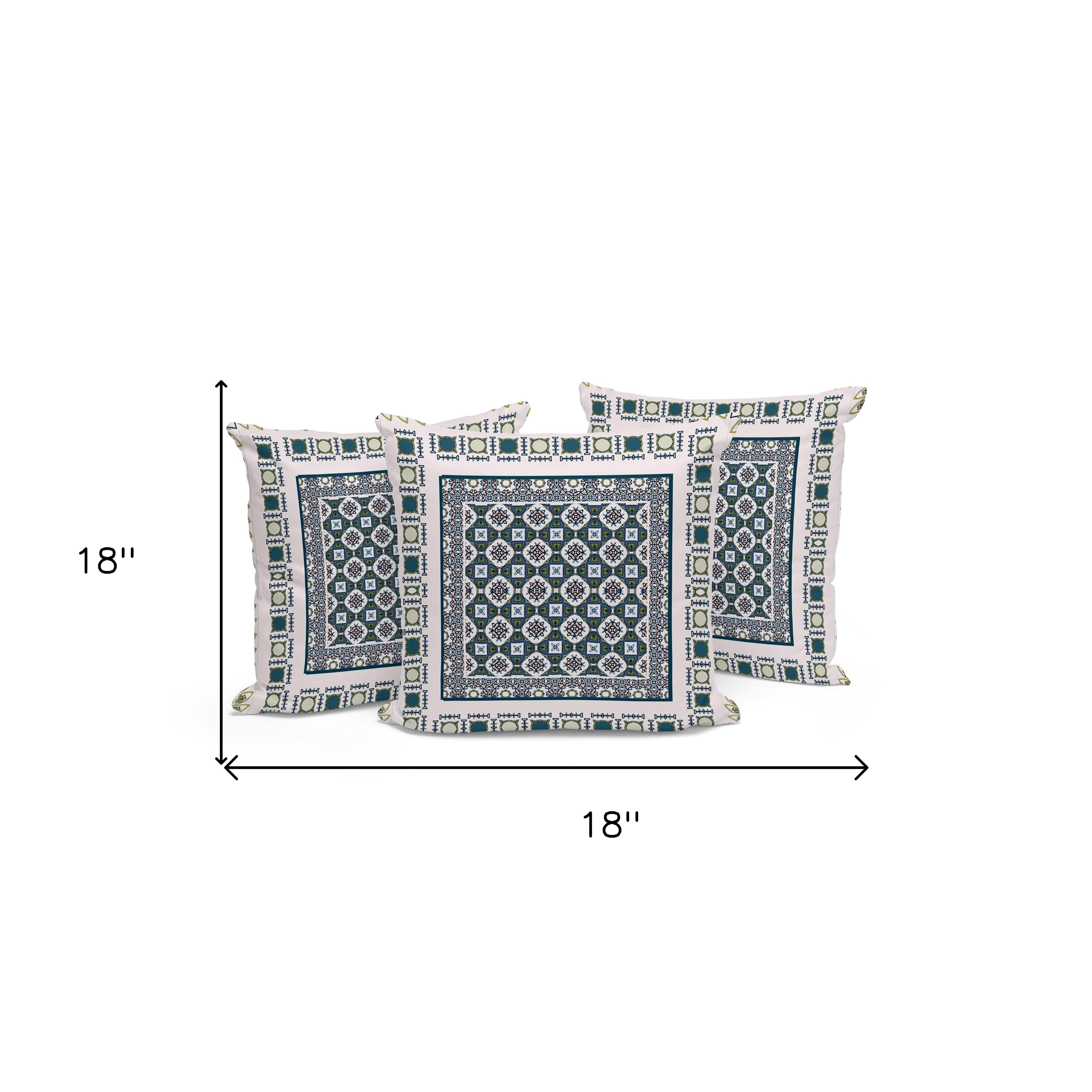 Floral Windows Indoor/Outdoor Set of 3 Pillows in White Green
