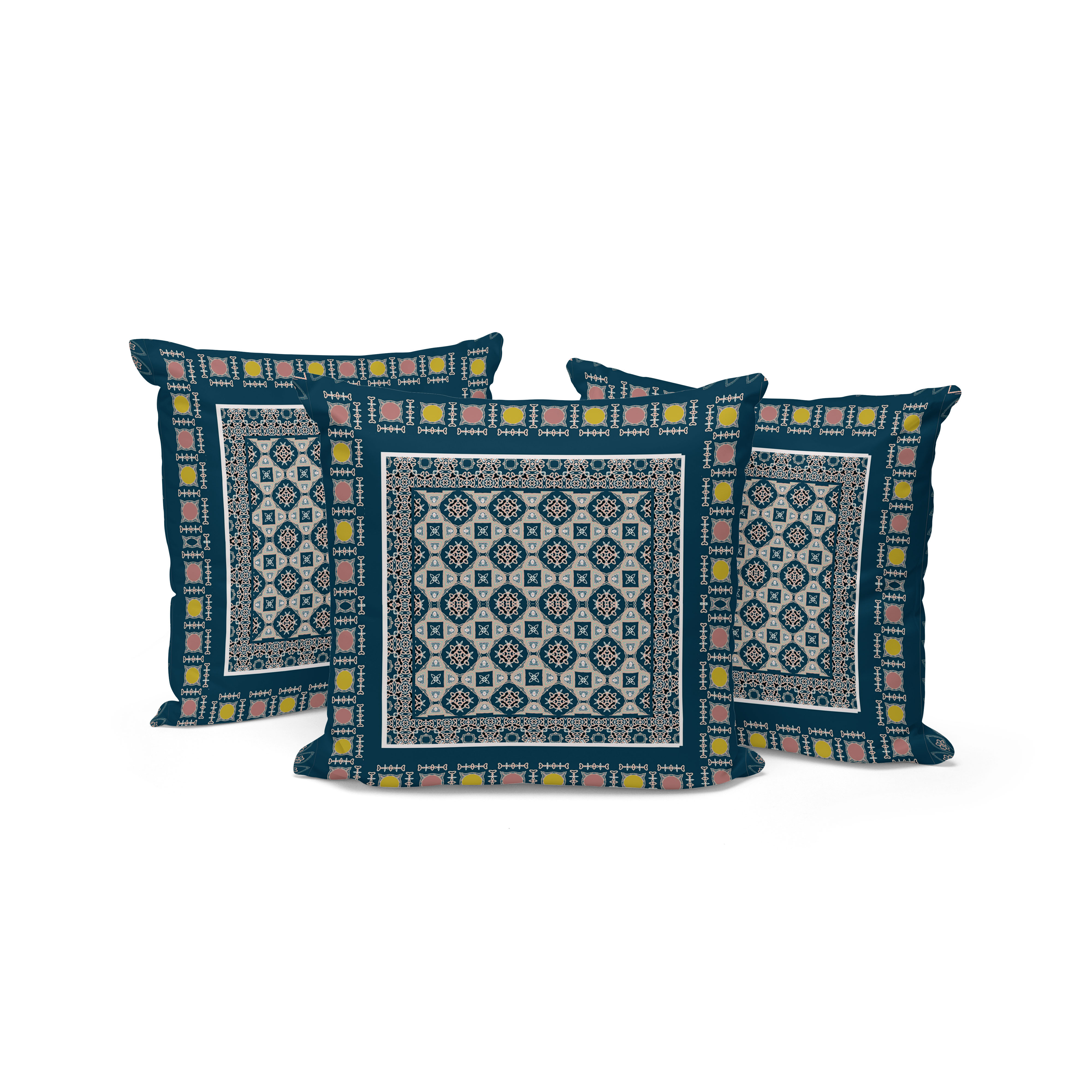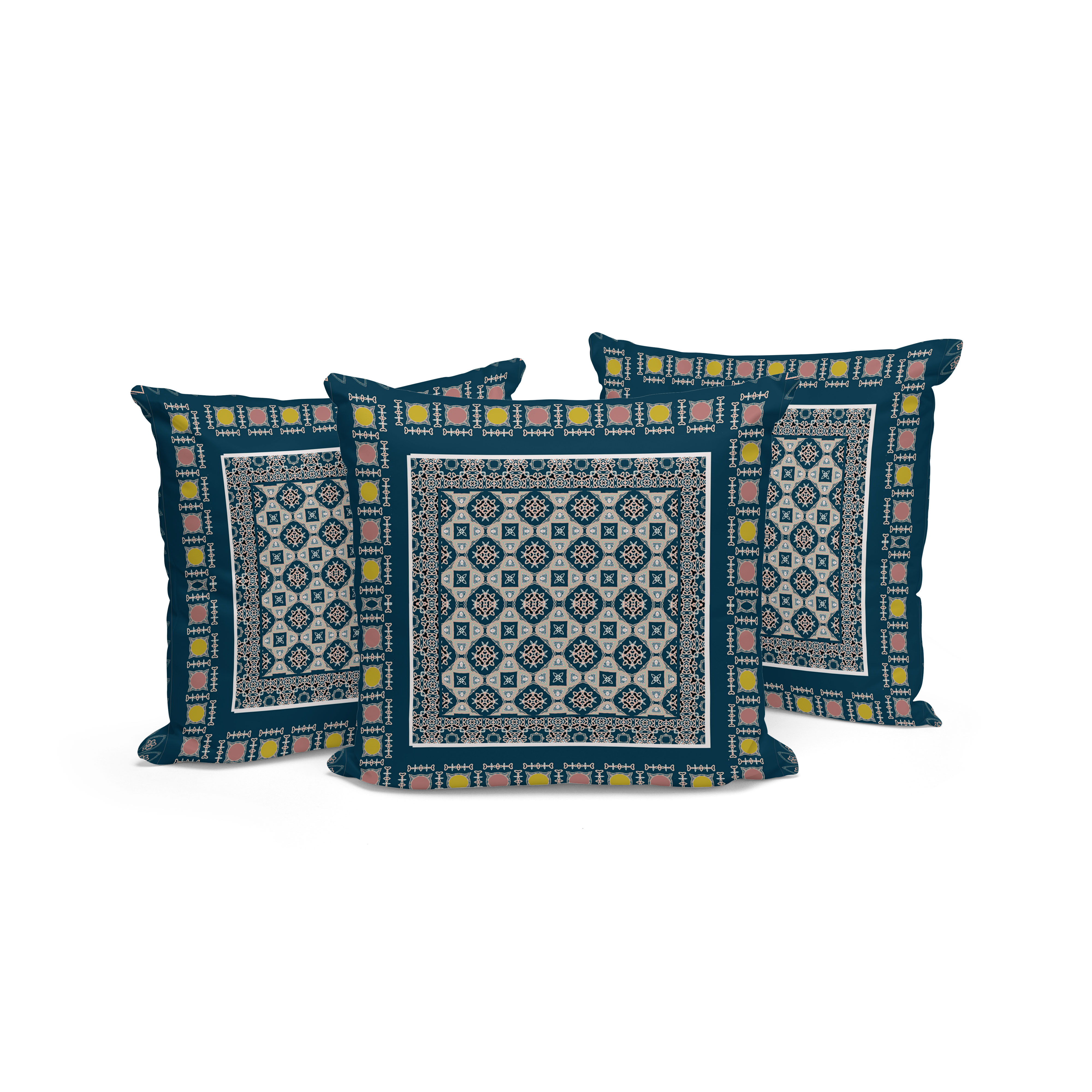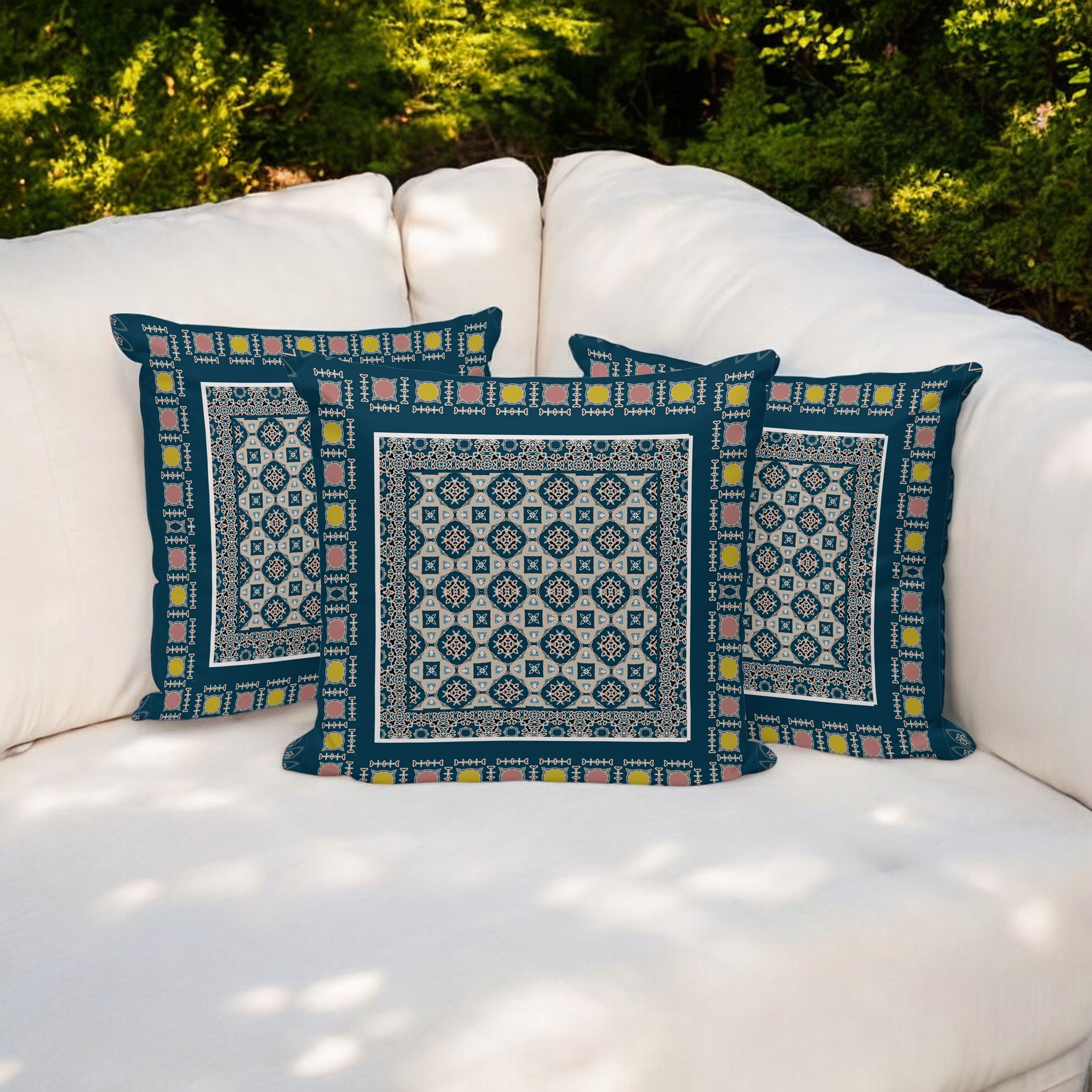 Floral Windows Indoor/Outdoor Set of 3 Pillows in Blue Beige