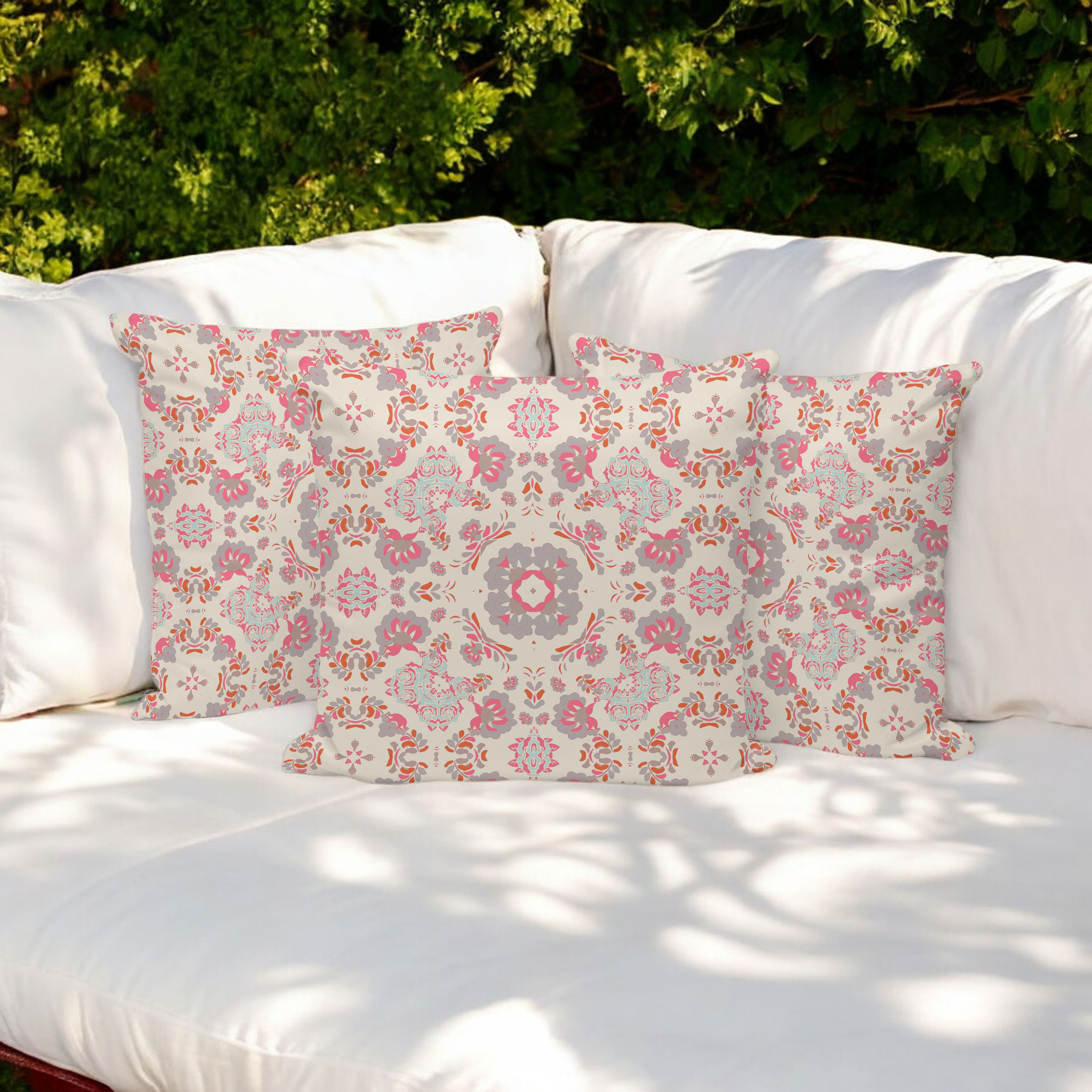 Set of Three Pink Botanical Indoor Outdoor Throw Pillow