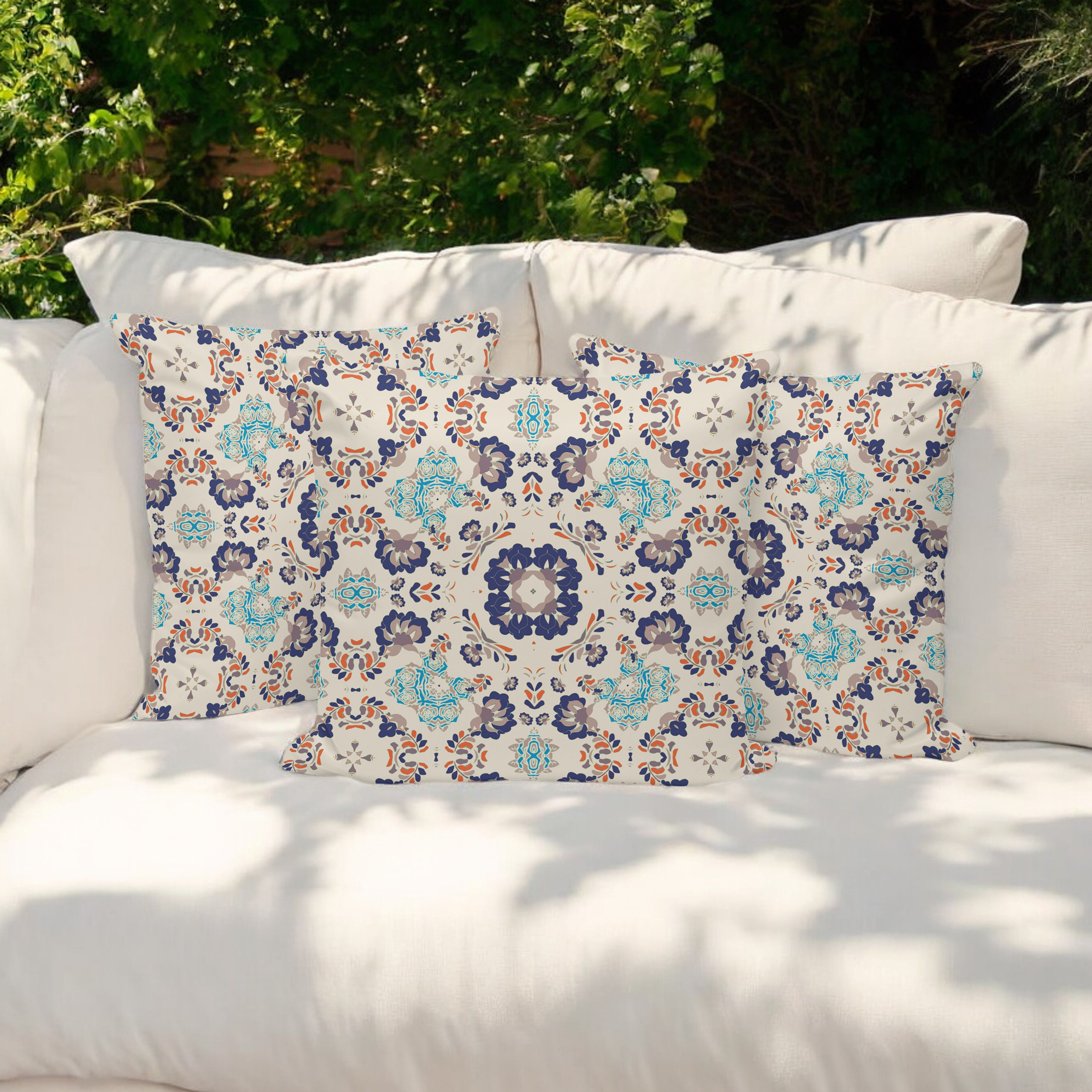 Love and Liberty Indoor/Outdoor Set of 3 Pillows in Off-White Blue