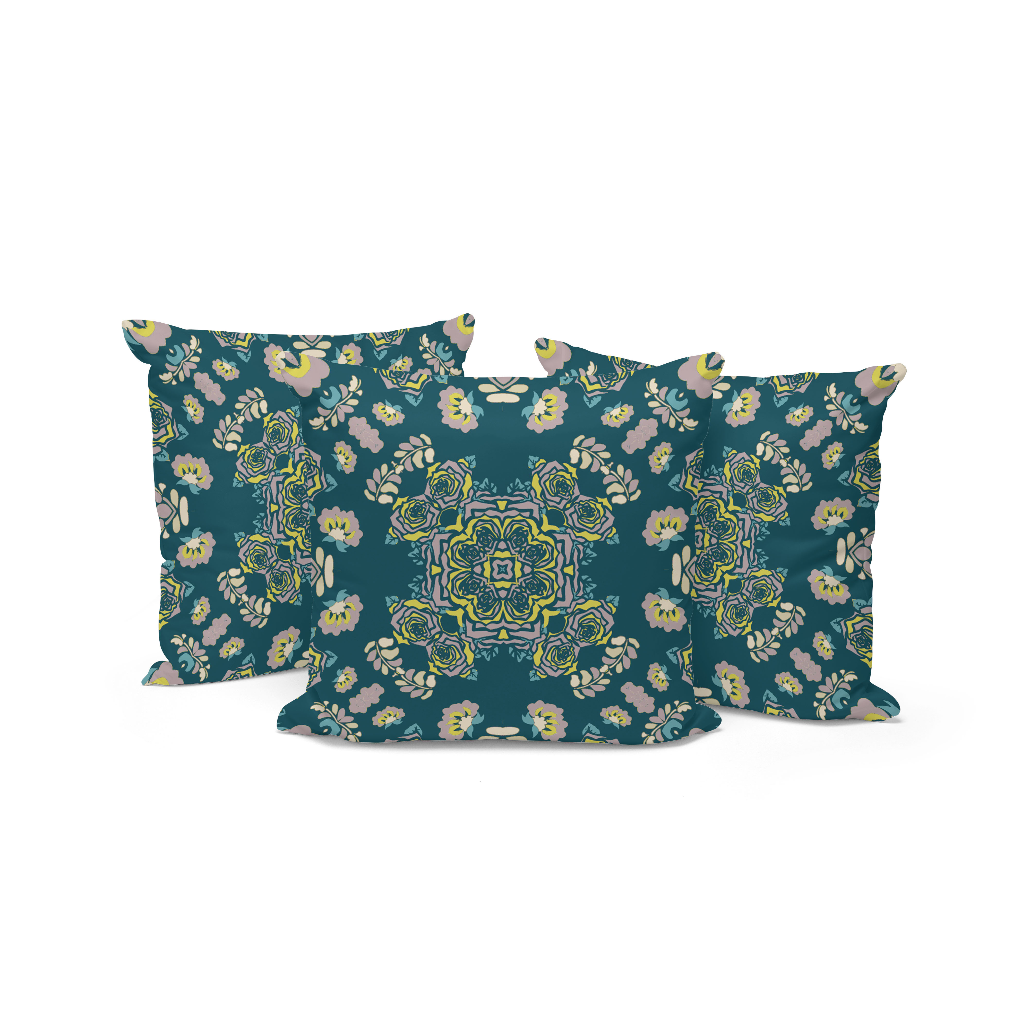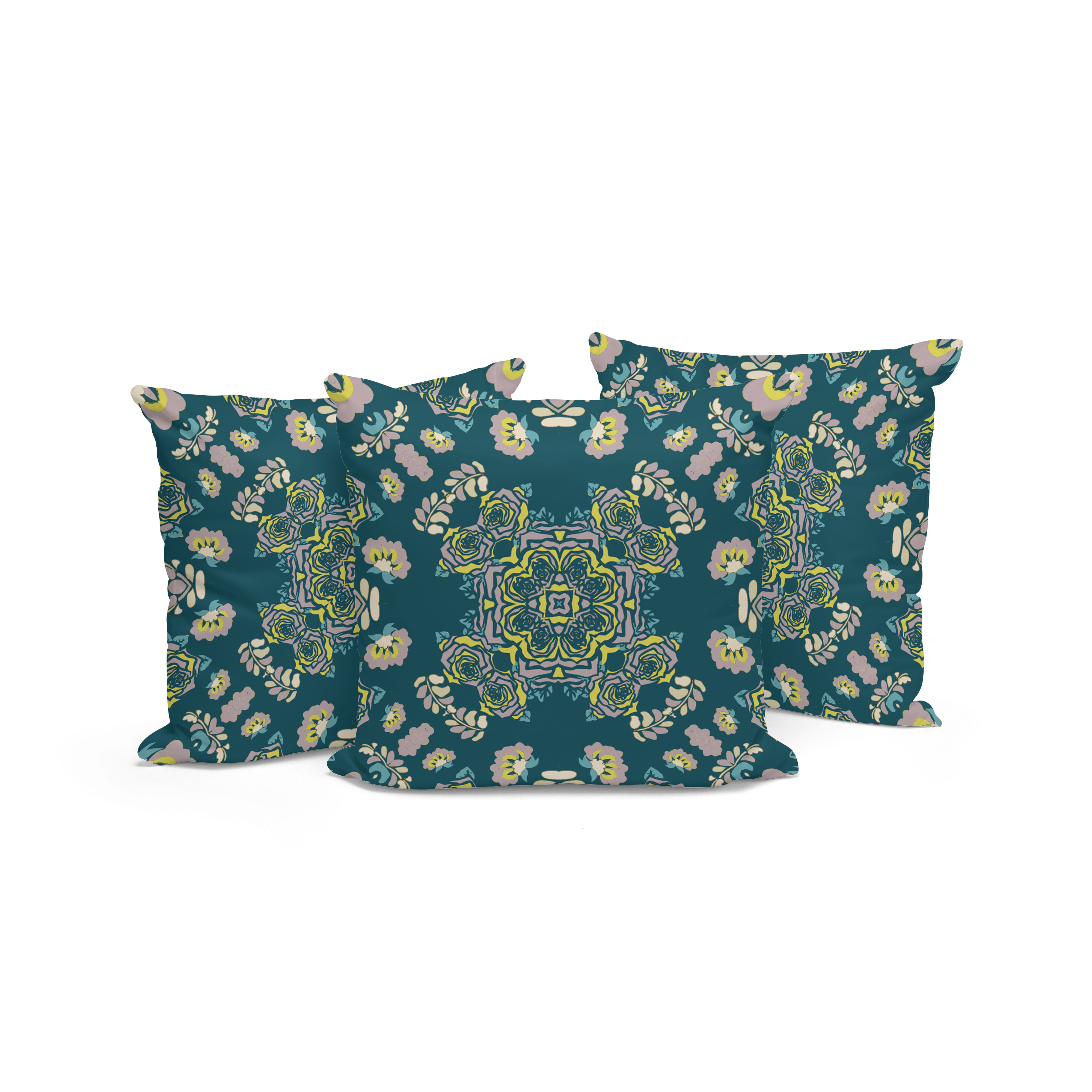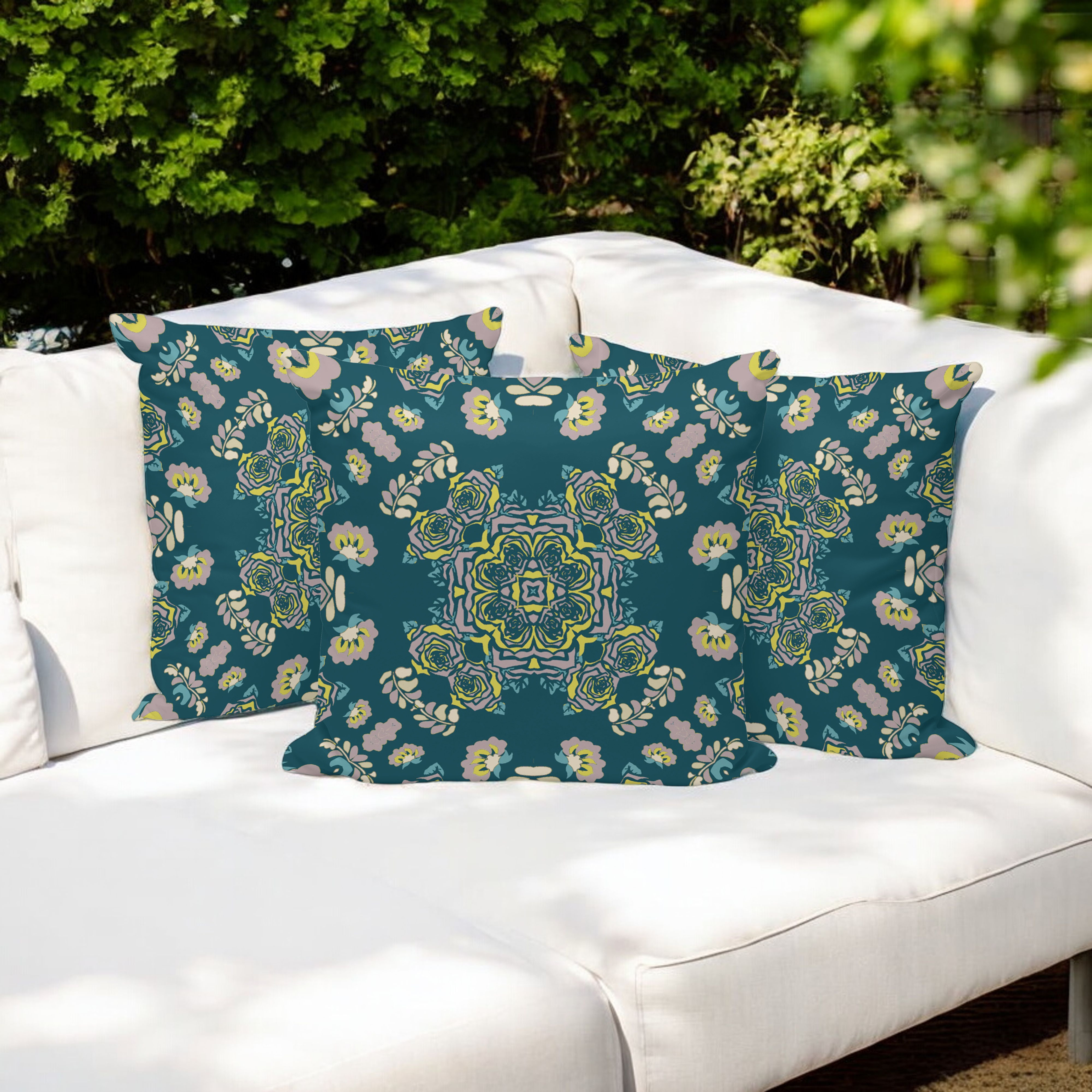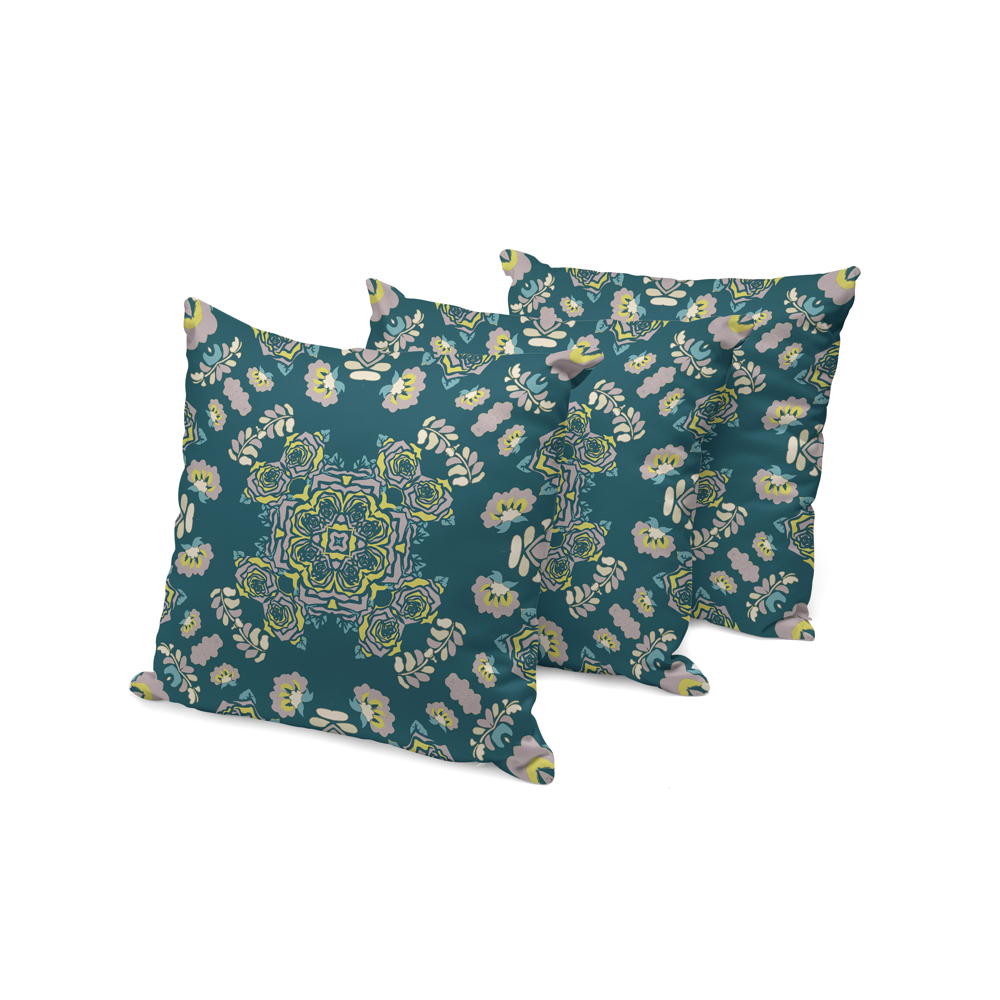 Rose Wreath Indoor/Outdoor Set of 3 Pillows in Green Yellow