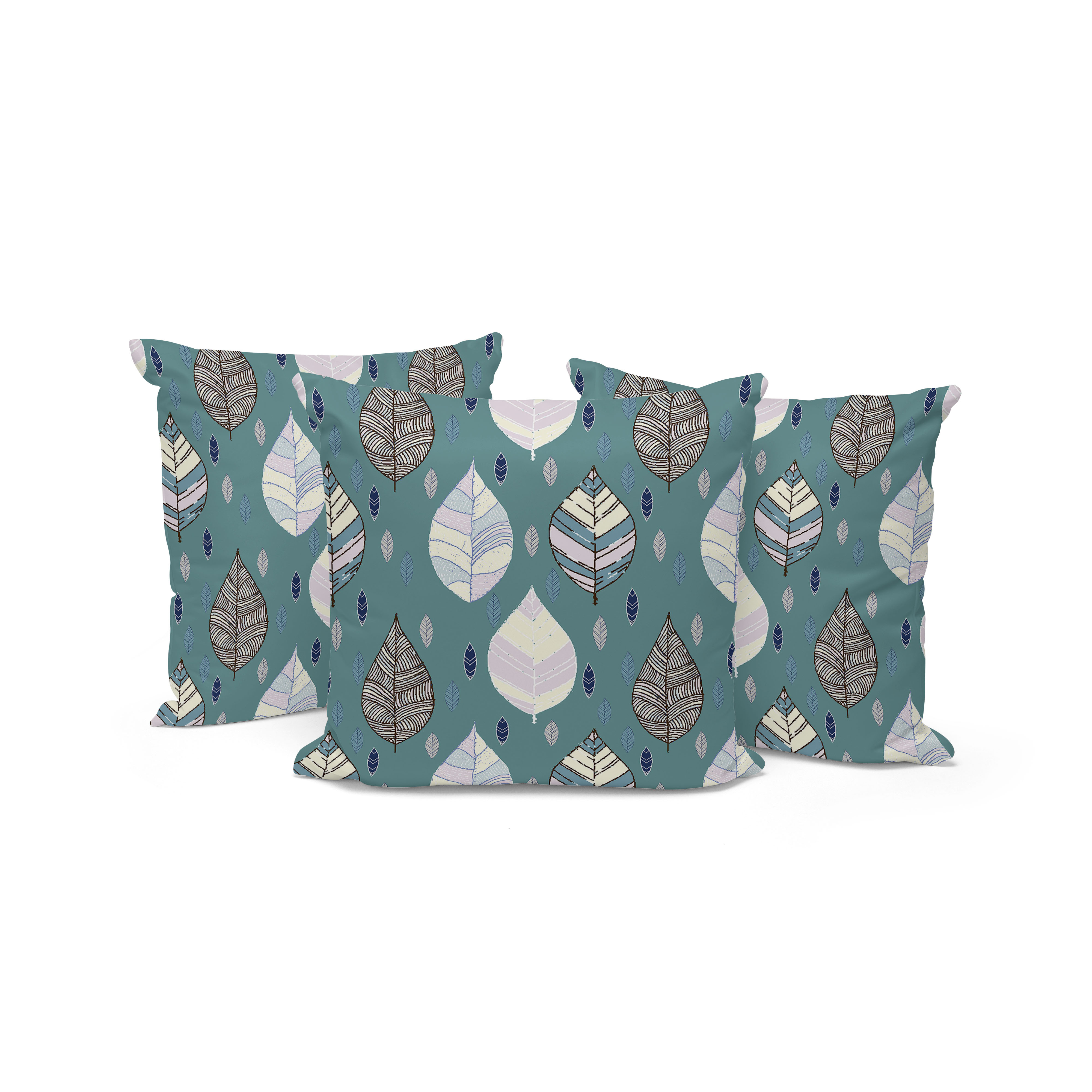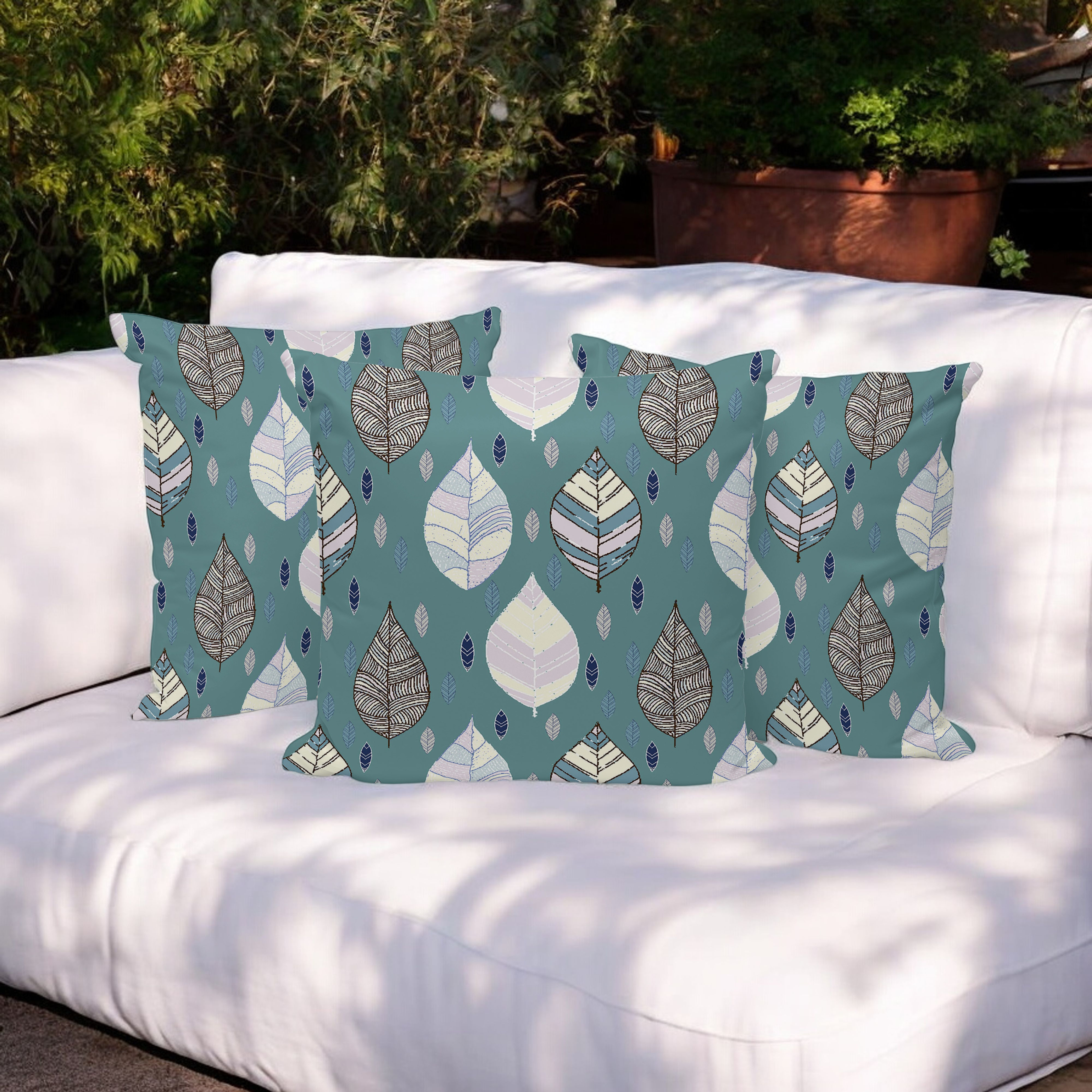 Set of Three Green Botanical Indoor Outdoor Throw Pillow