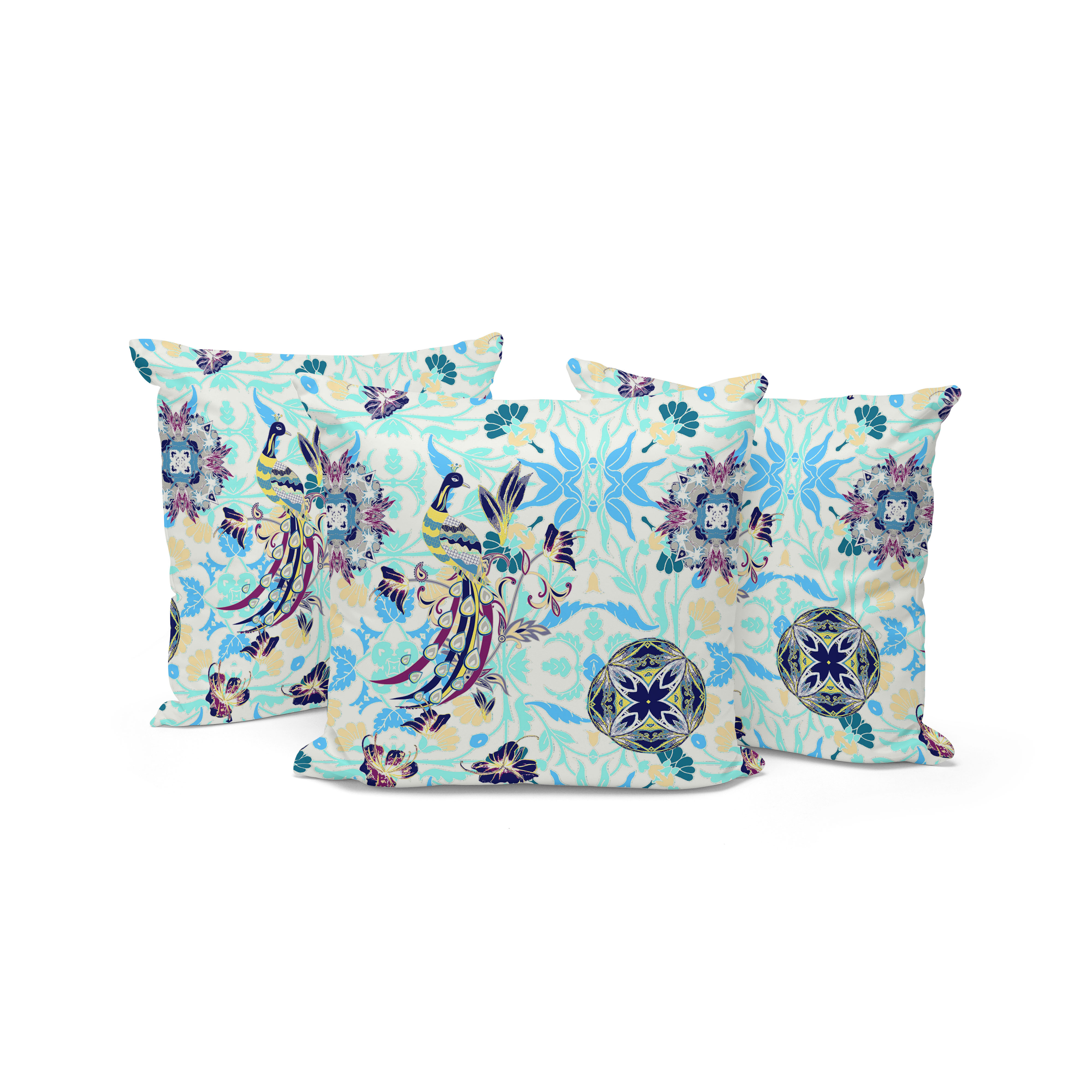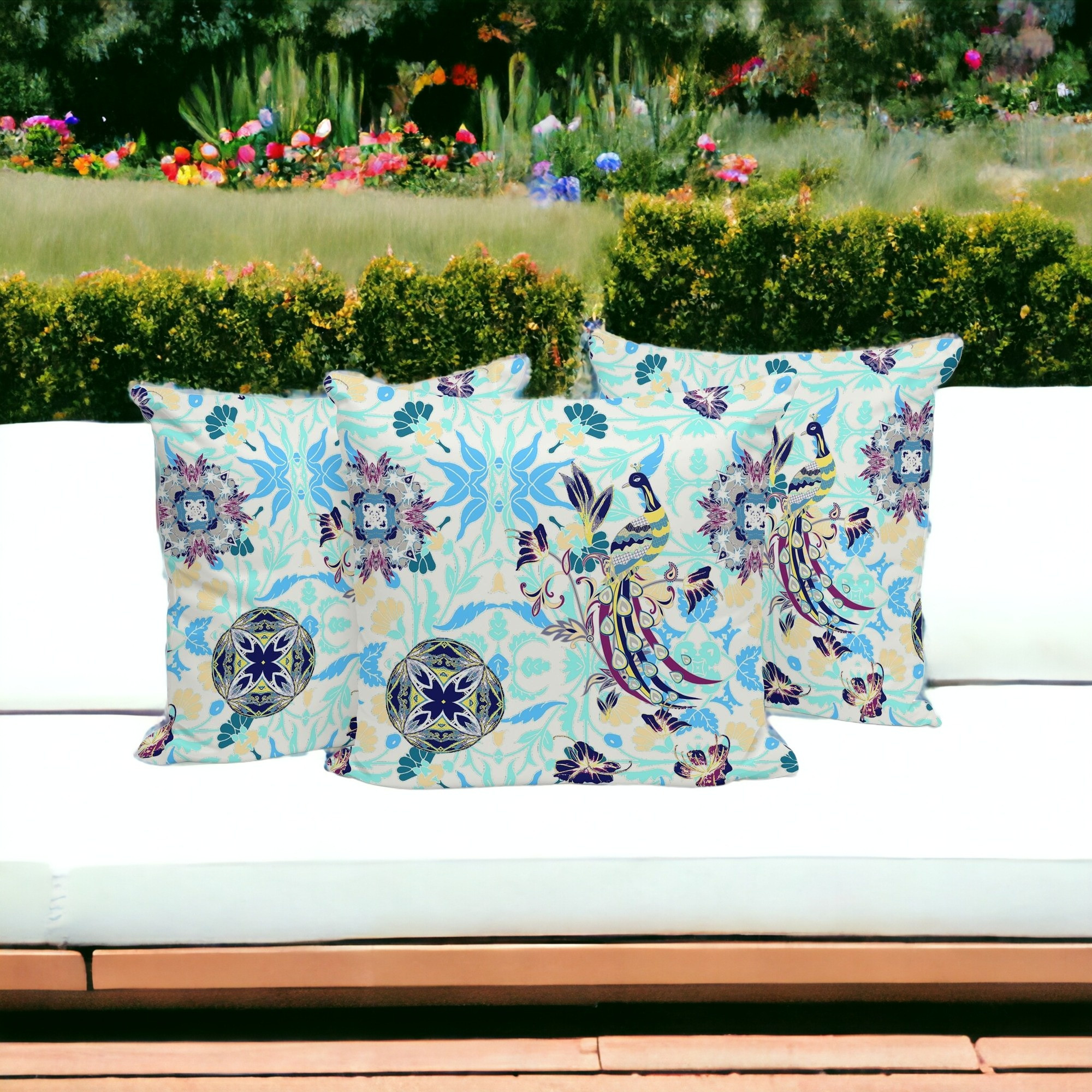 Everest Peacock Indoor/Outdoor Set of 3 Pillows in White Blue