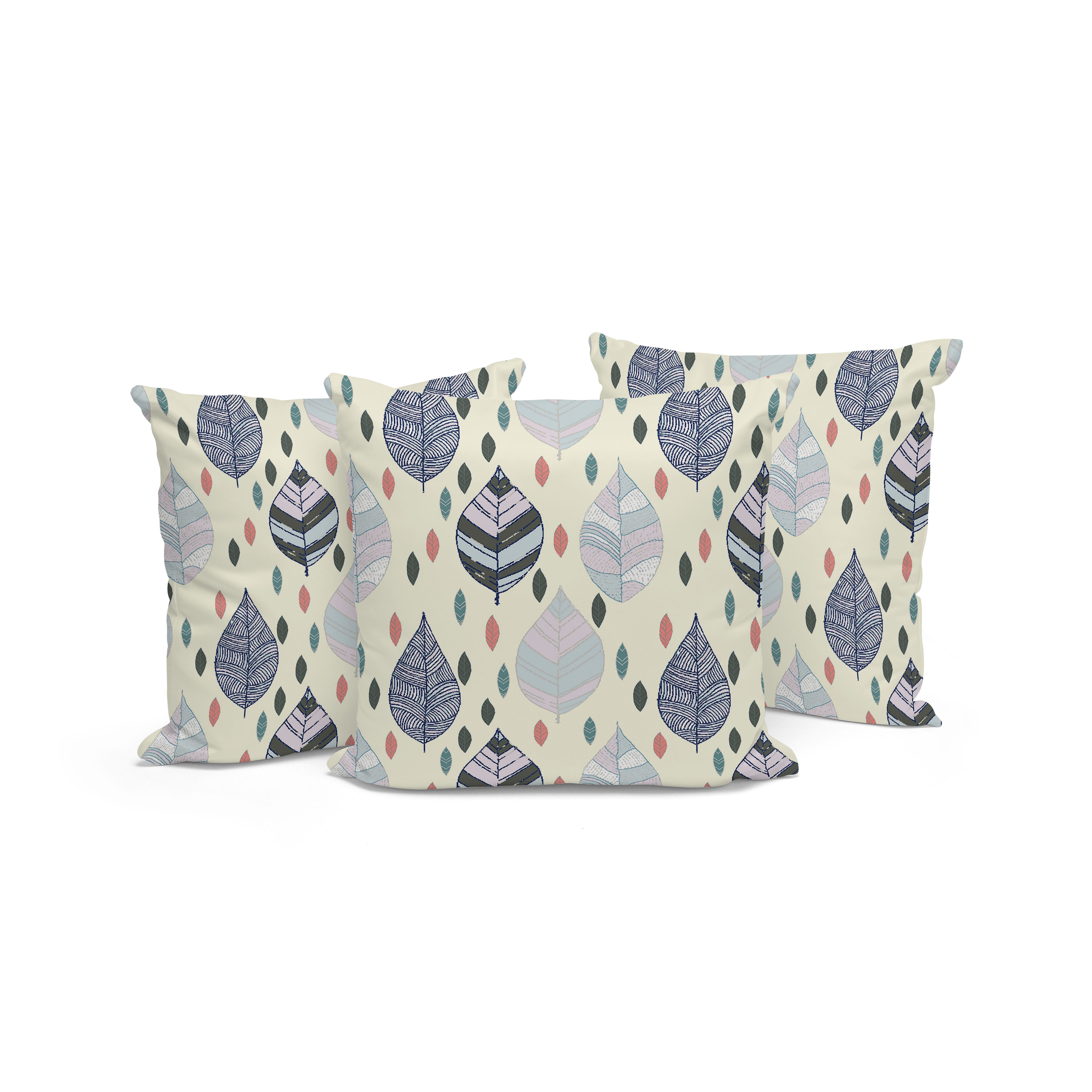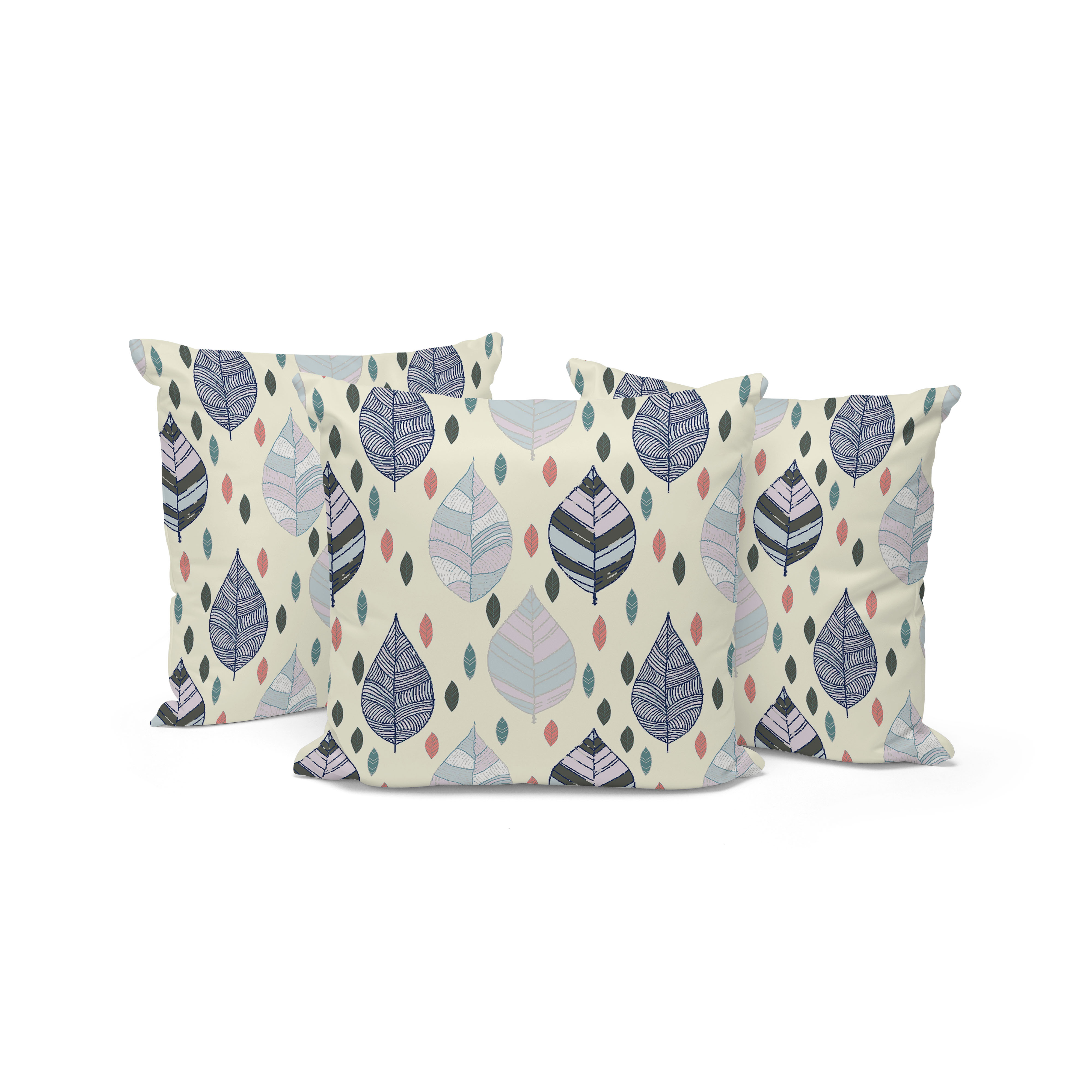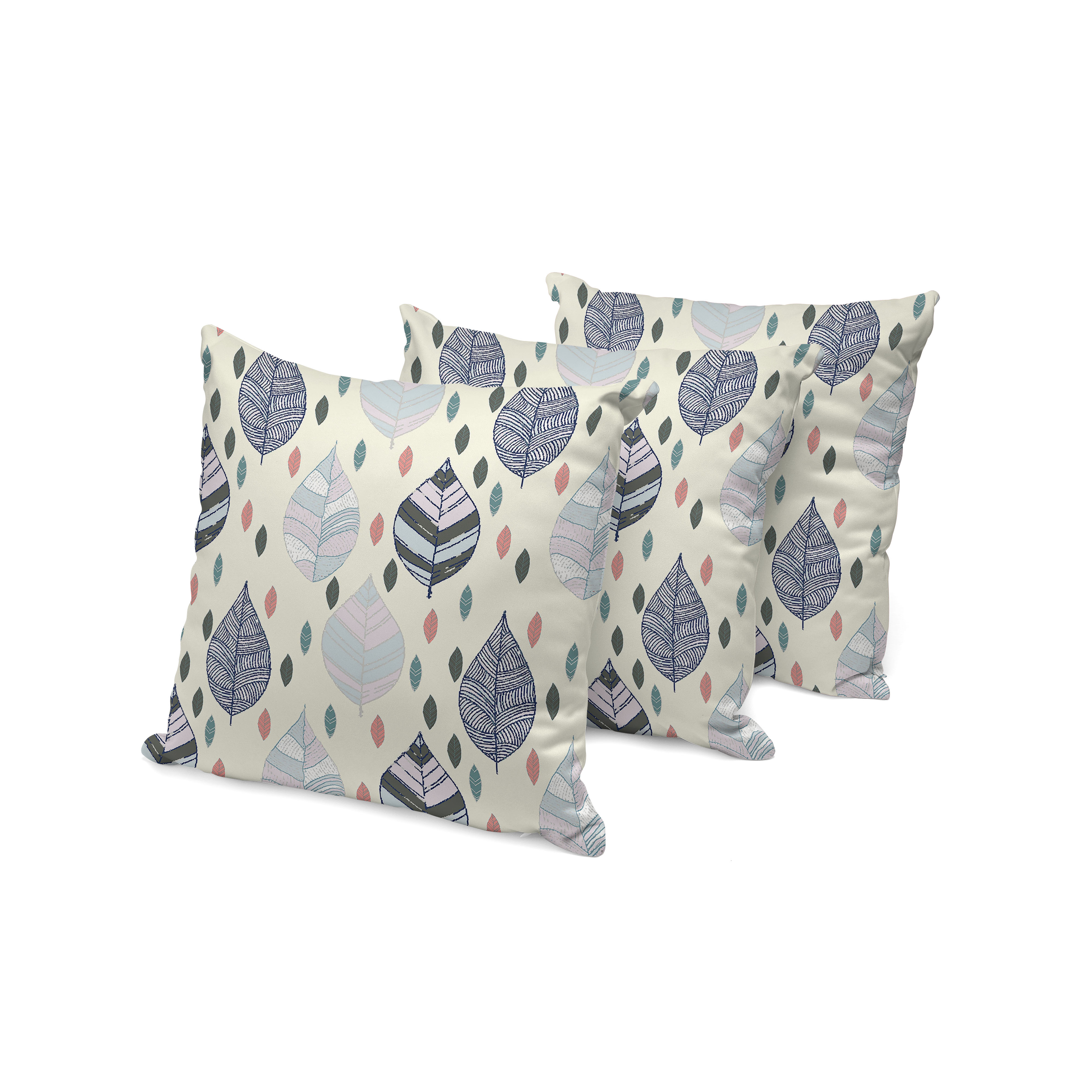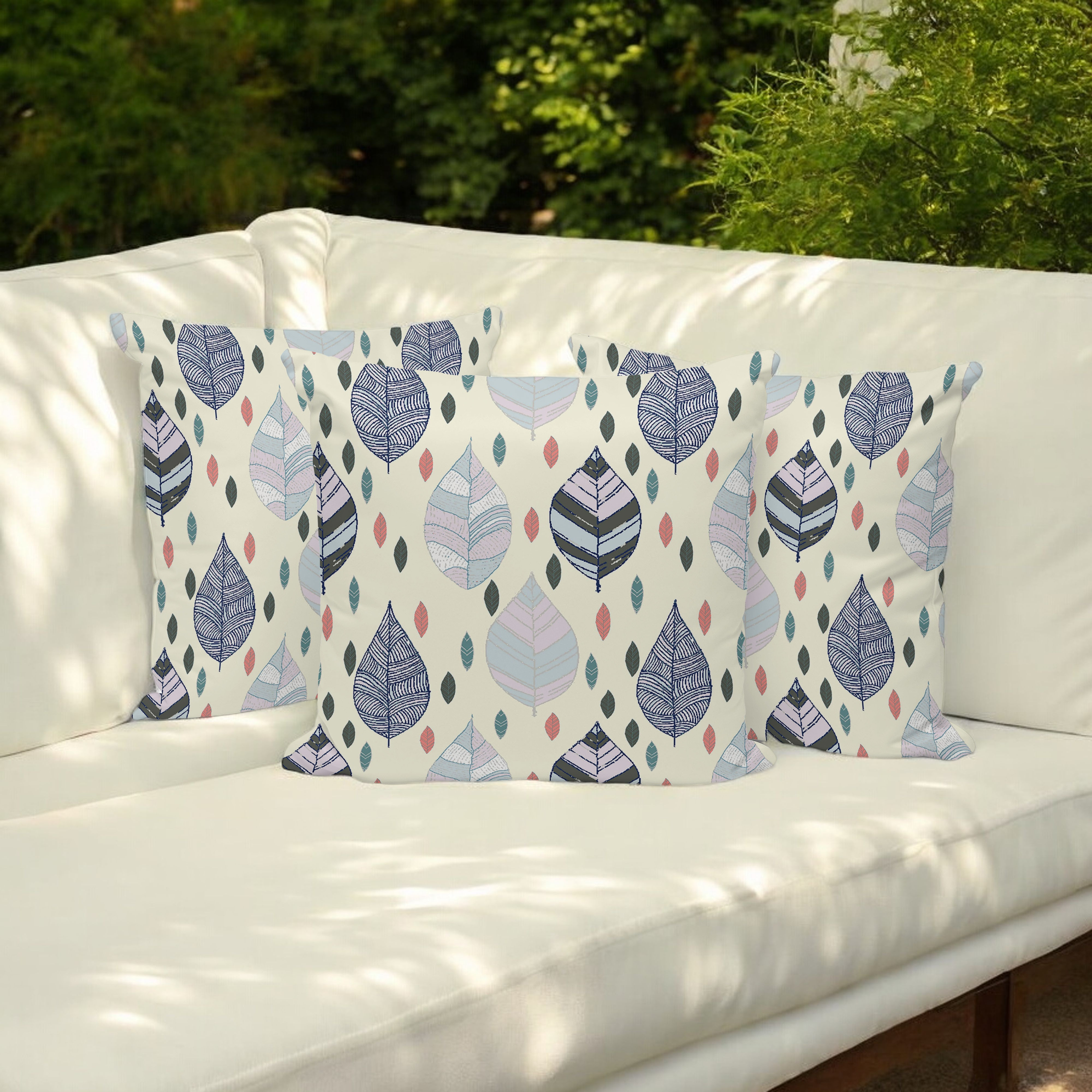Fall Leaves Indoor/Outdoor Set of 3 Pillows in Dark Green on Cream