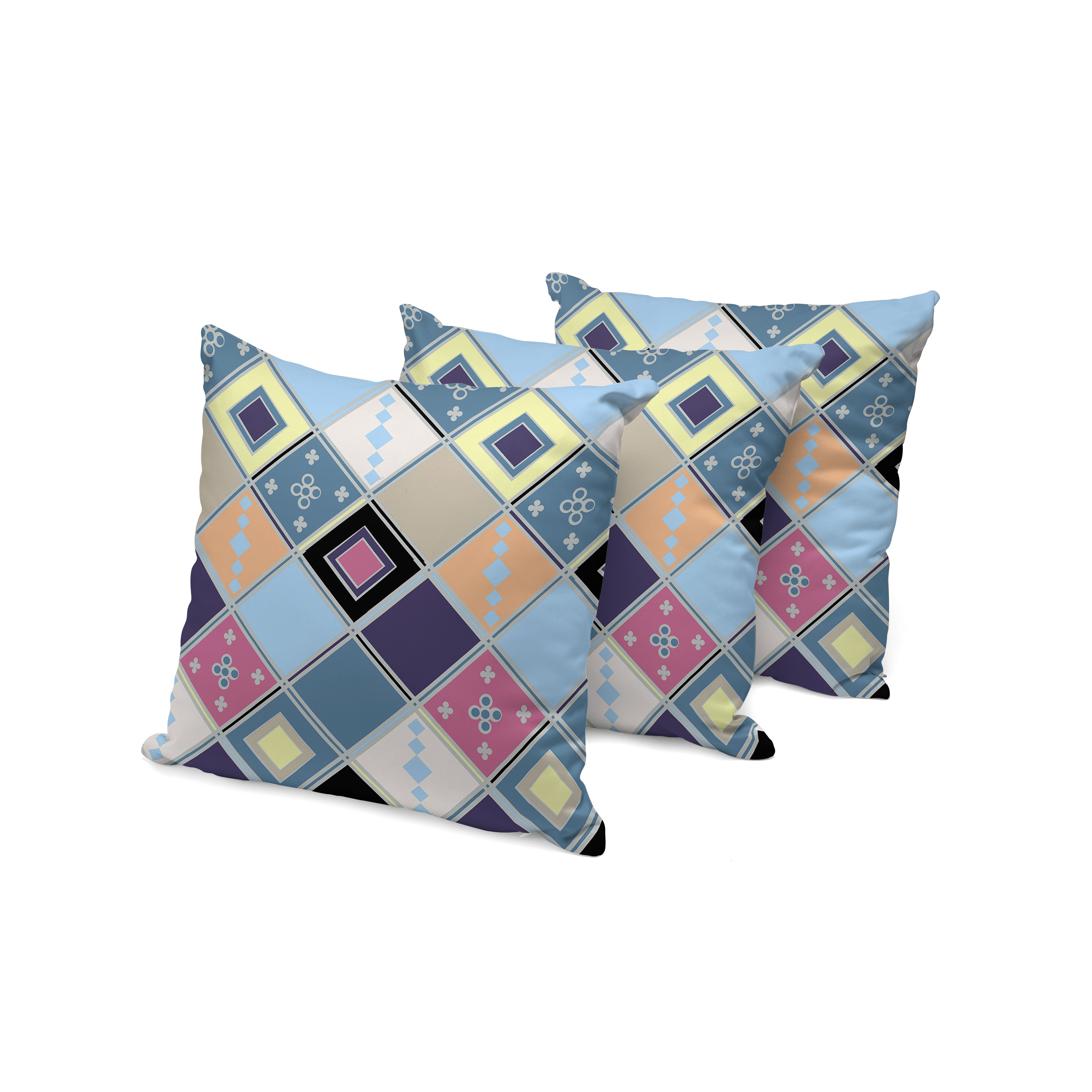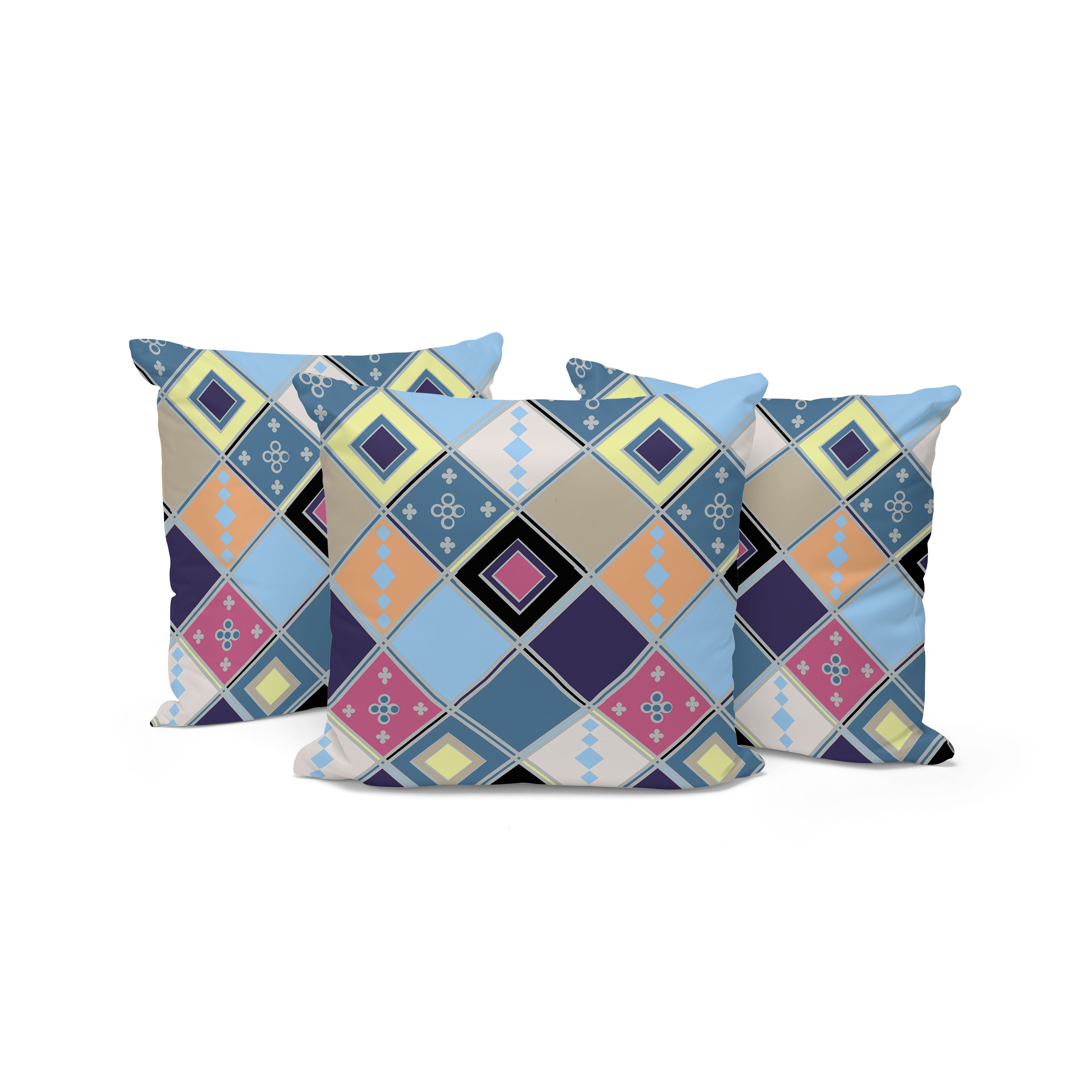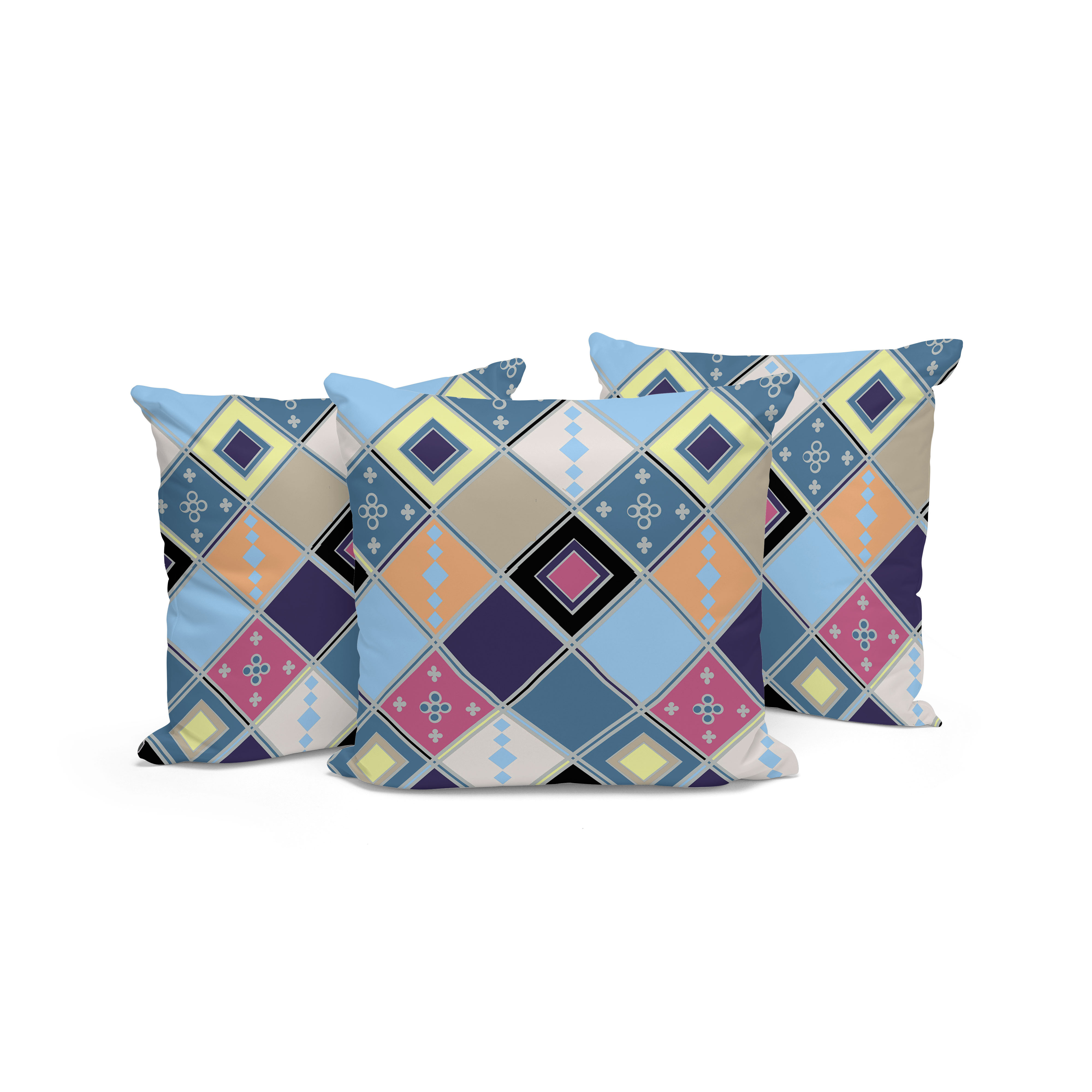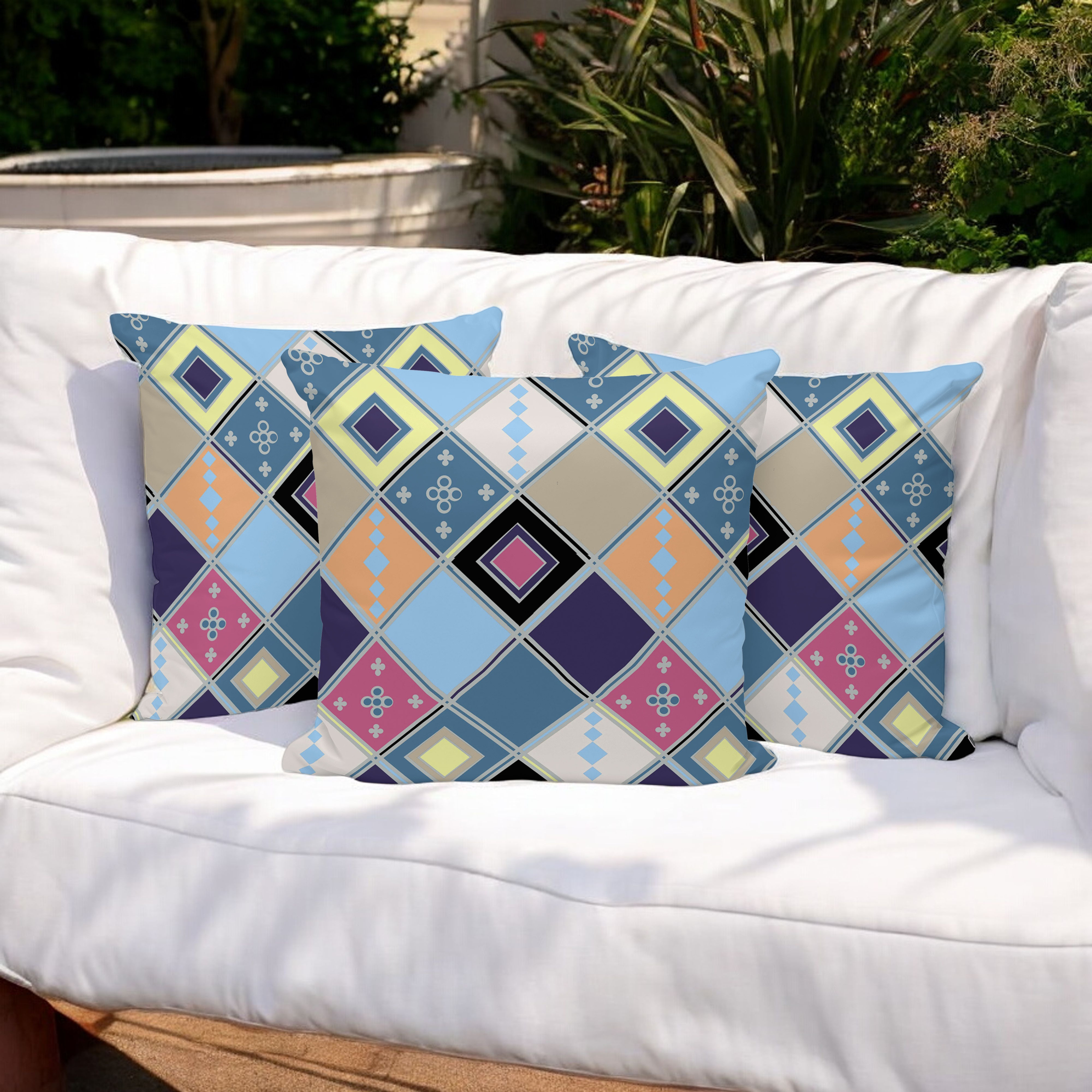 Quilted Tile Diamonds Indoor/Outdoor Set of 3 Pillows in Blue Purple
