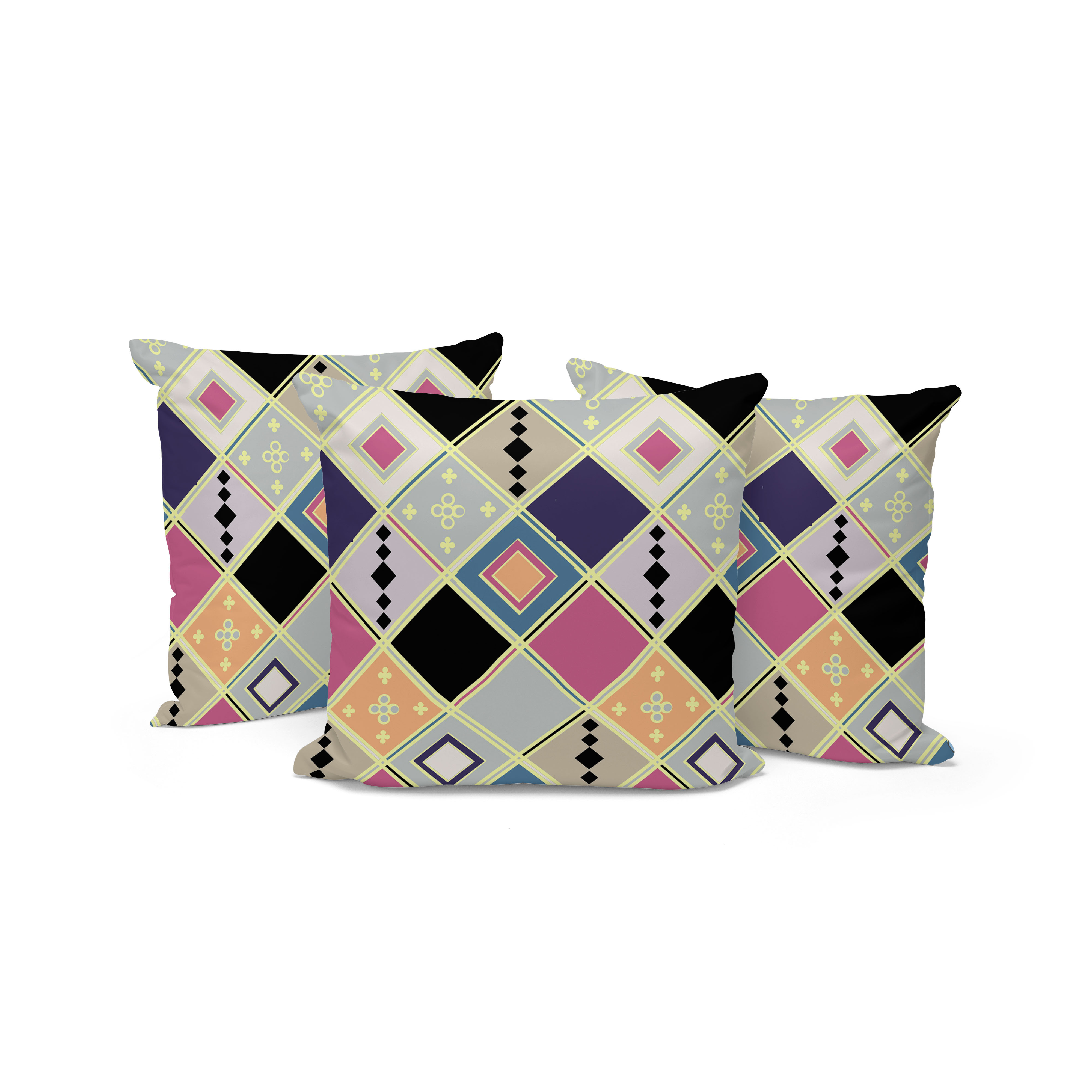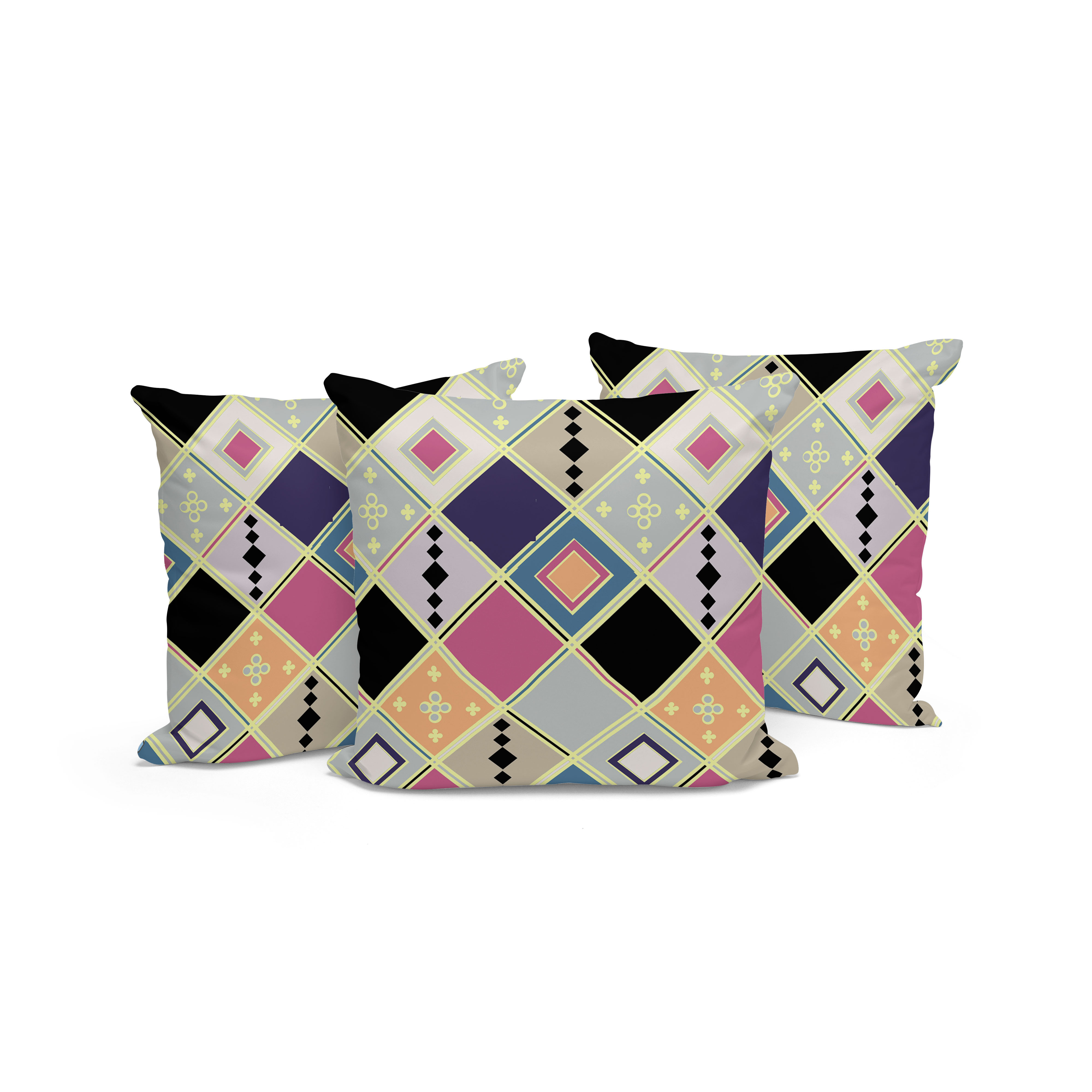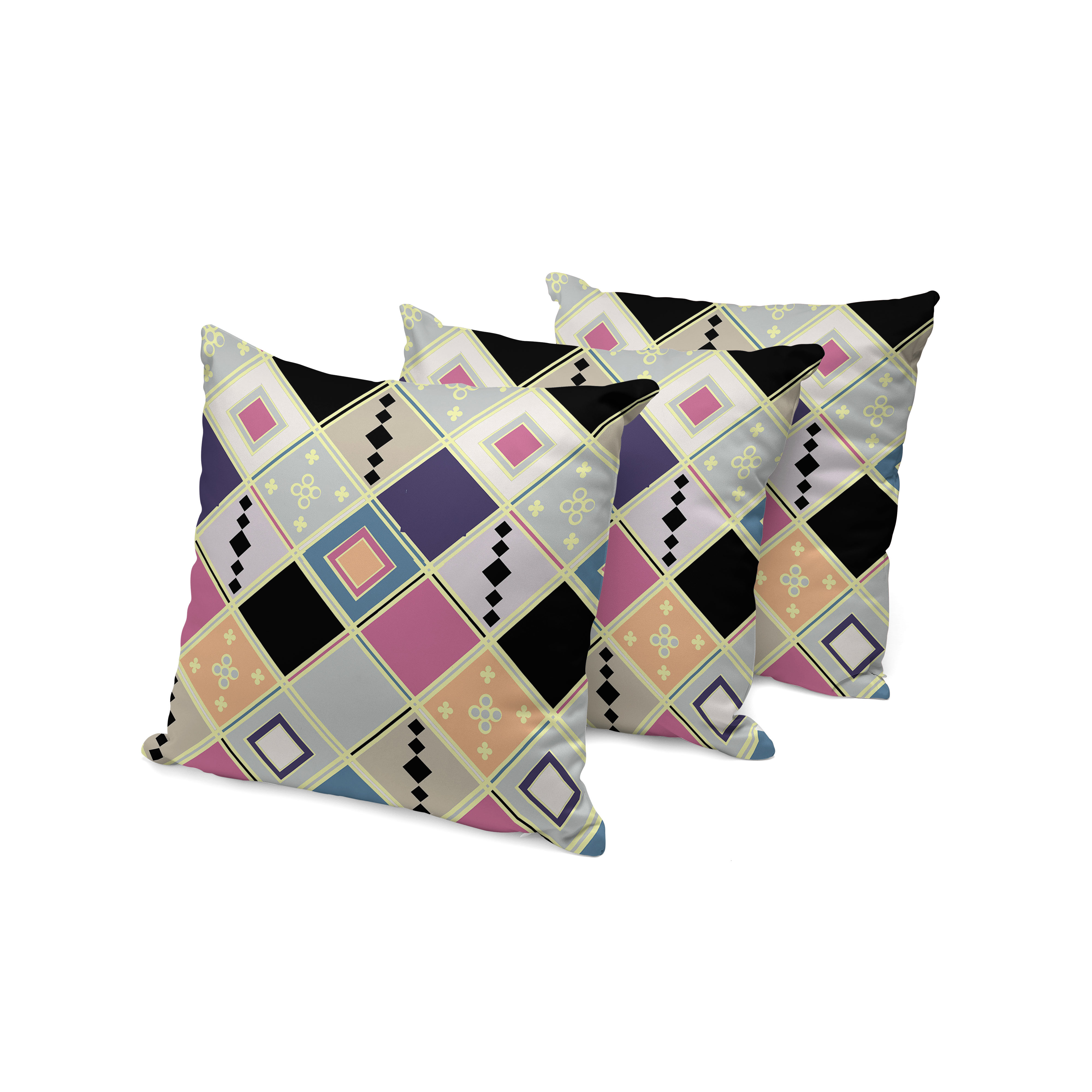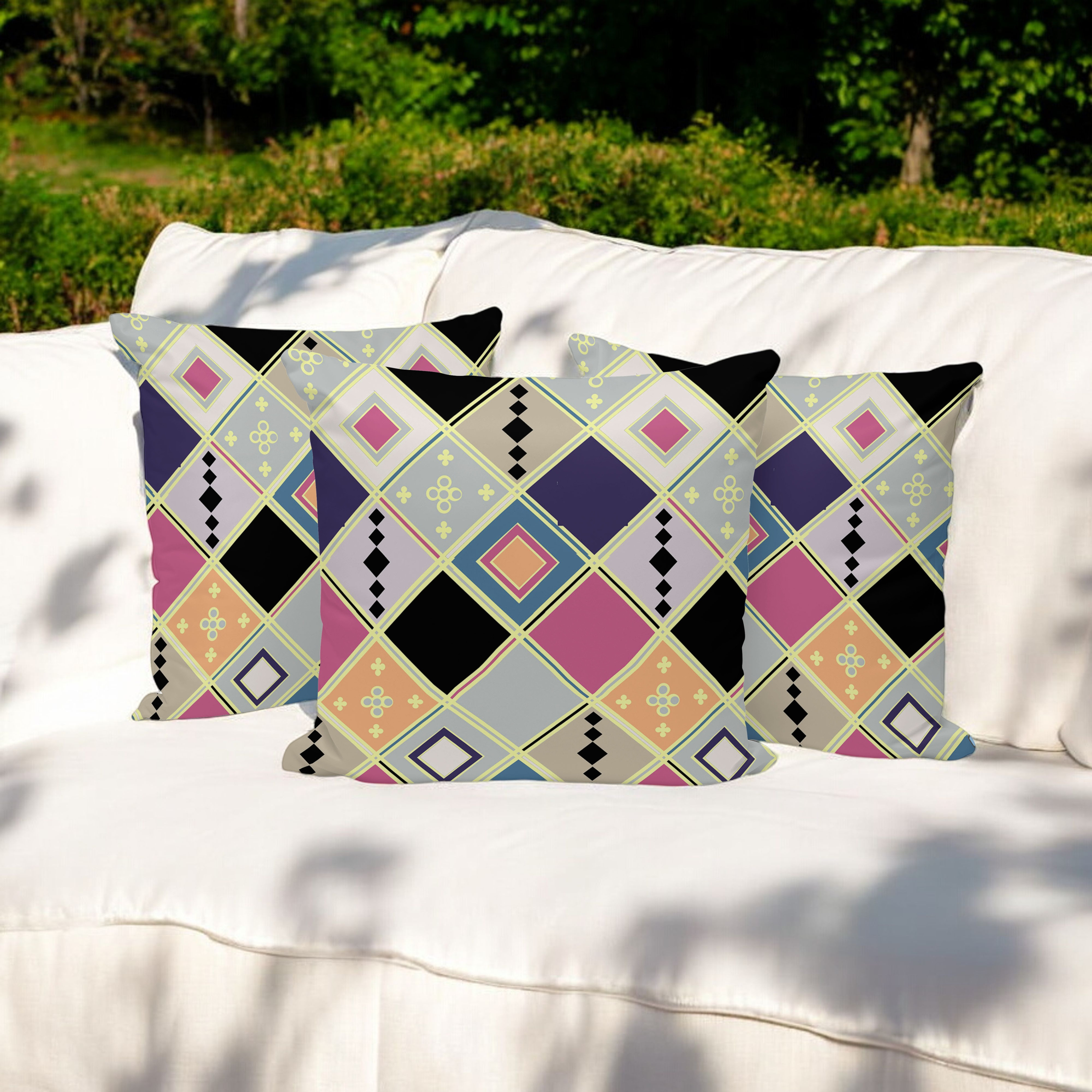 Quilted Tile Diamonds Indoor/Outdoor Set of 3 Pillows in Pink Gold