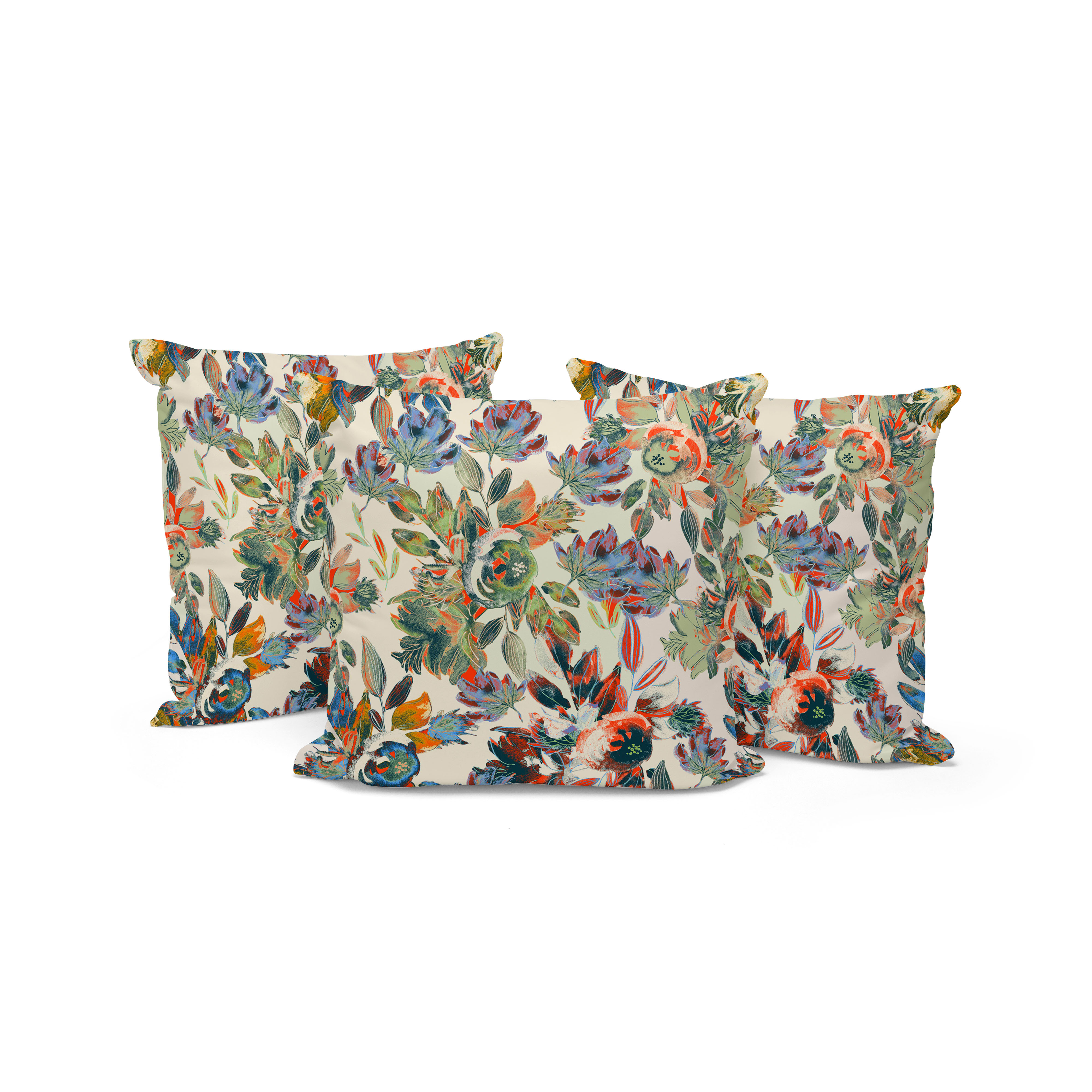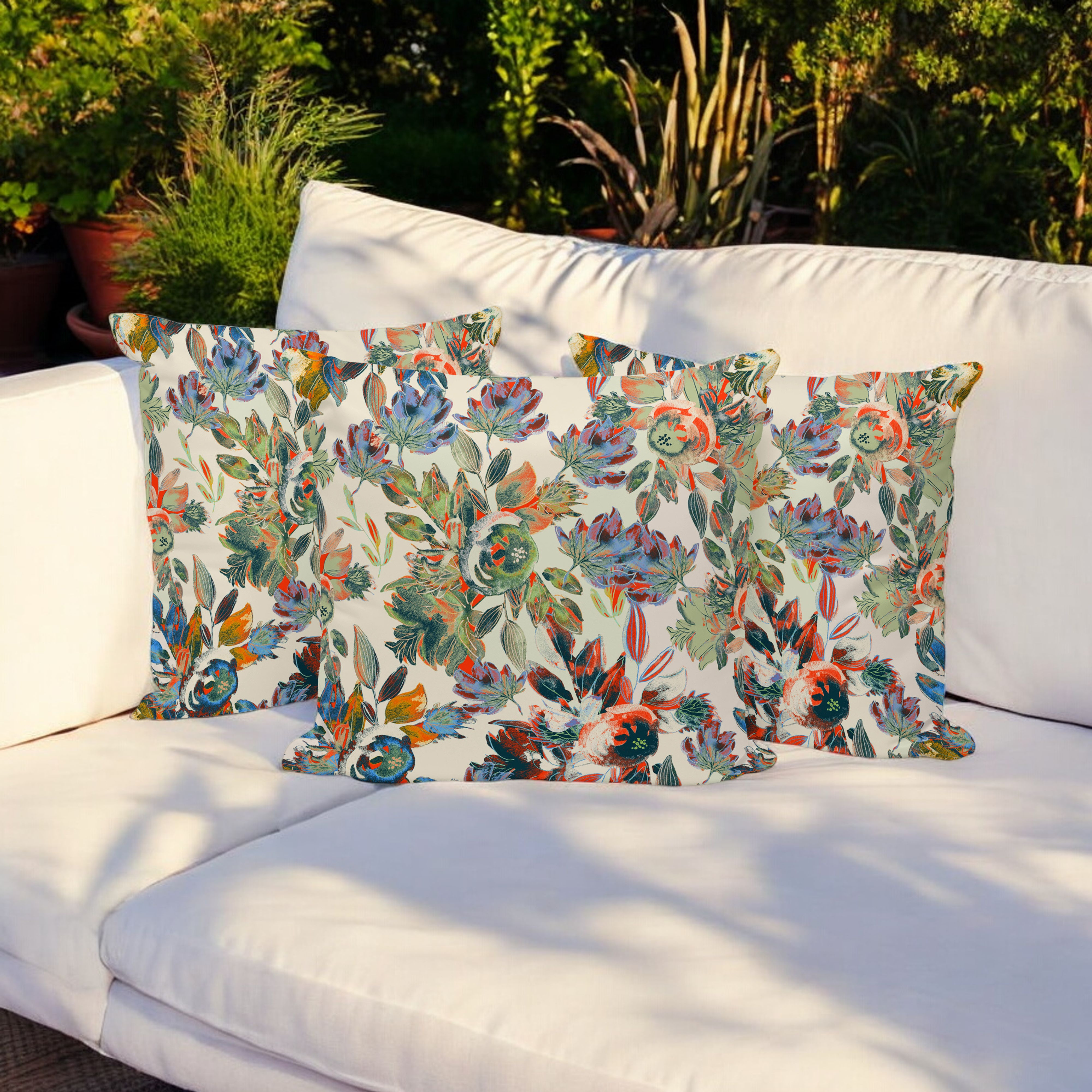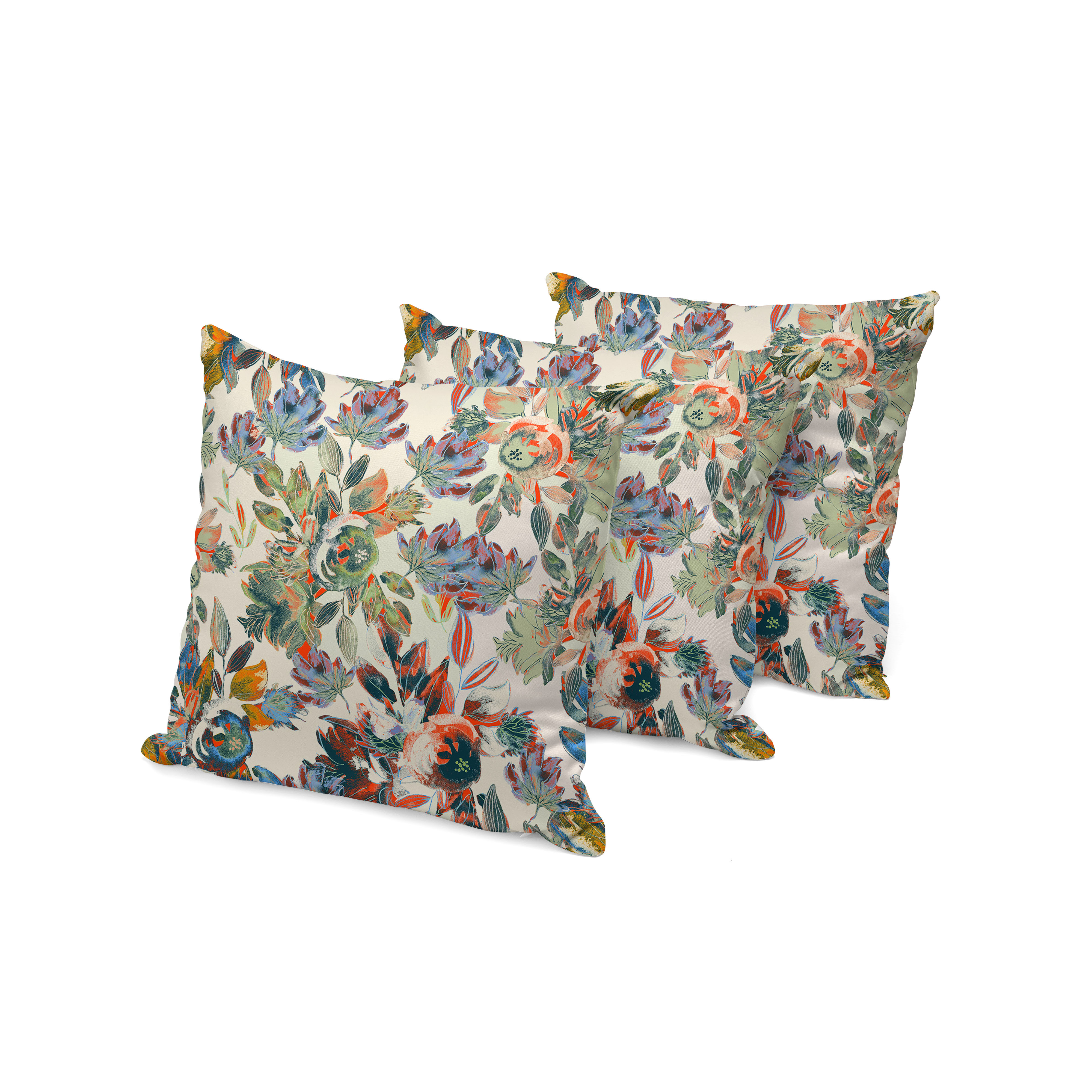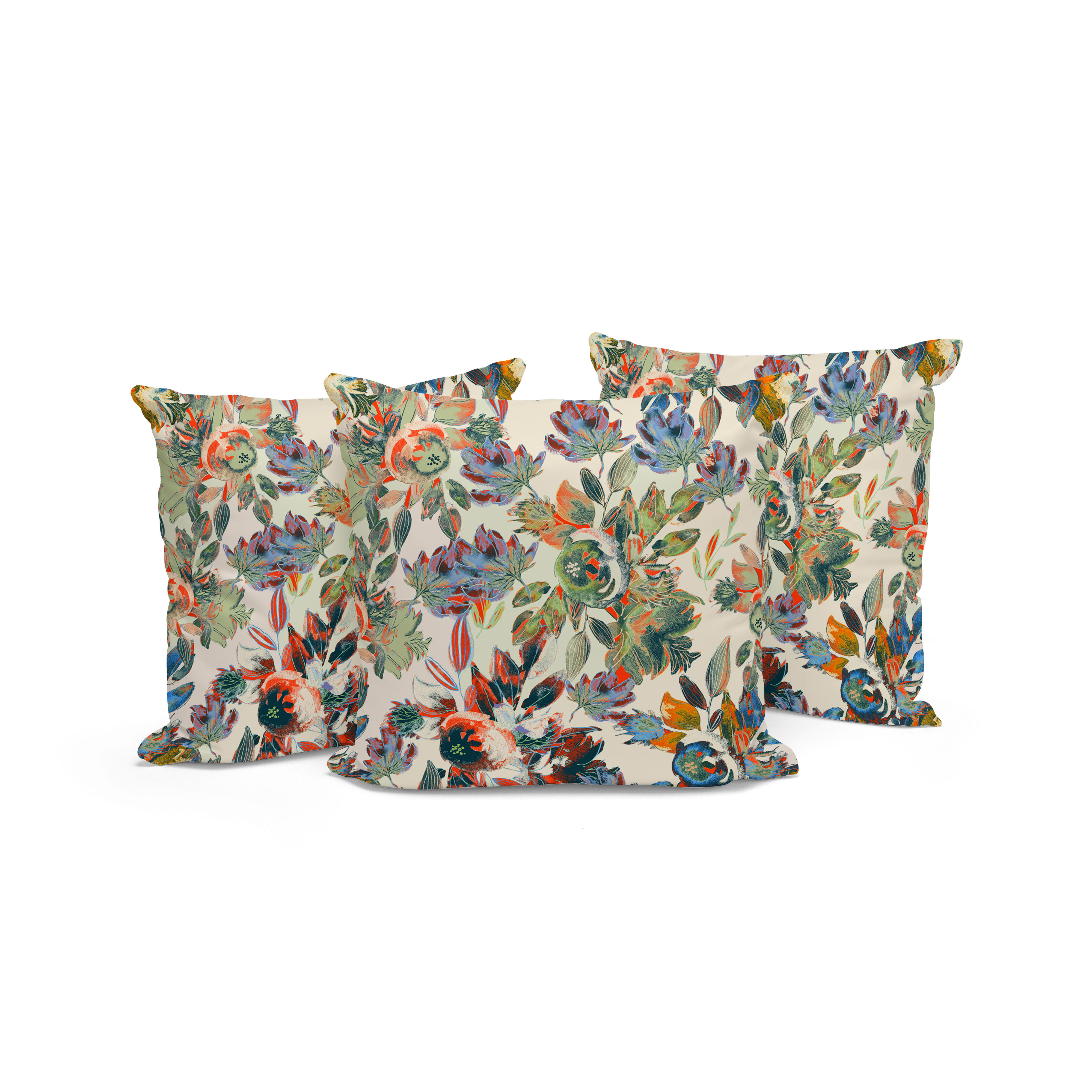 Set of Three Green Botanical Indoor Outdoor Throw Pillow