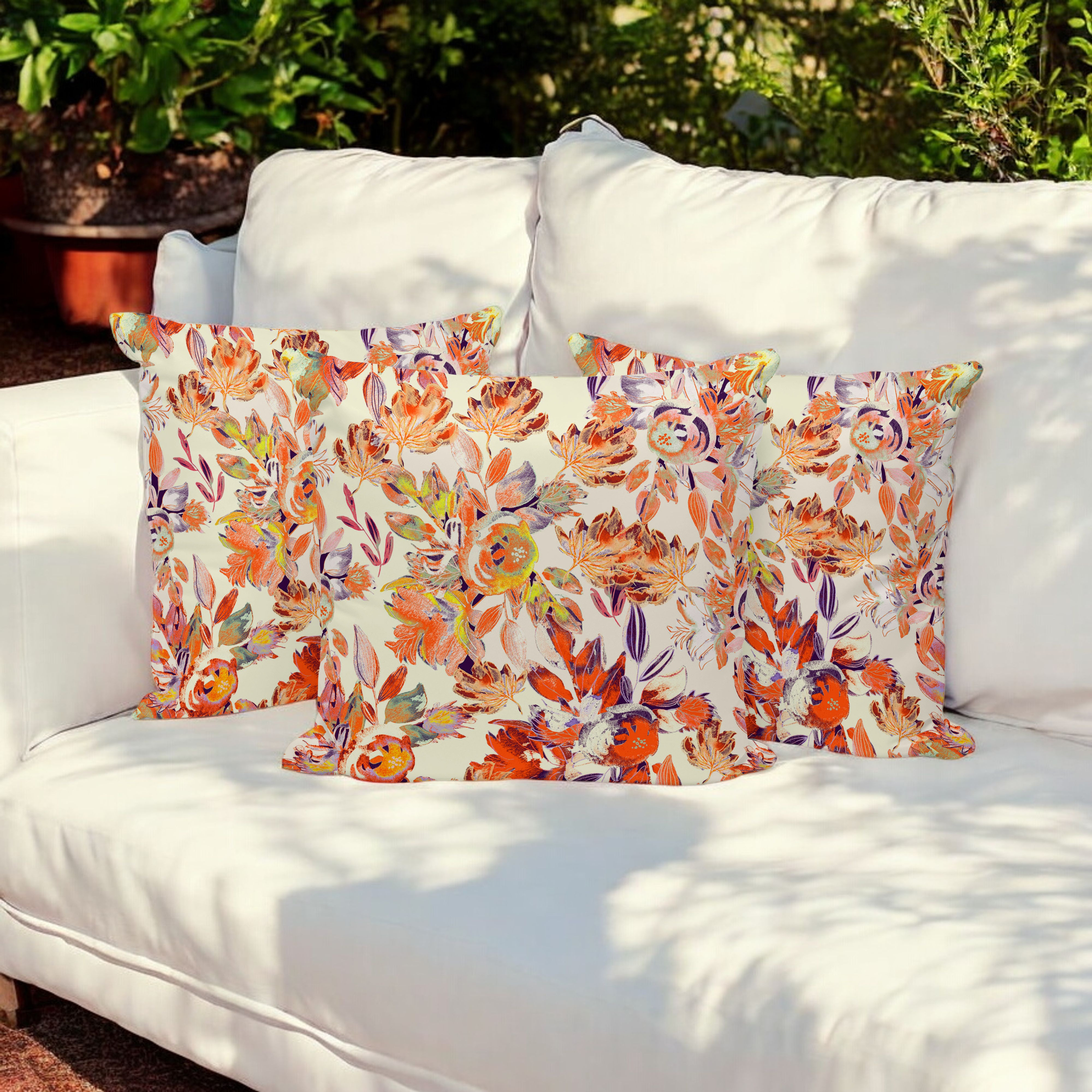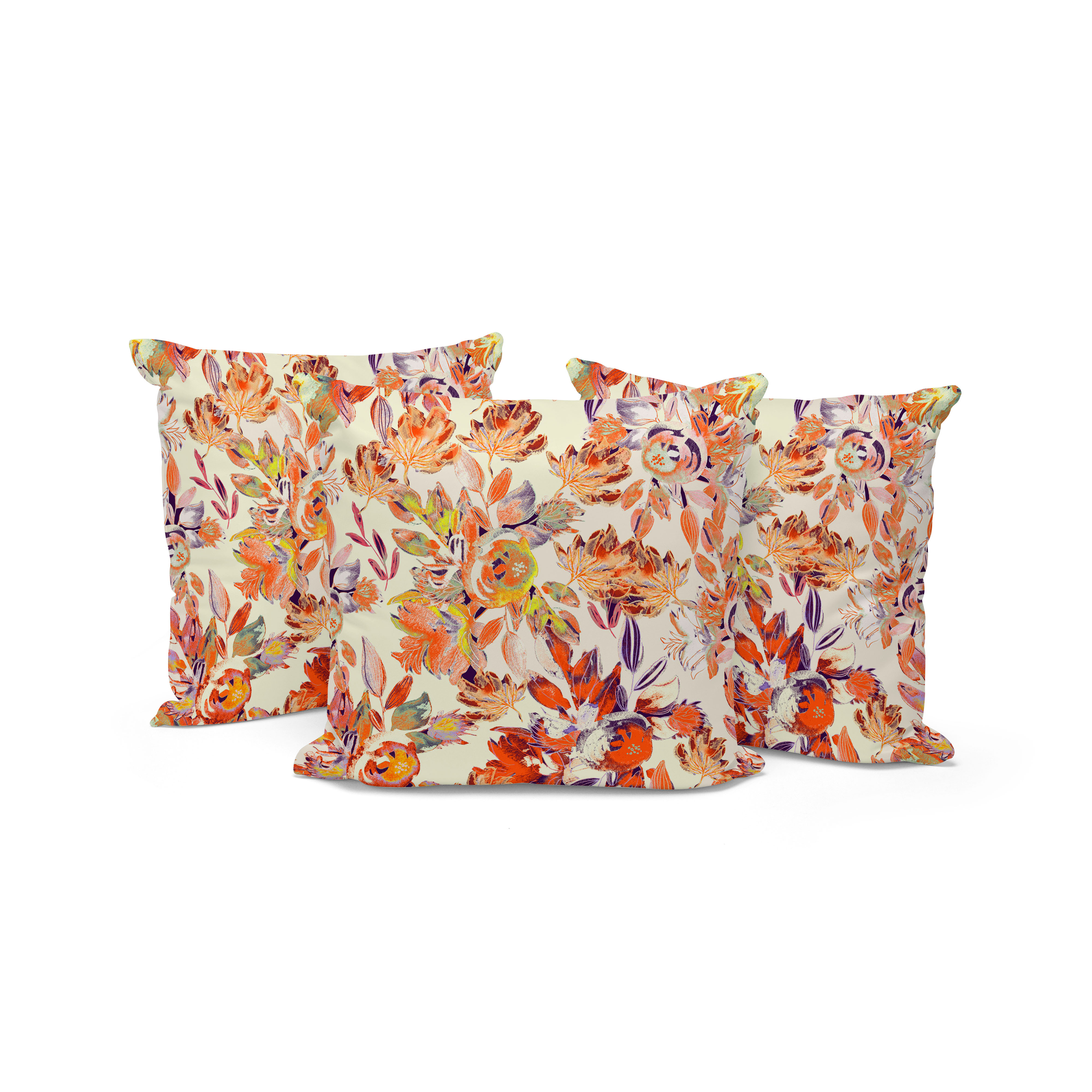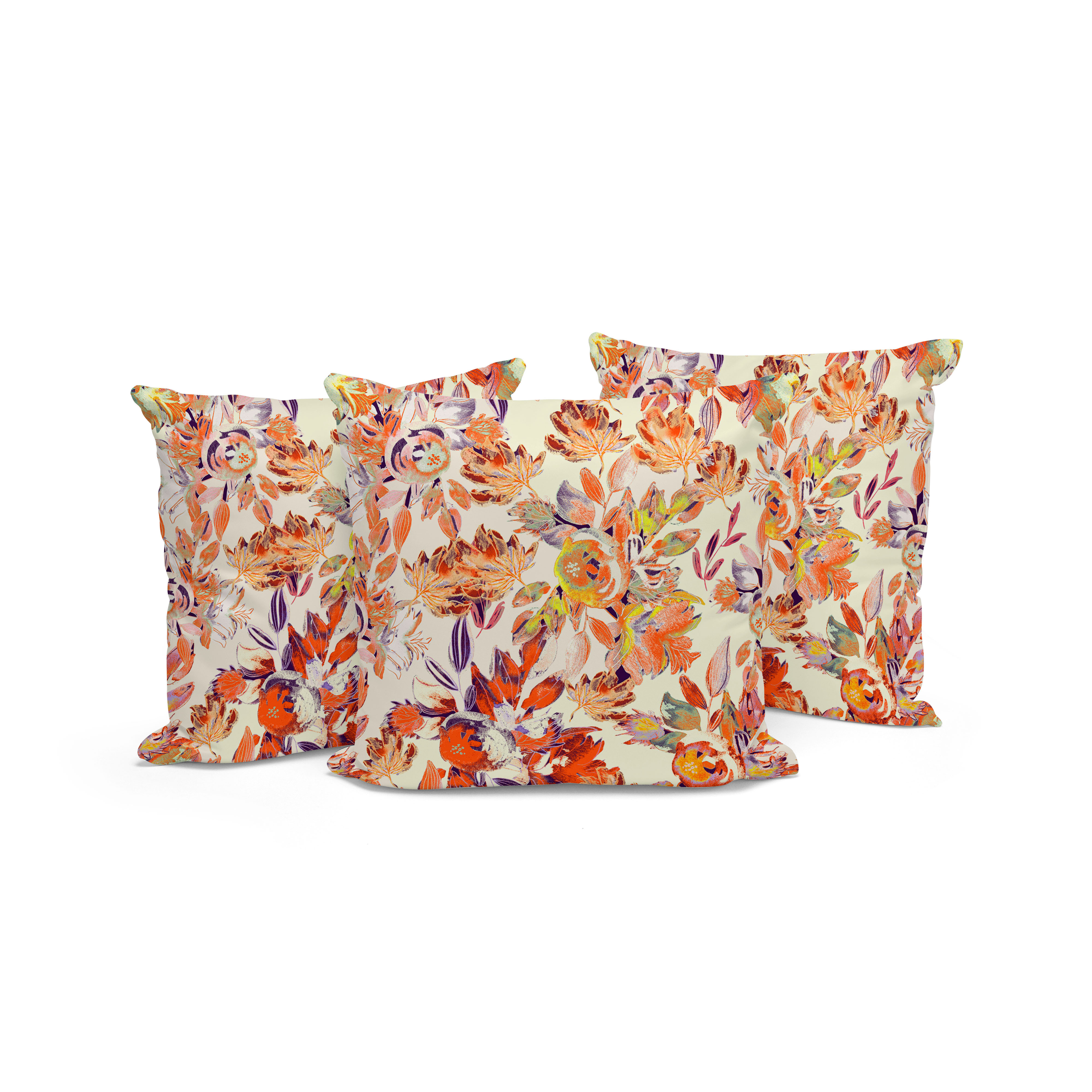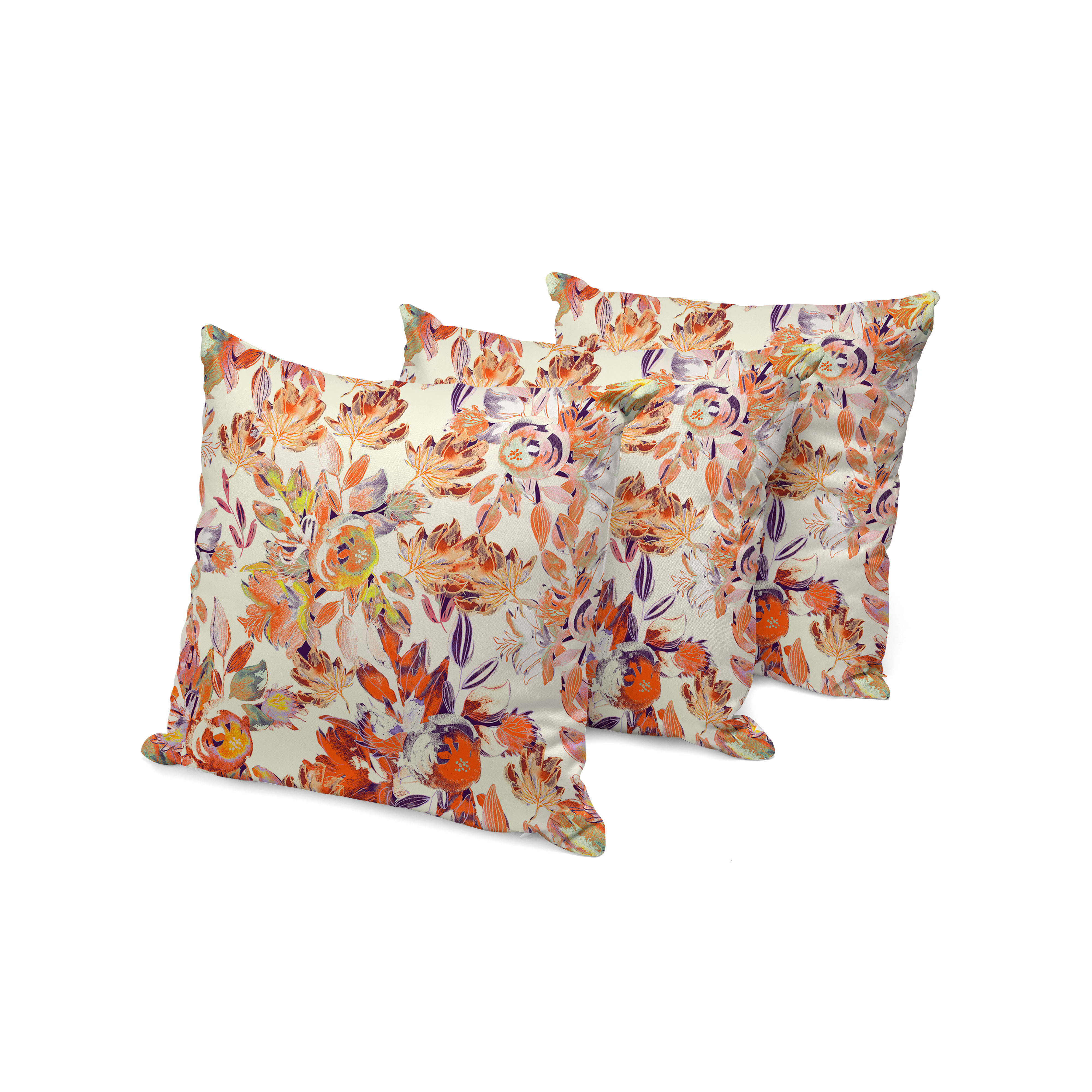 Watercolor Lilac Bulb Indoor/Outdoor Set of 3 Pillows in Red Orange Beige