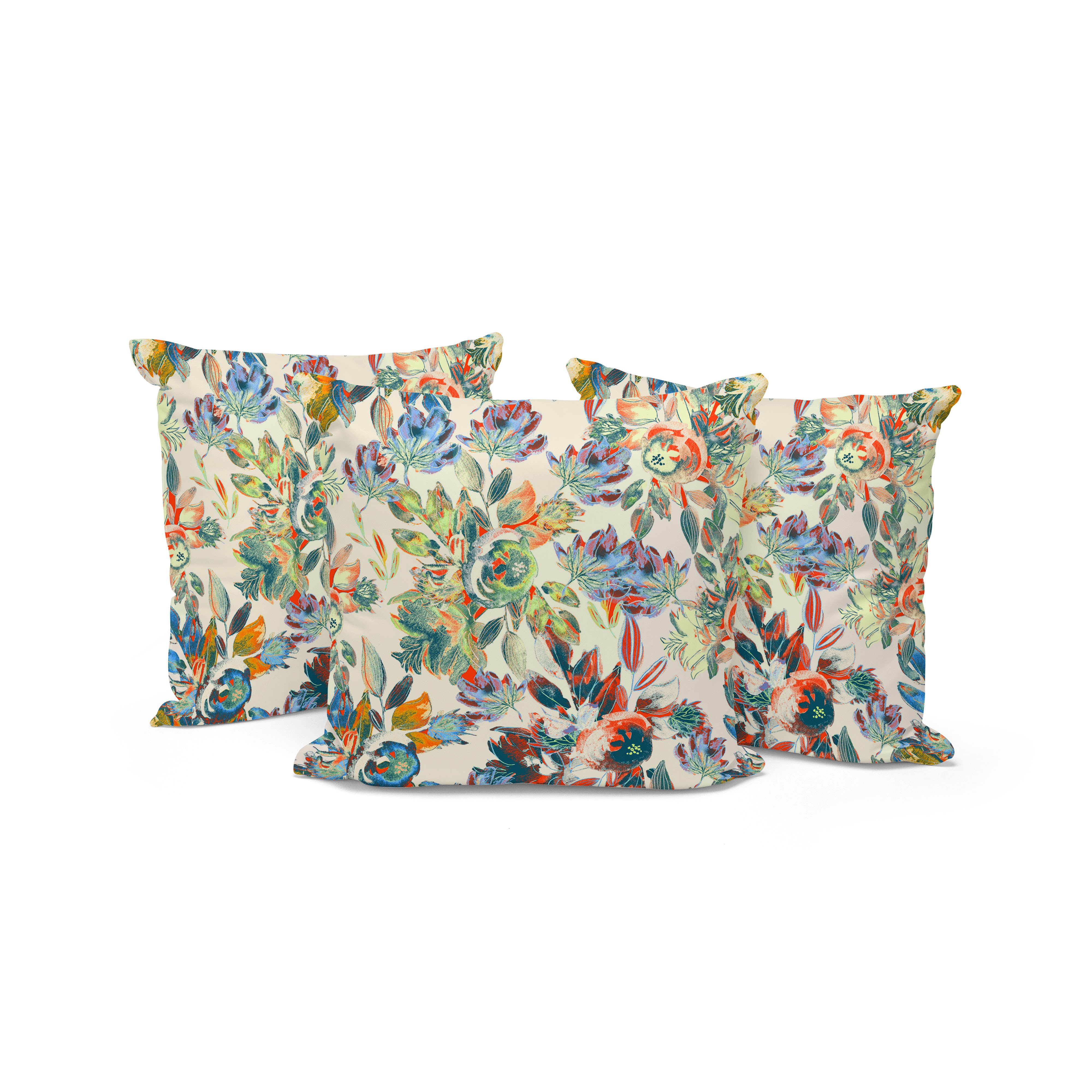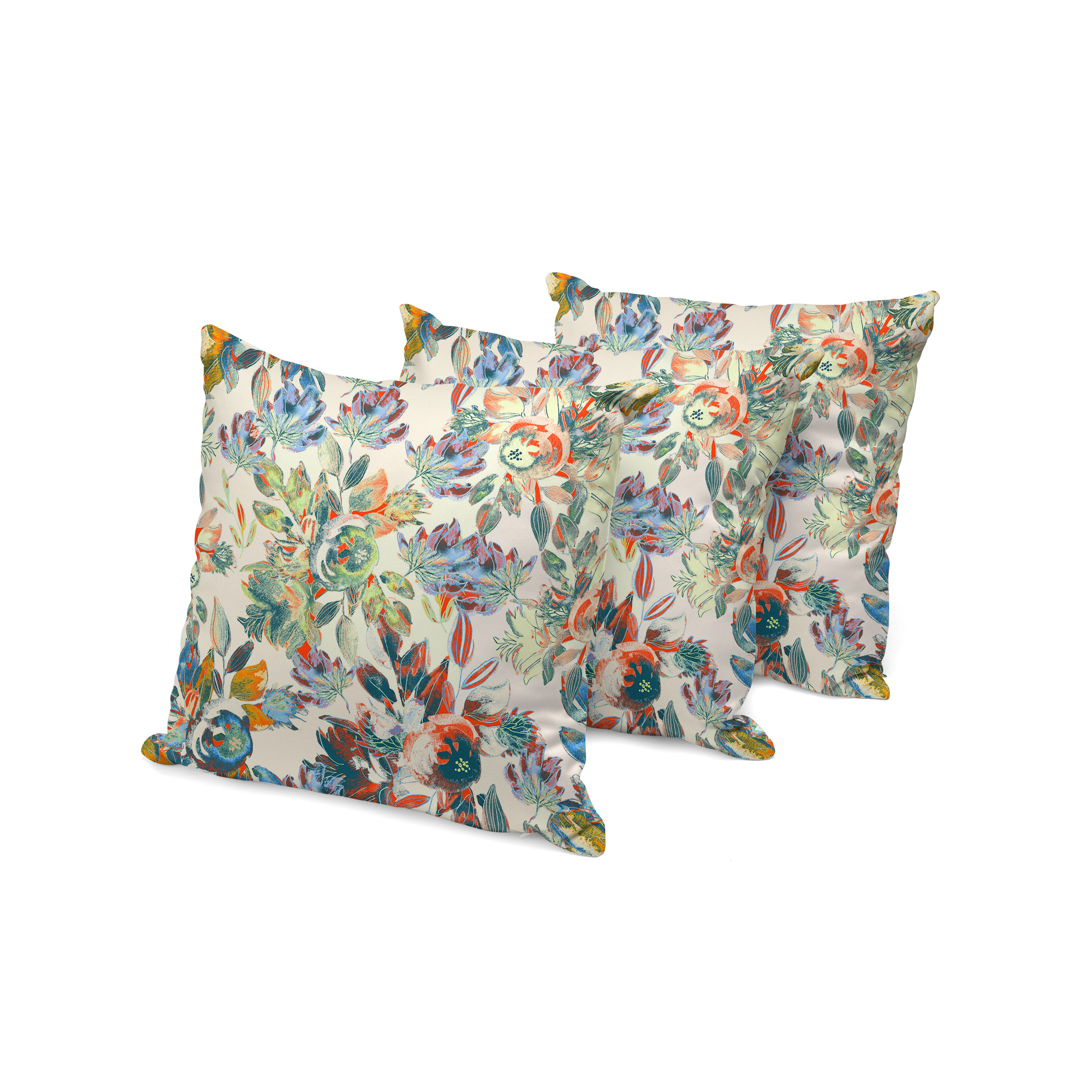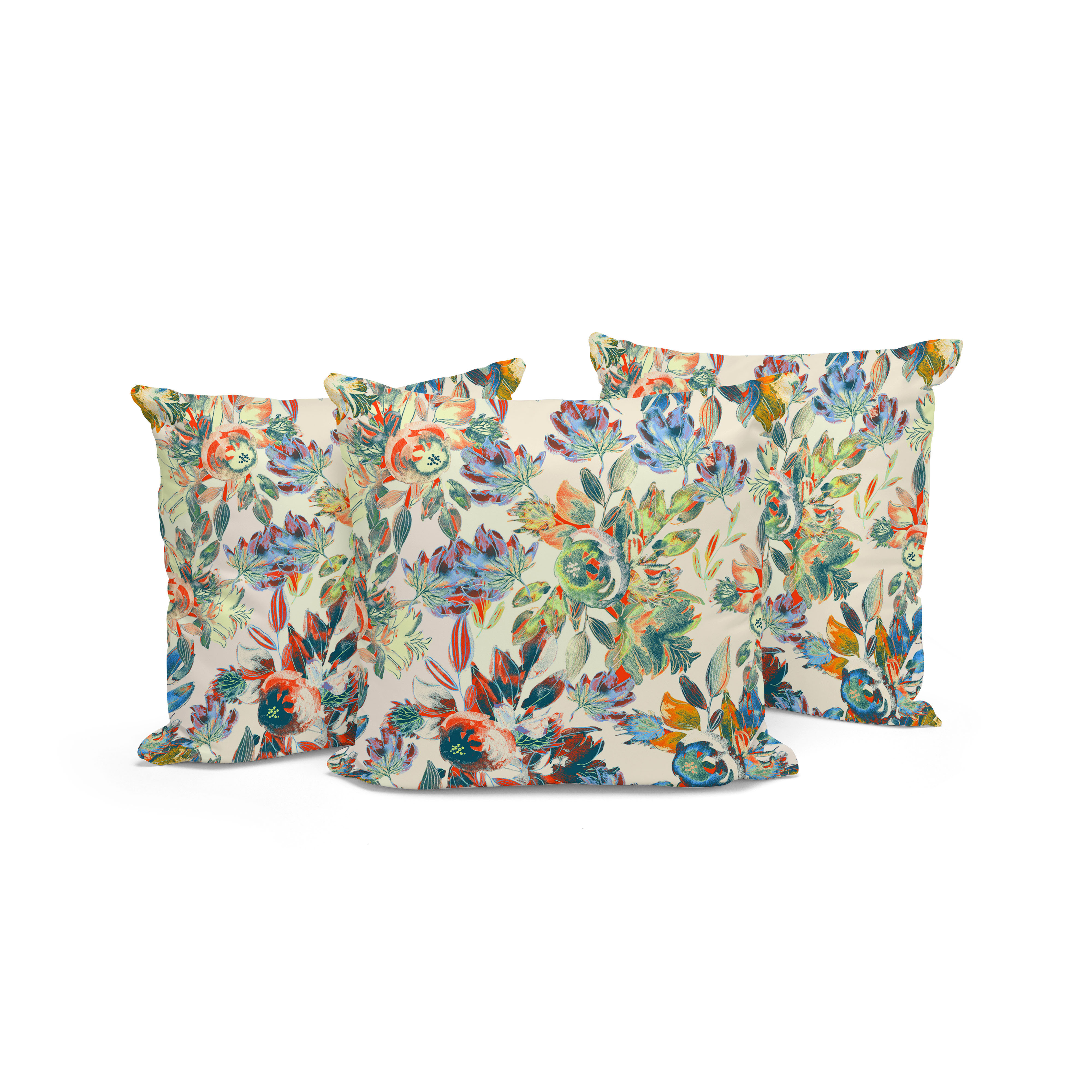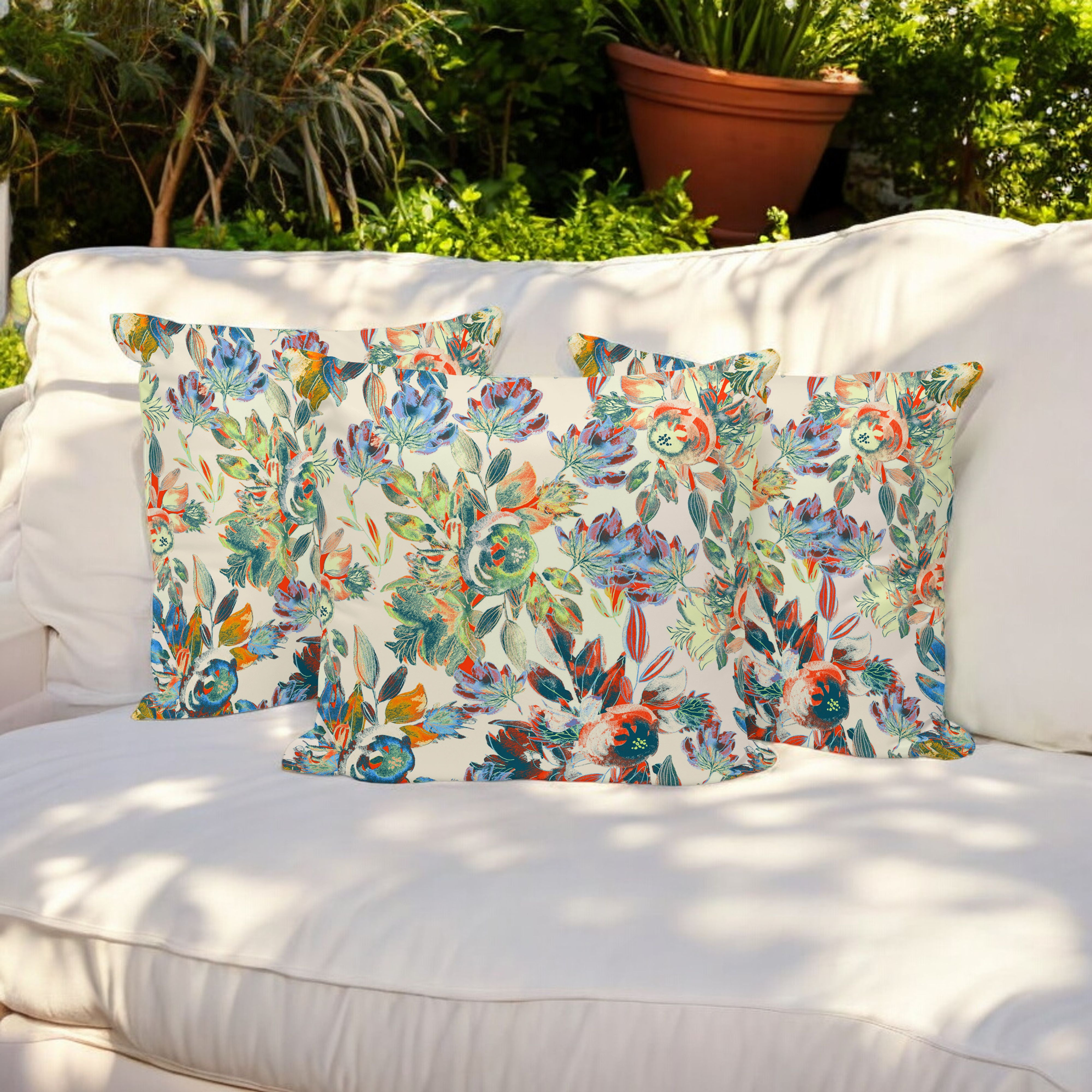 Set of Three White Botanical Indoor Outdoor Throw Pillow