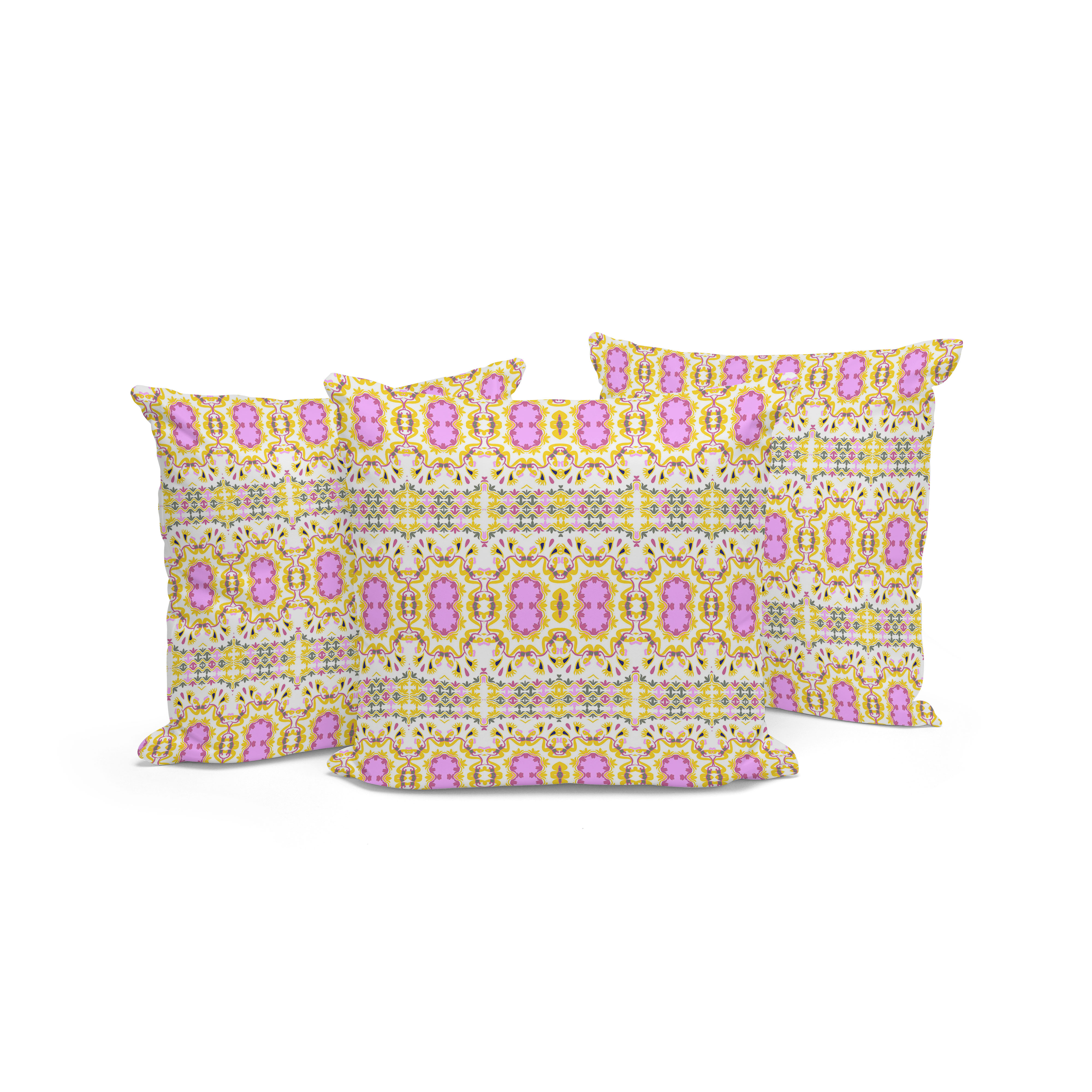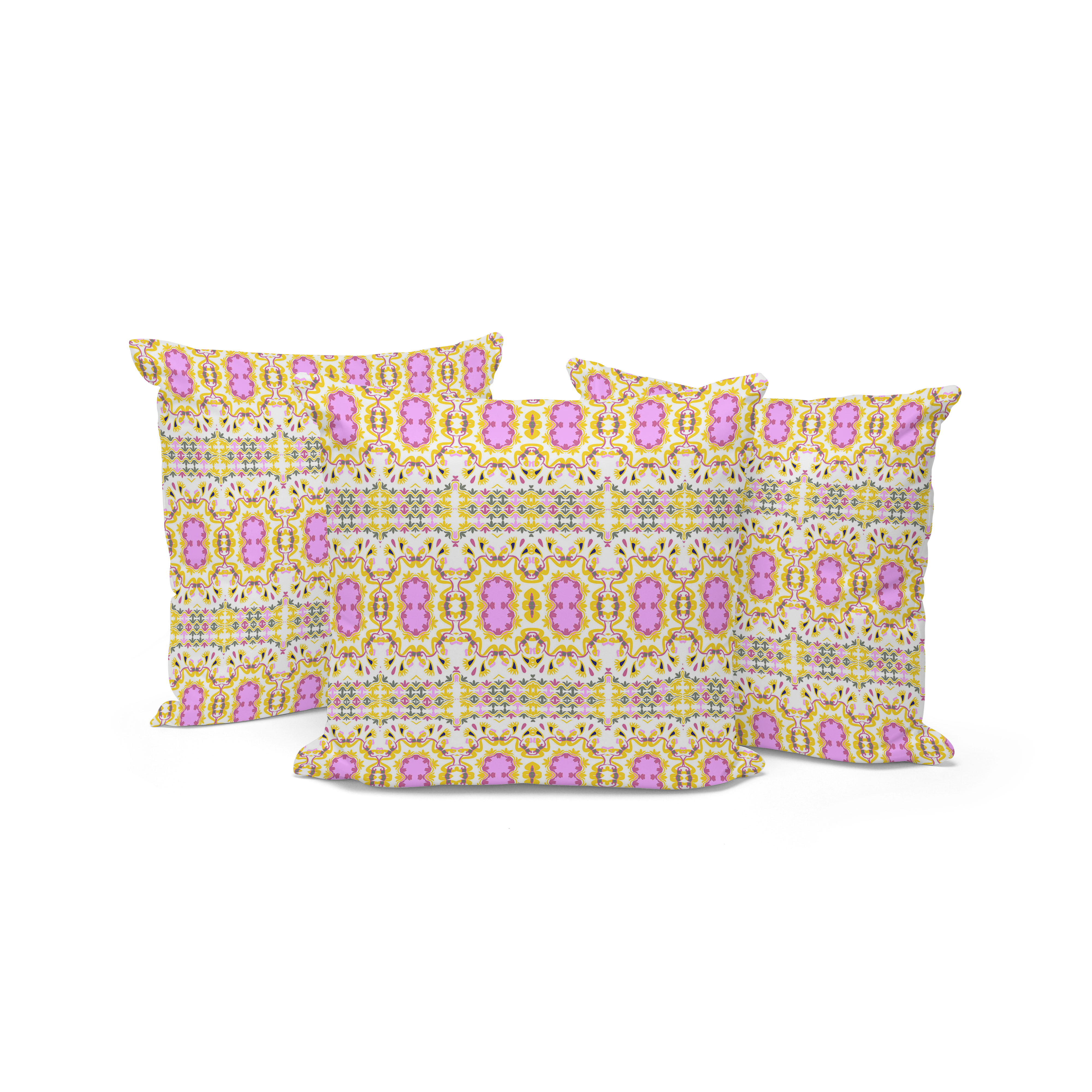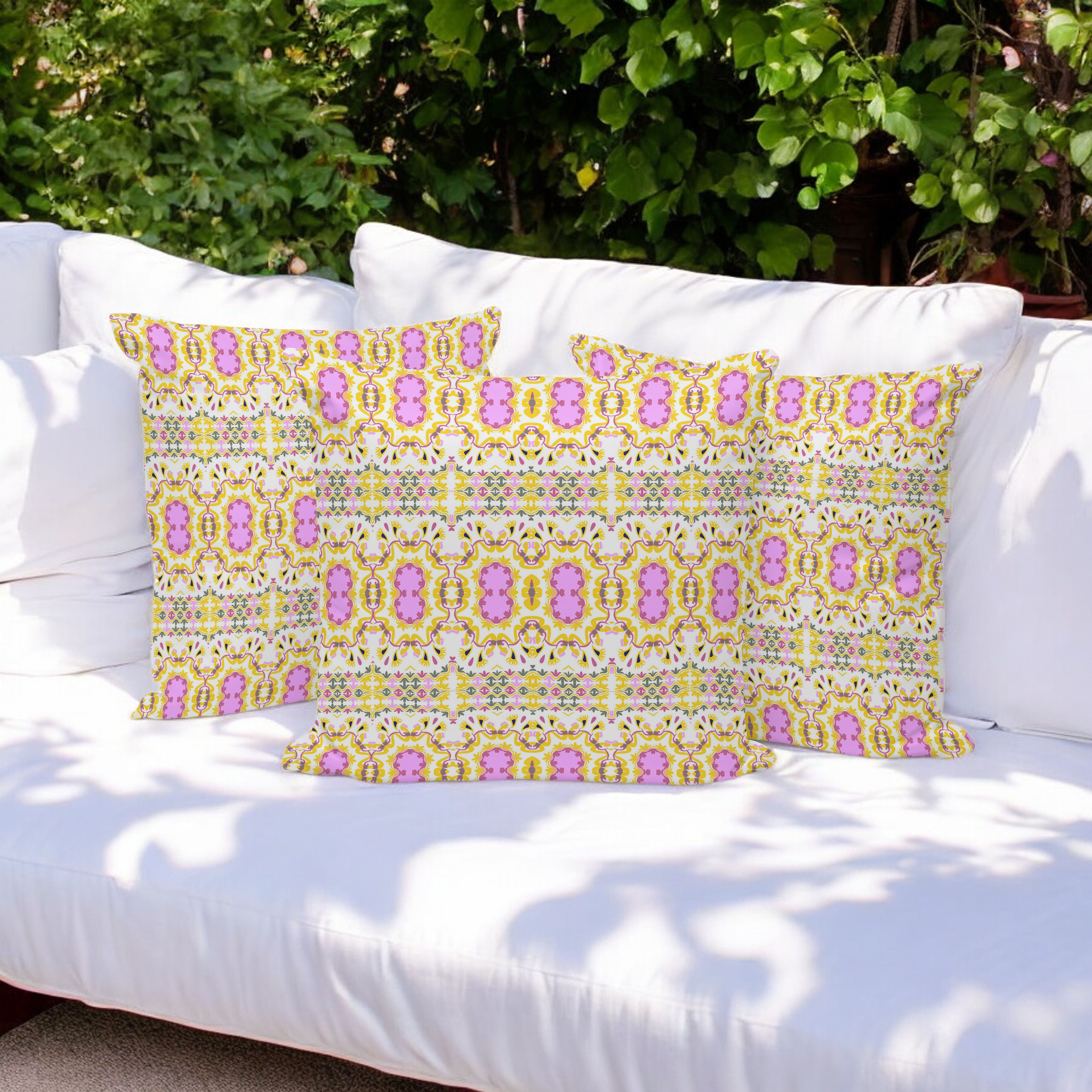 Geo Flowers Indoor/Outdoor Set of 3 Pillows in Yellow