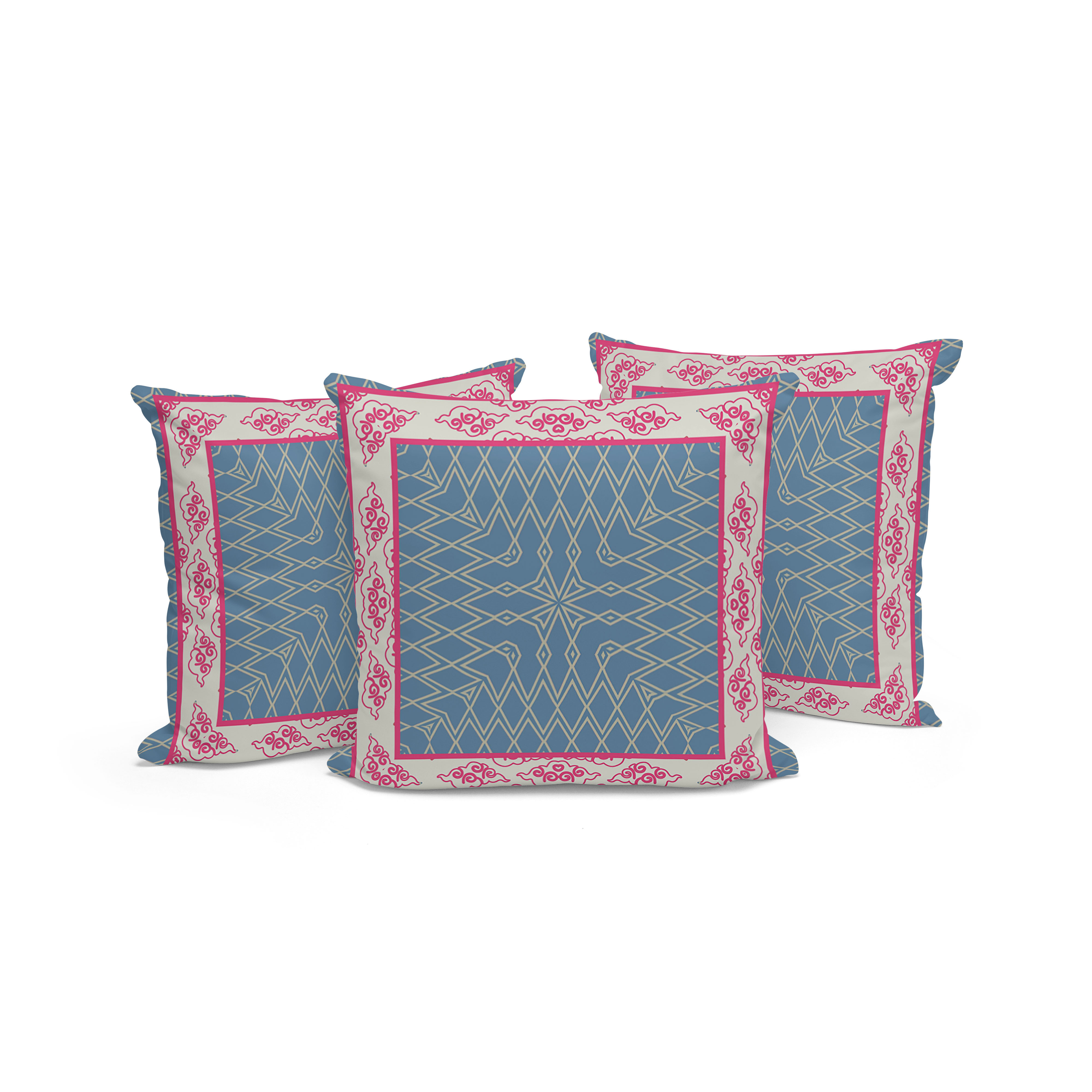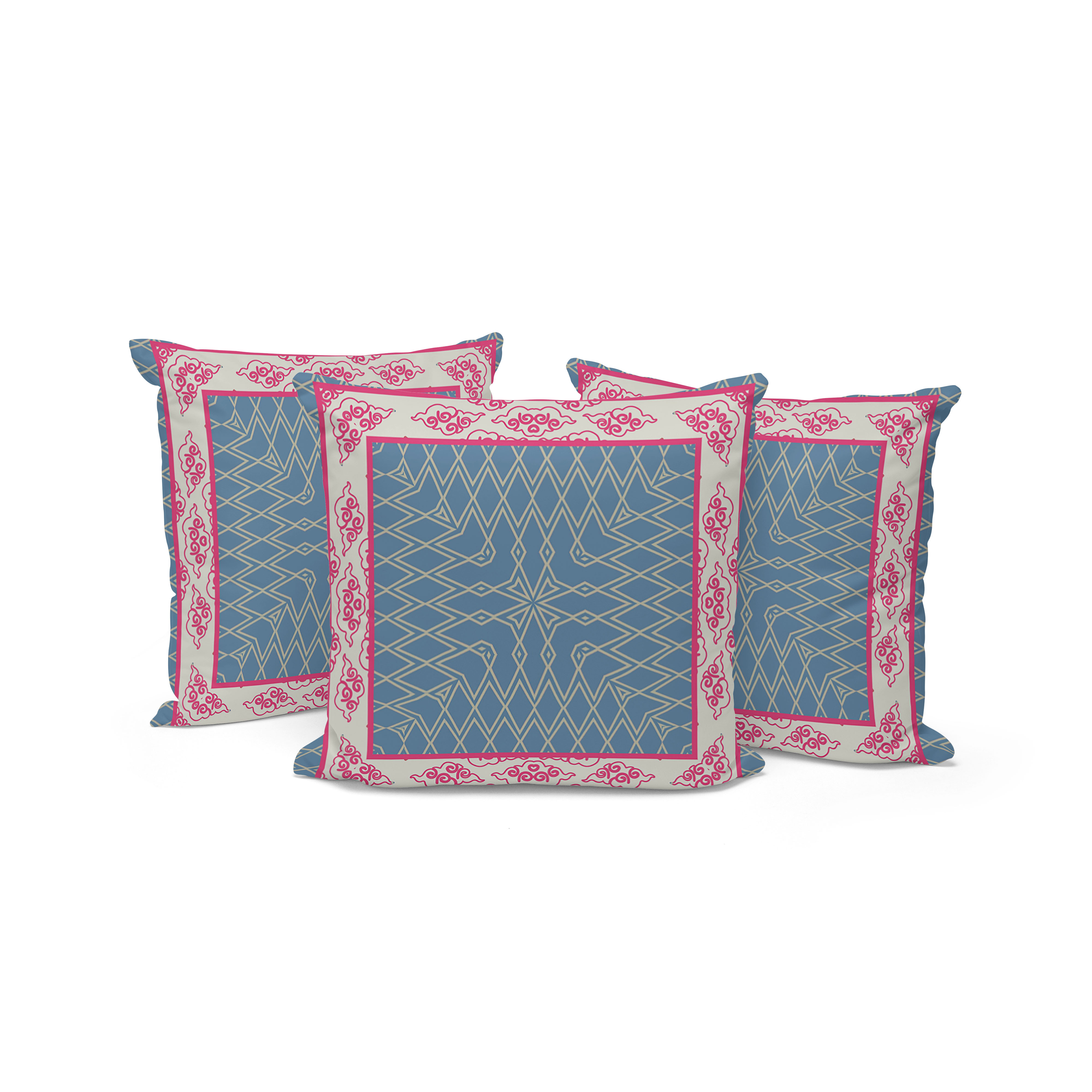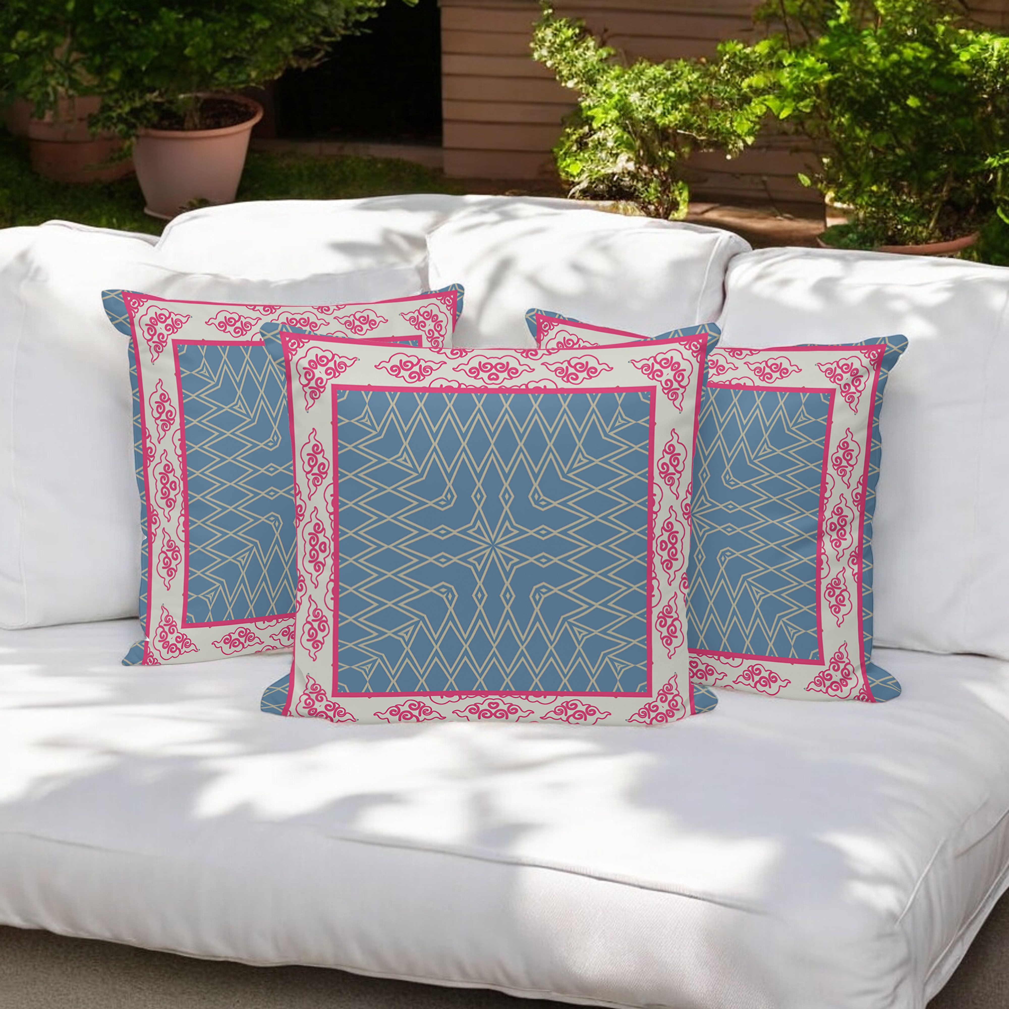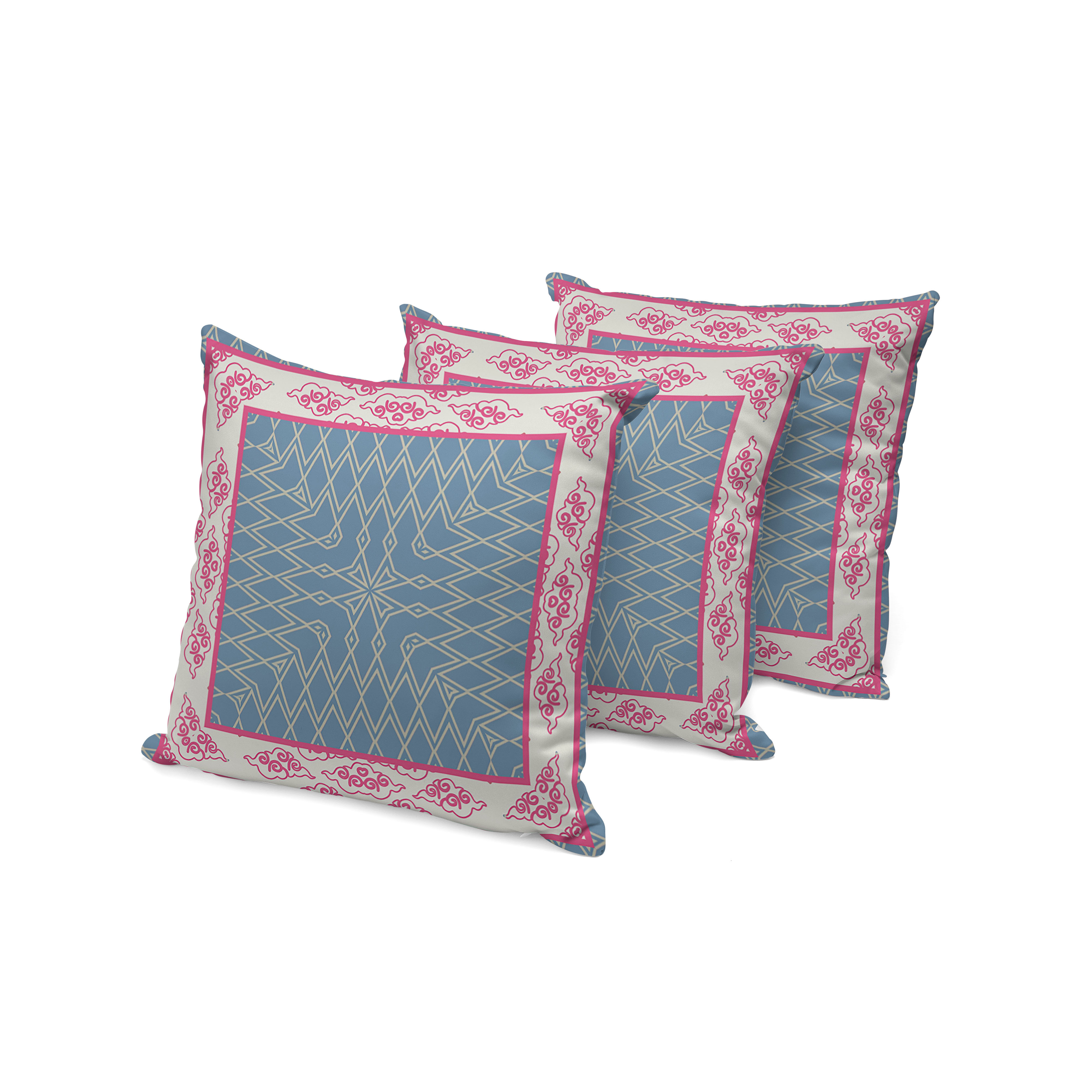 Square Nest Indoor/Outdoor Set of 3 Pillows in Pink and Blue