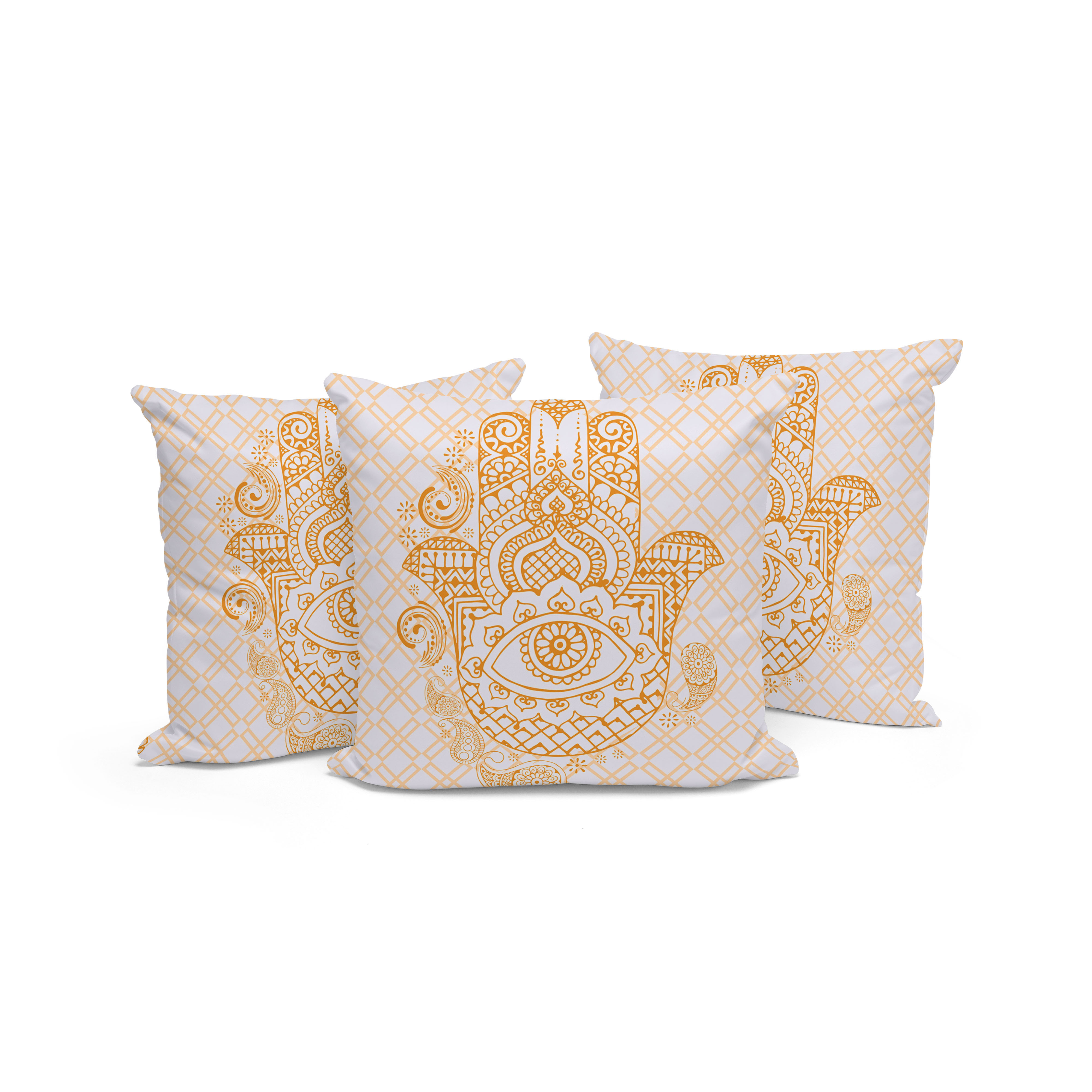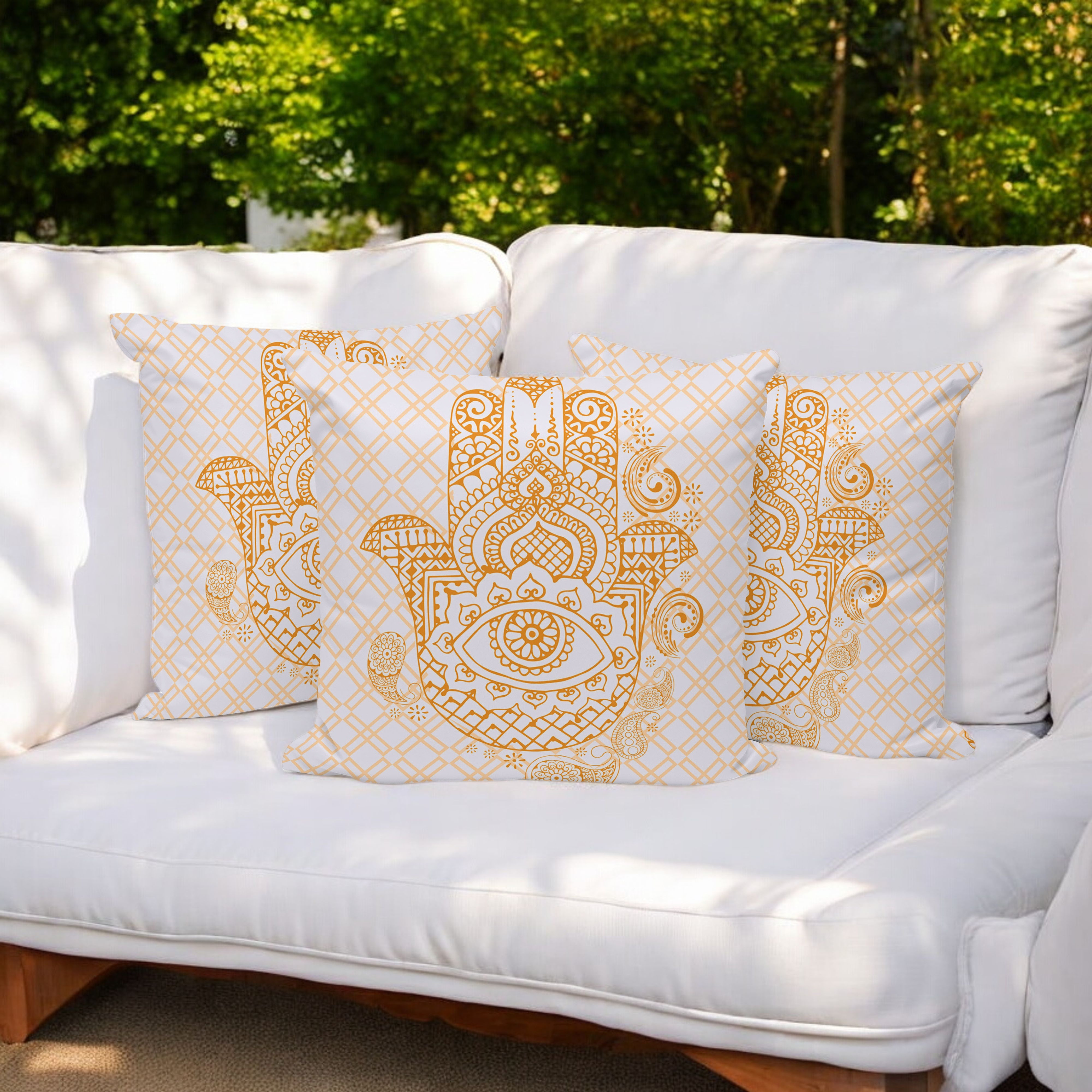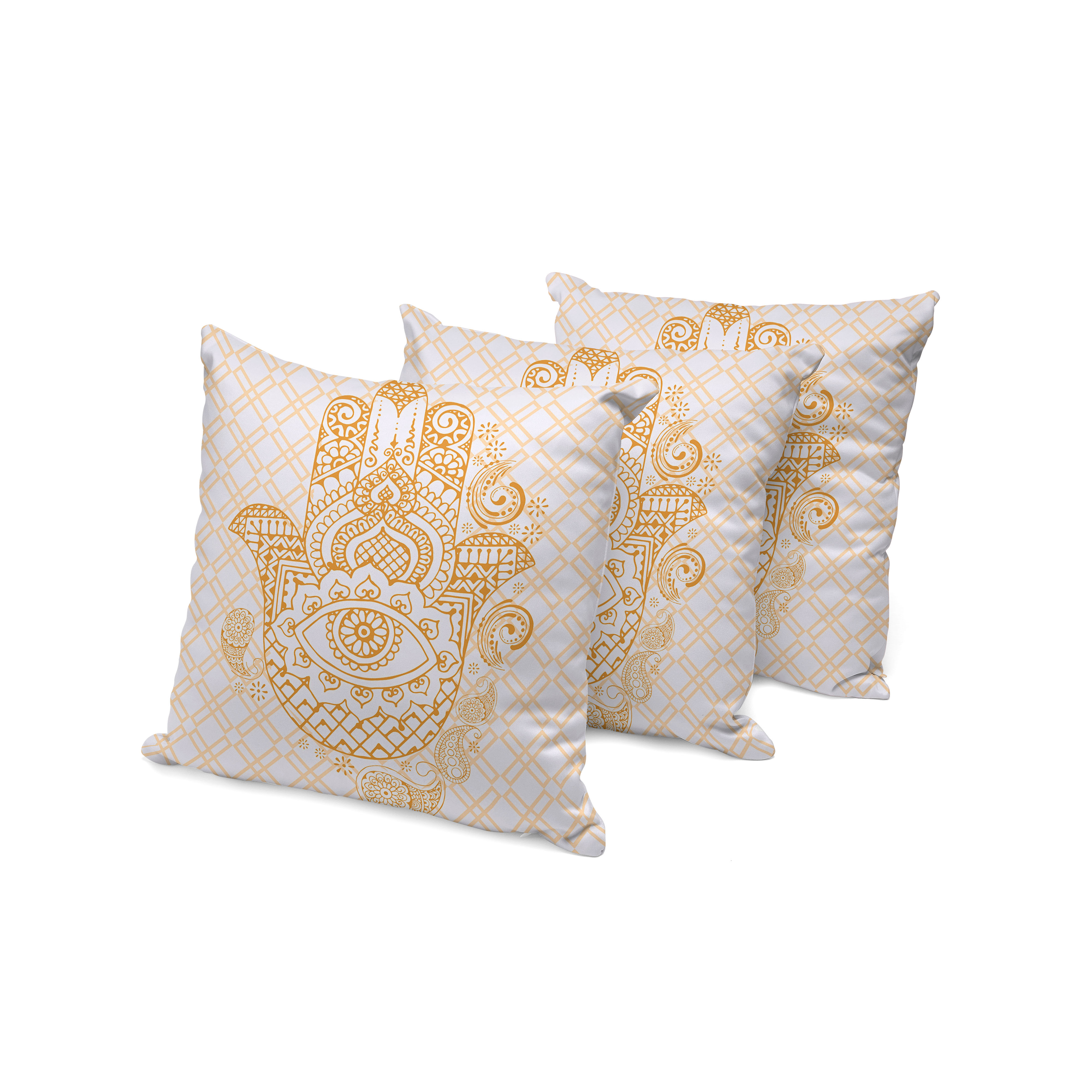 Hamsa Hand Indoor/Outdoor Set of 3 Pillows in Gold
