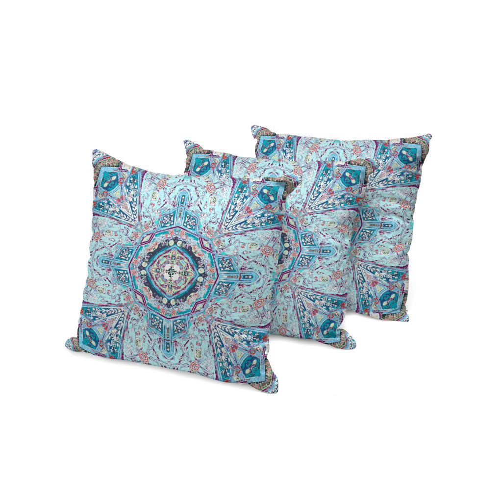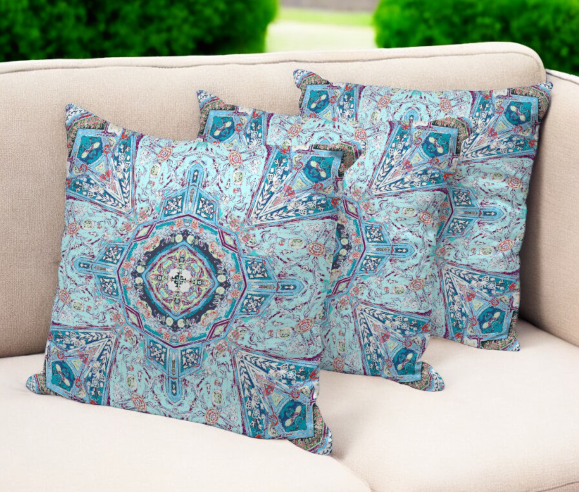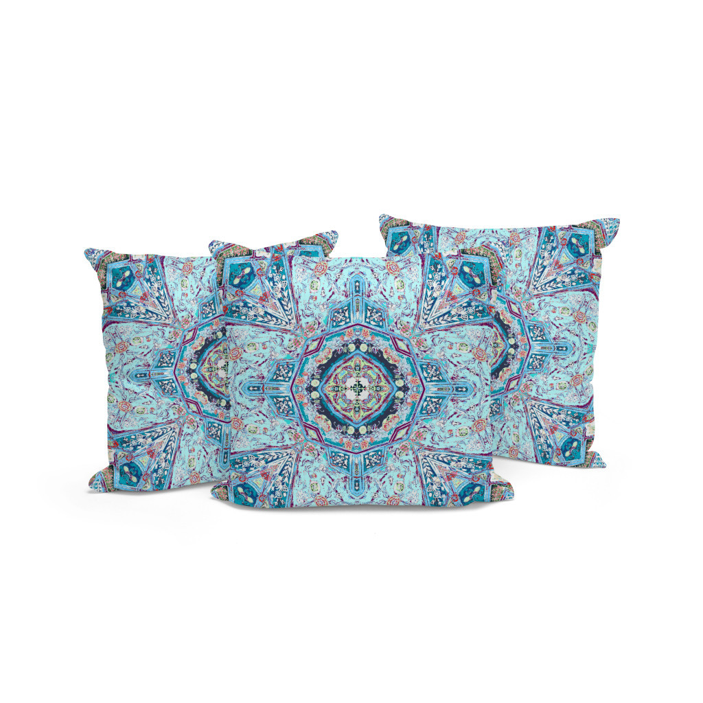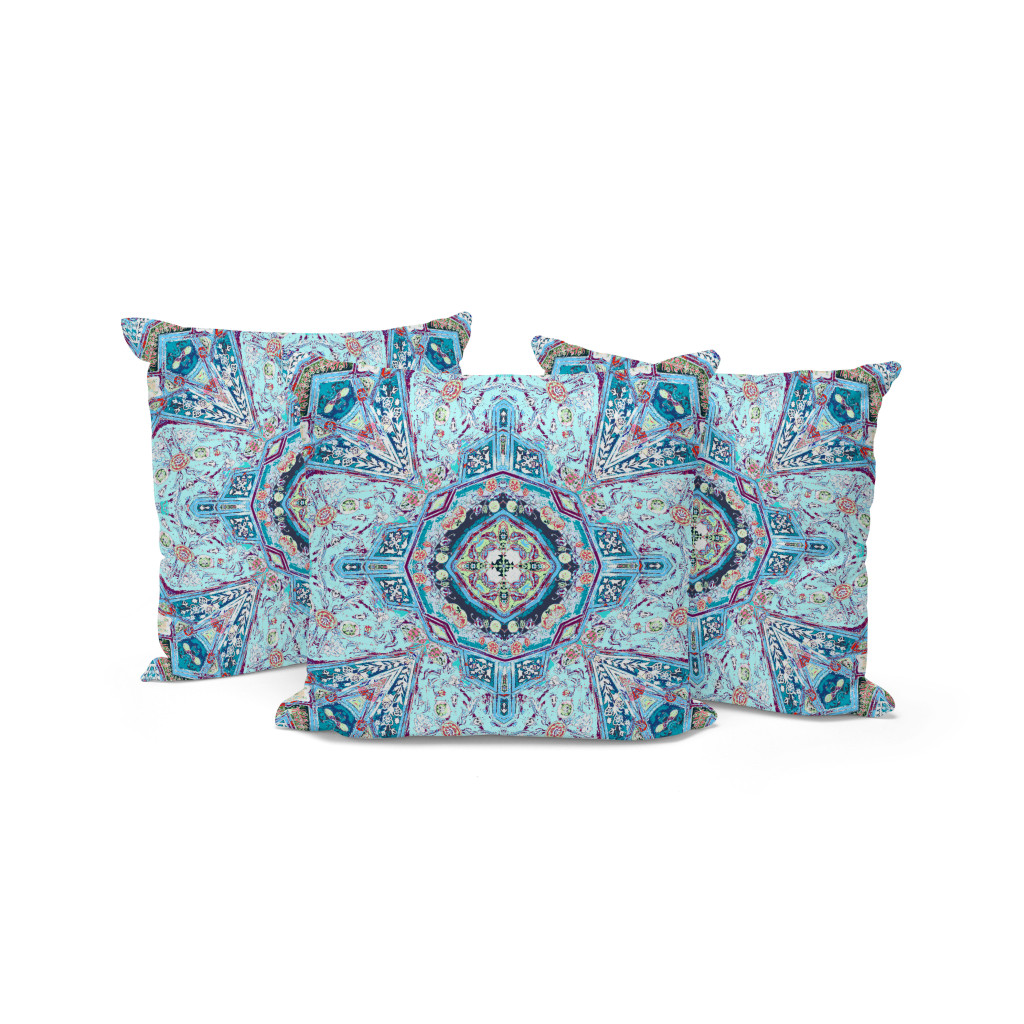 Buddha Flower Ceremony Indoor/Outdoor Set of 3 Pillows in Light Blue