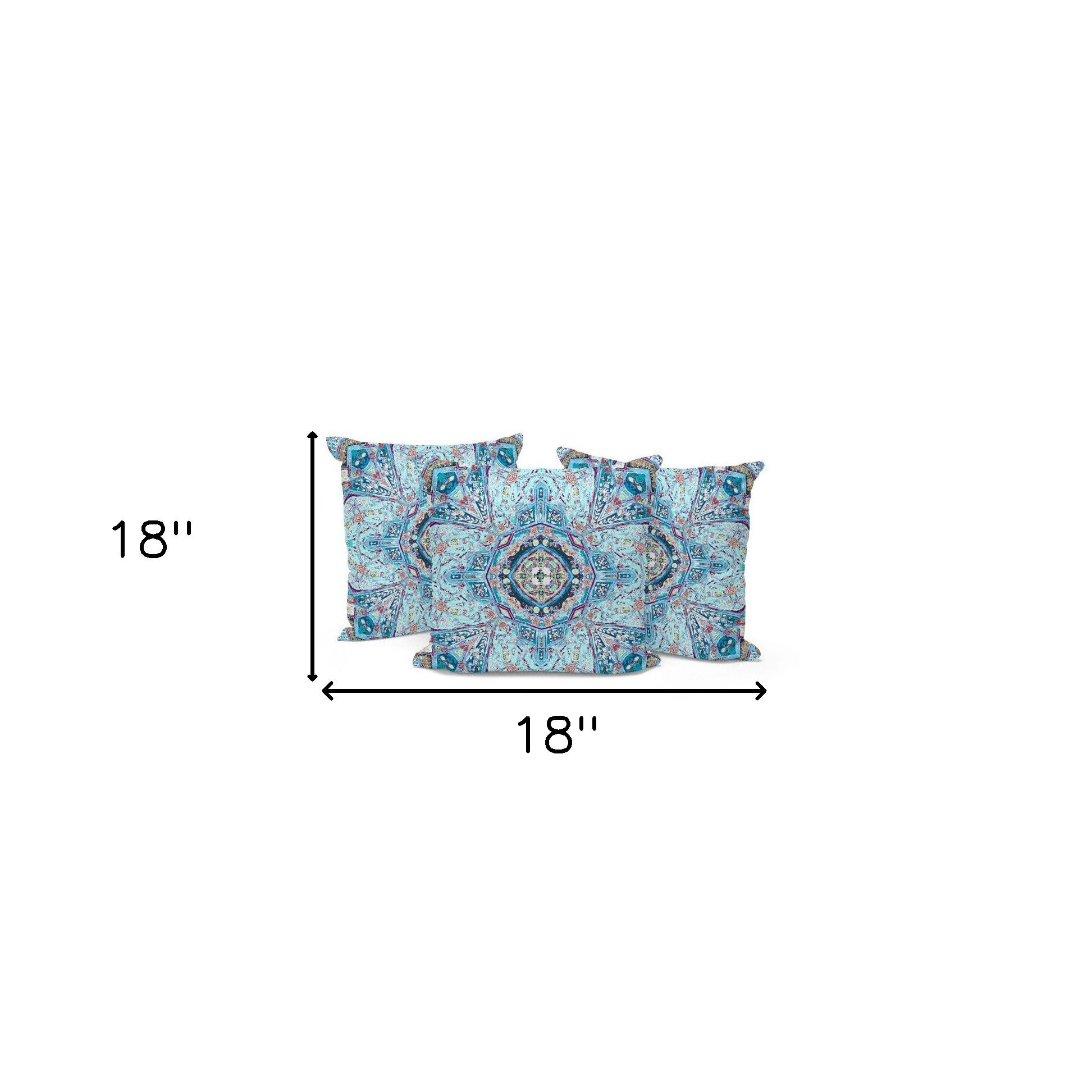 Set of Three Blue Botanical Indoor Outdoor Throw Pillow
