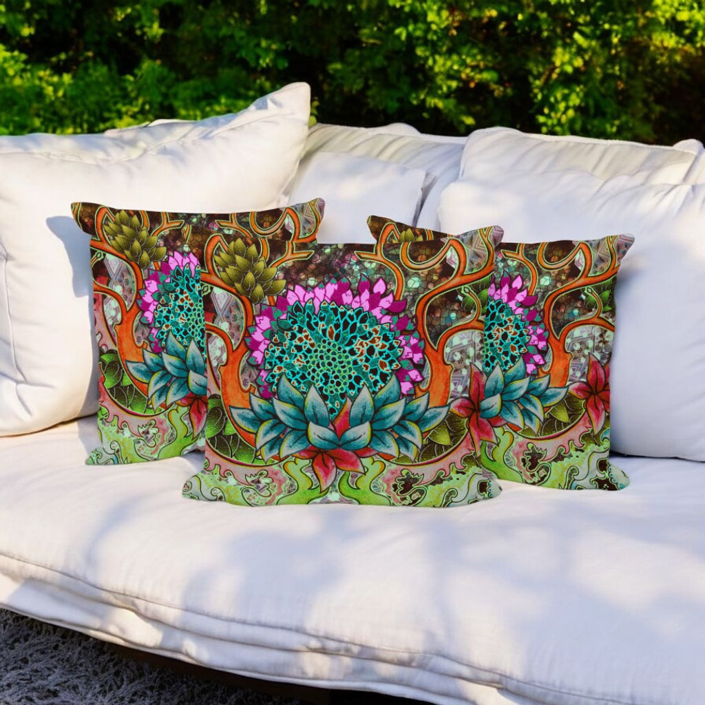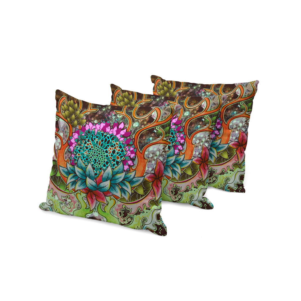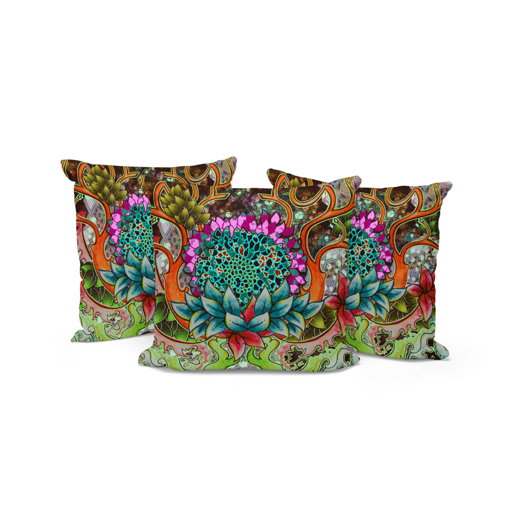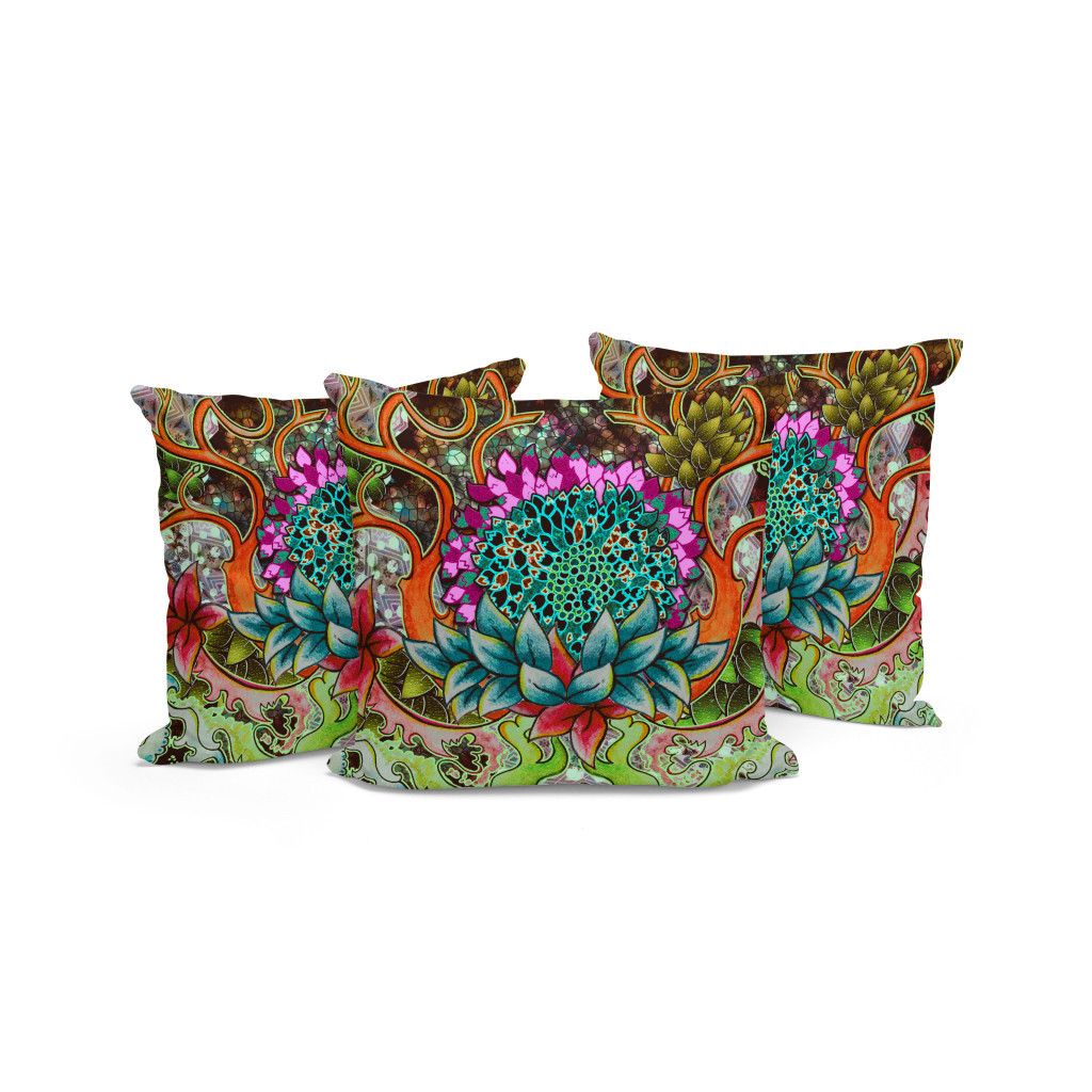 Set of Three Green Botanical Indoor Outdoor Throw Pillow