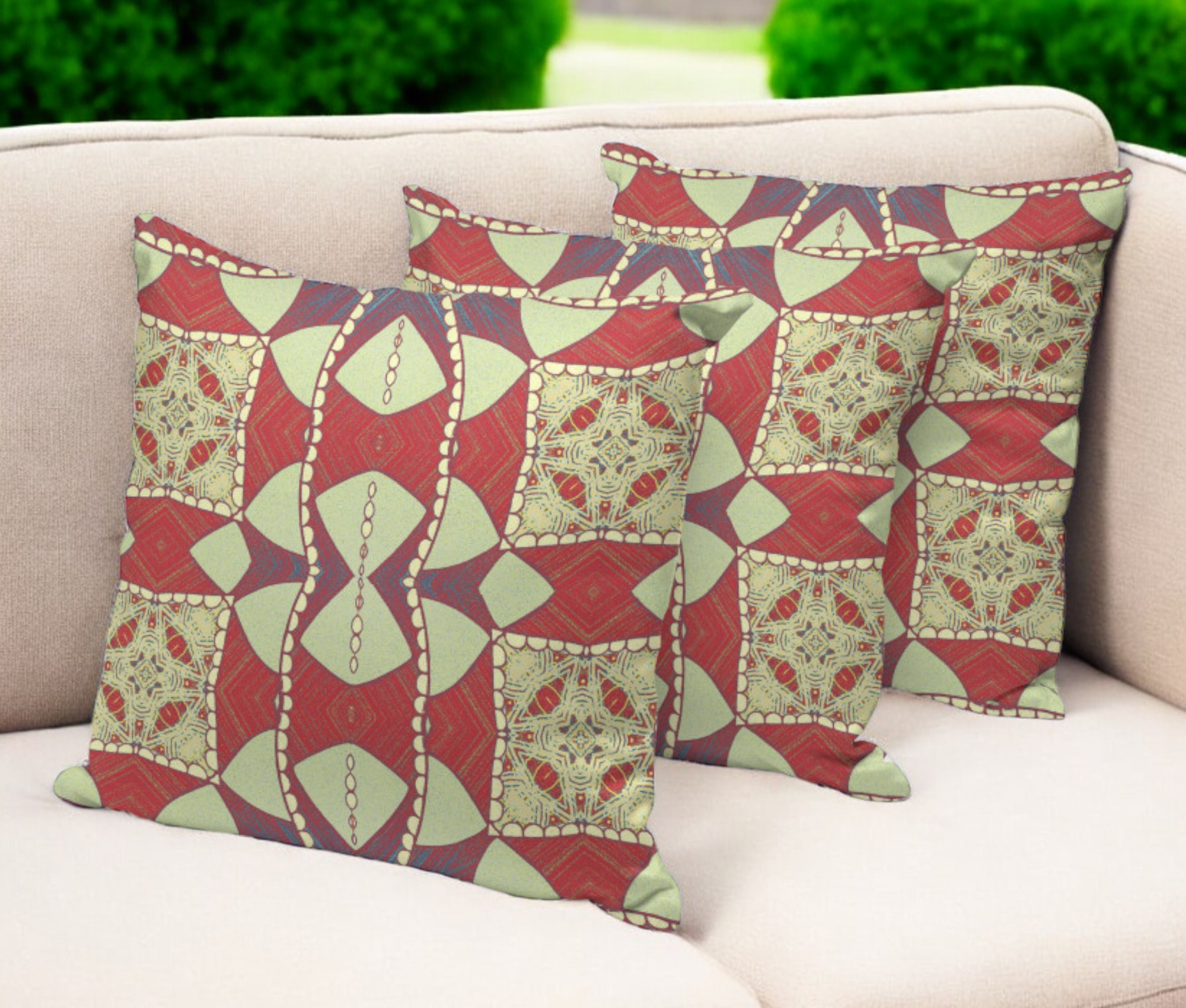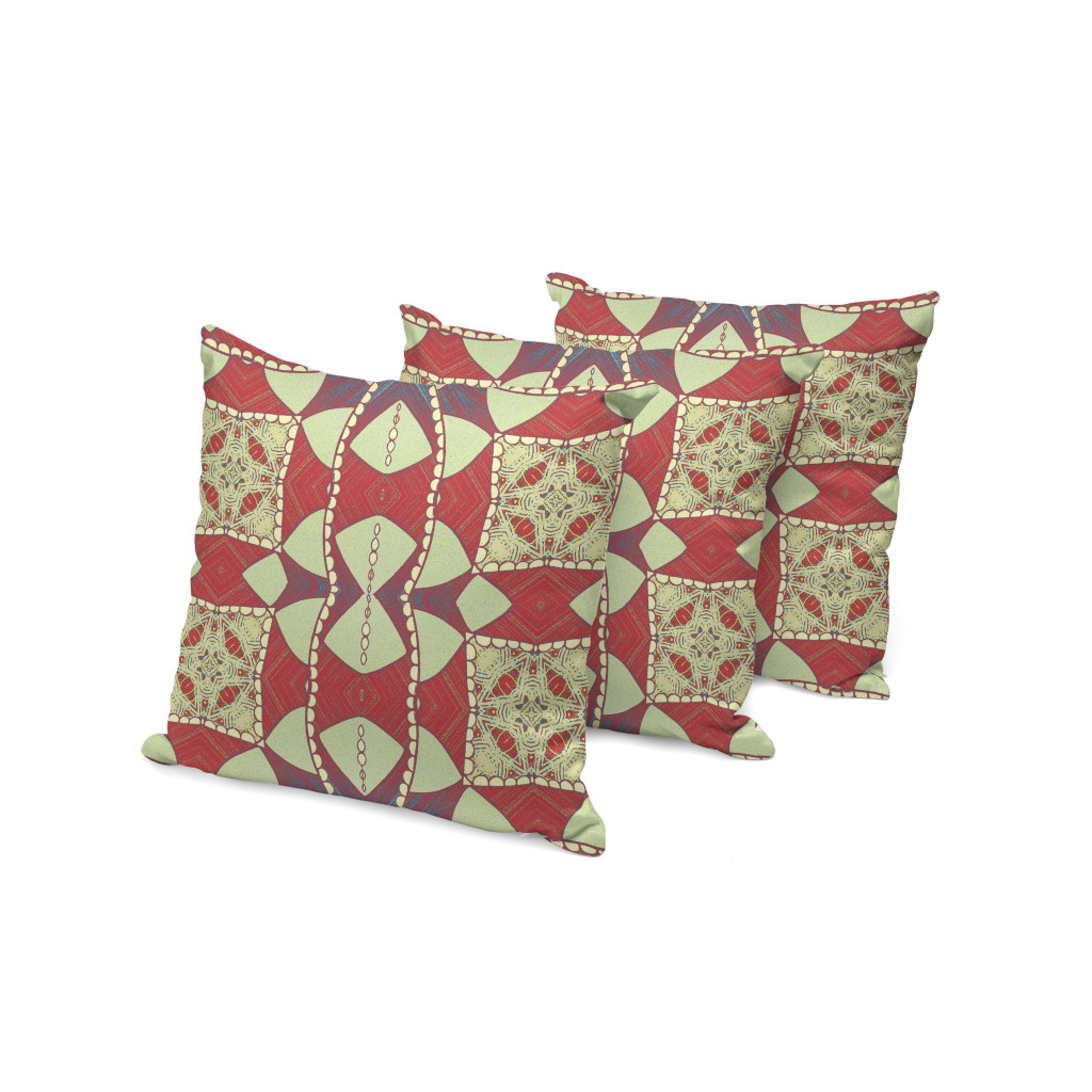 Set of Three Magenta Geometric Indoor Outdoor Throw Pillow