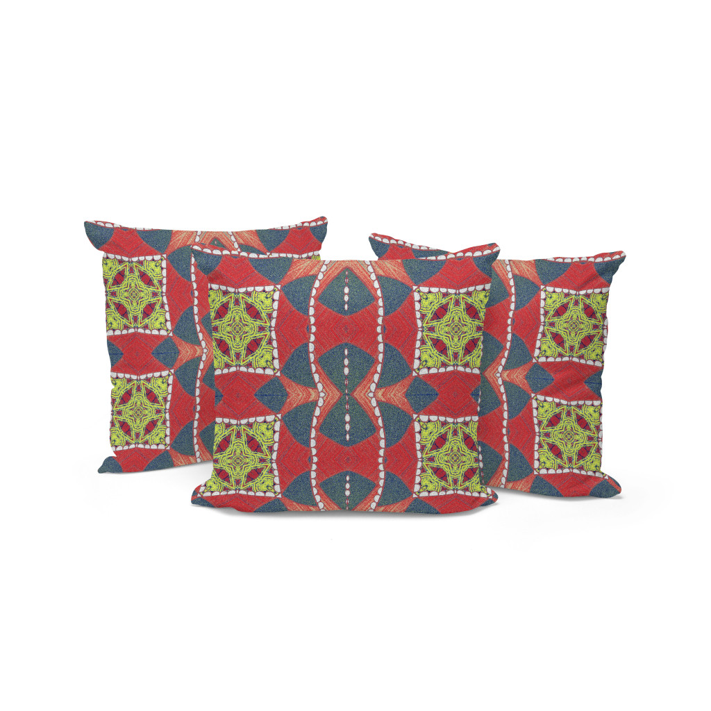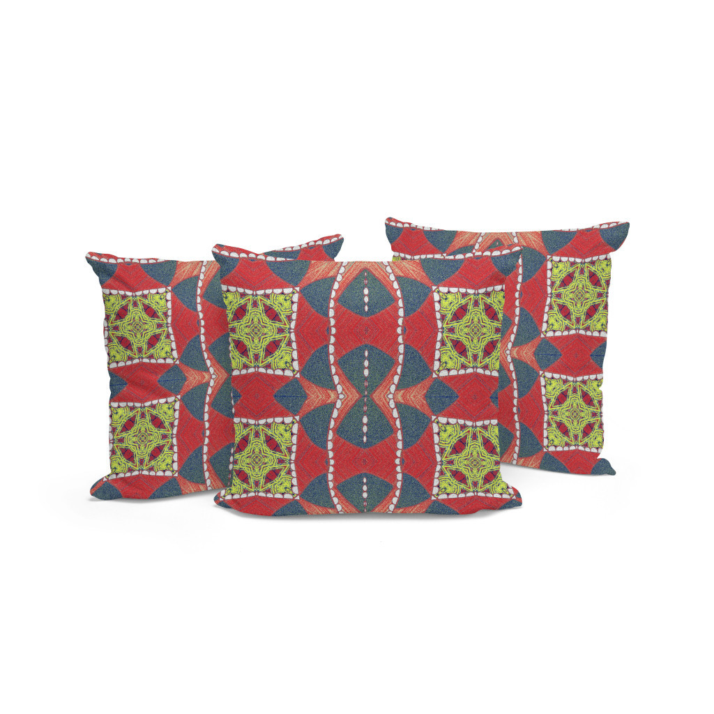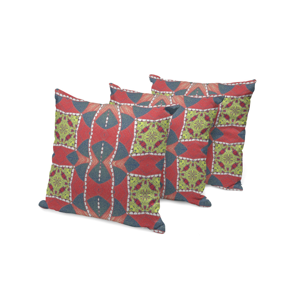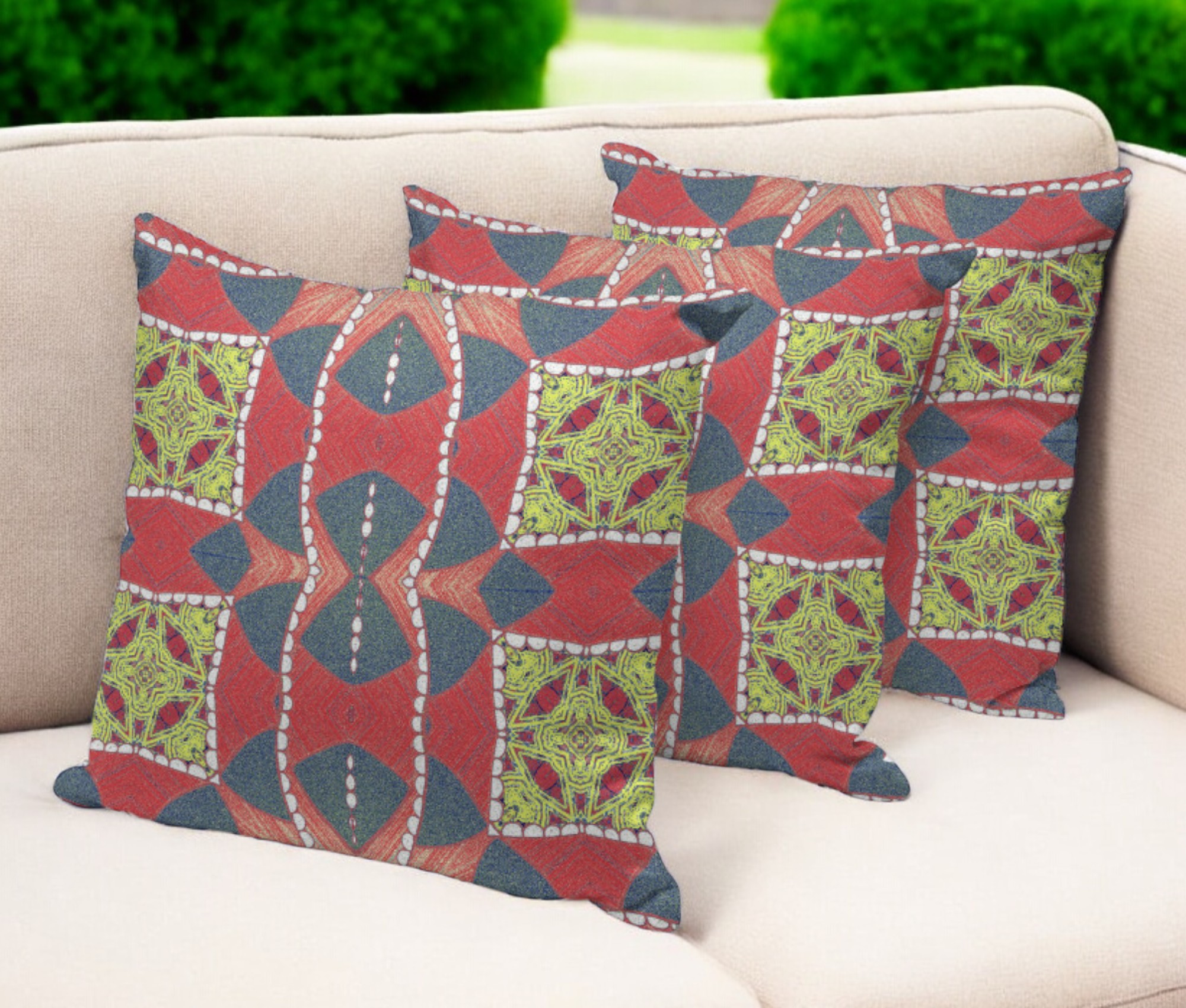 Set of Three Red Geometric Indoor Outdoor Throw Pillow