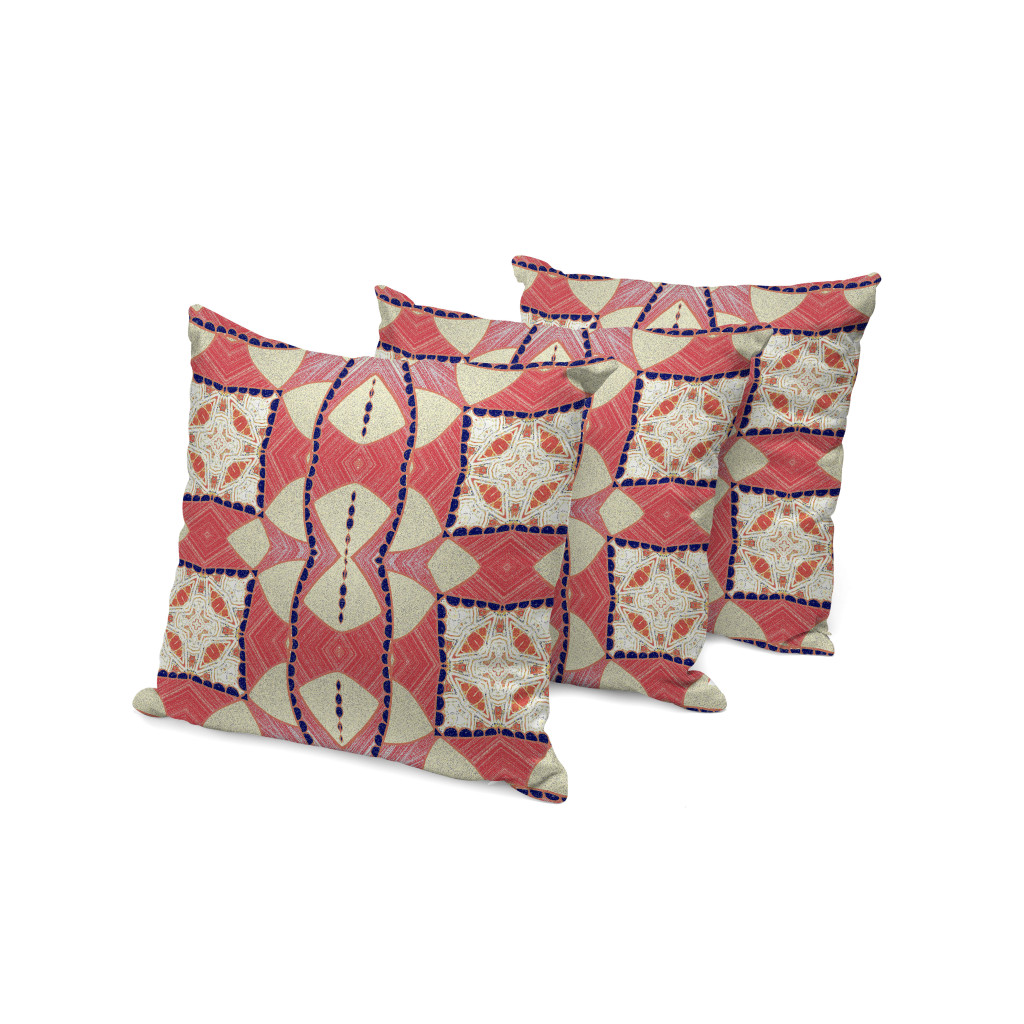 Set of Three Red Geometric Indoor Outdoor Throw Pillow