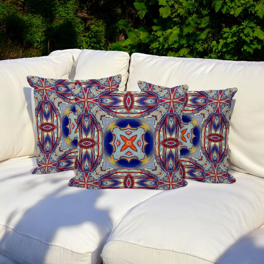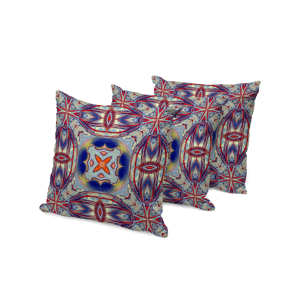 Pastel Floral Squares Indoor/Outdoor Set of 3 Pillows in Gray Red Orange Midnight Blue