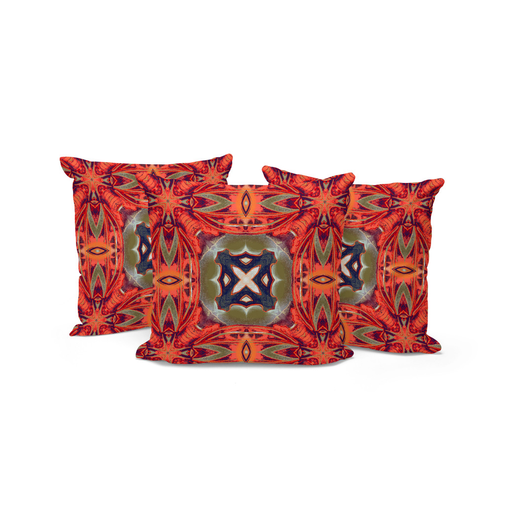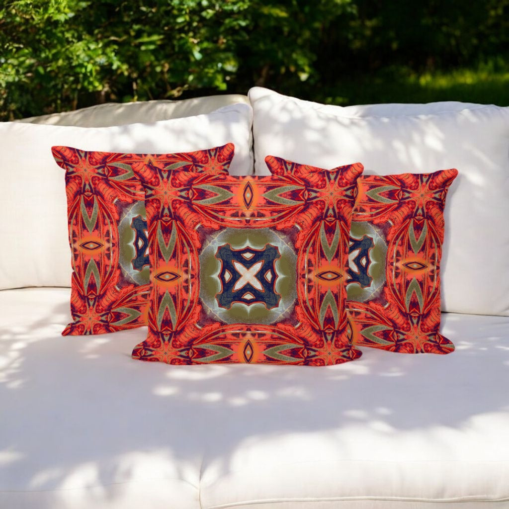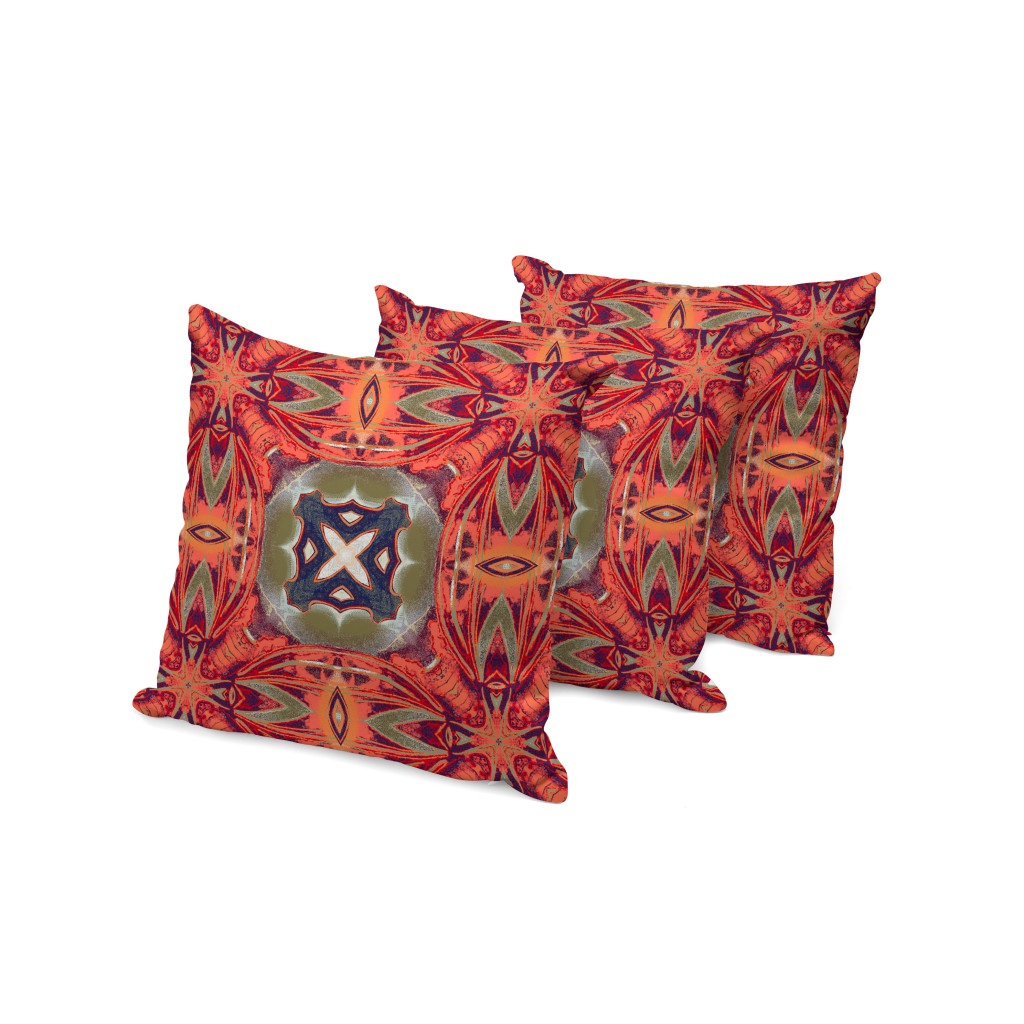Set of Three Peach Abstract Indoor Outdoor Throw Pillow