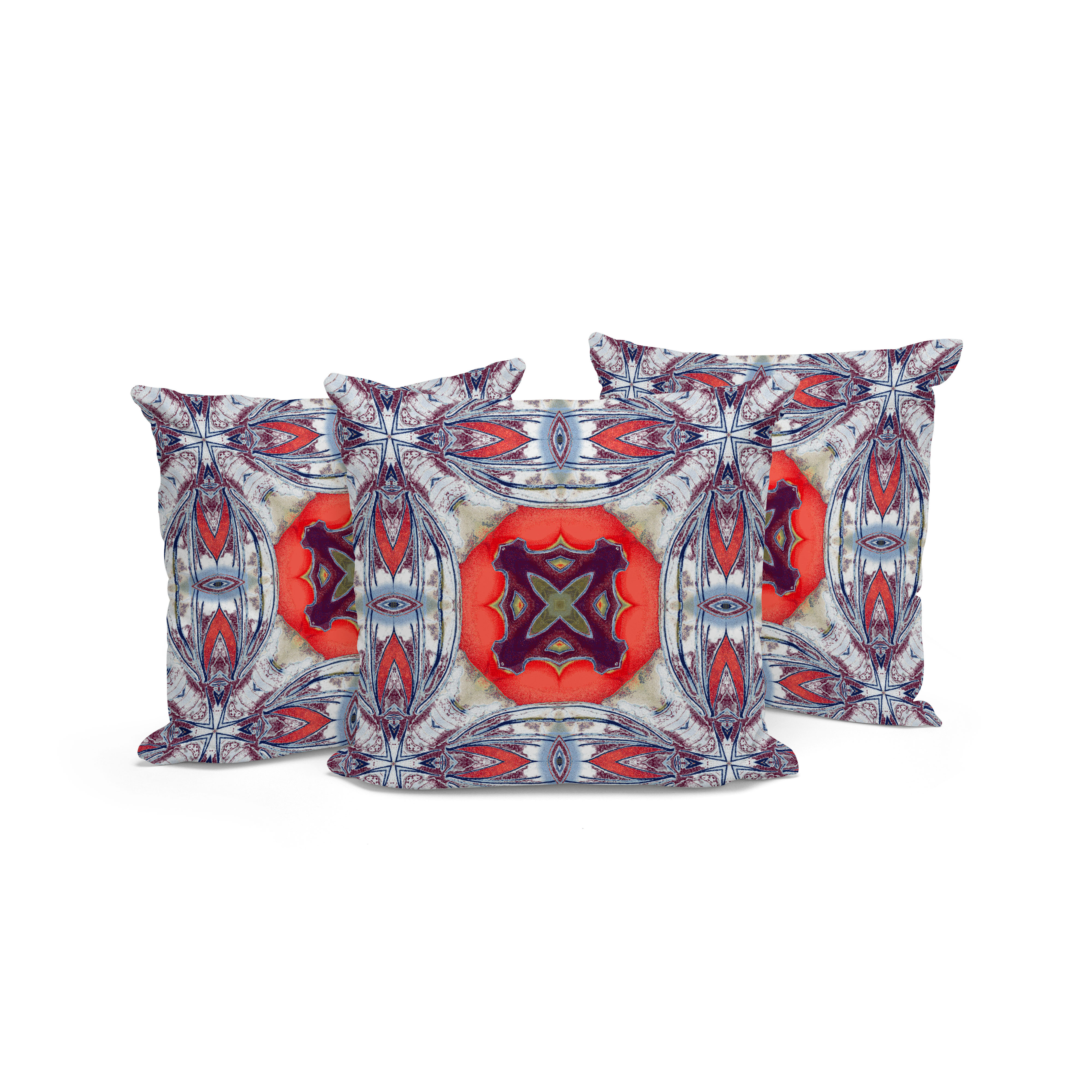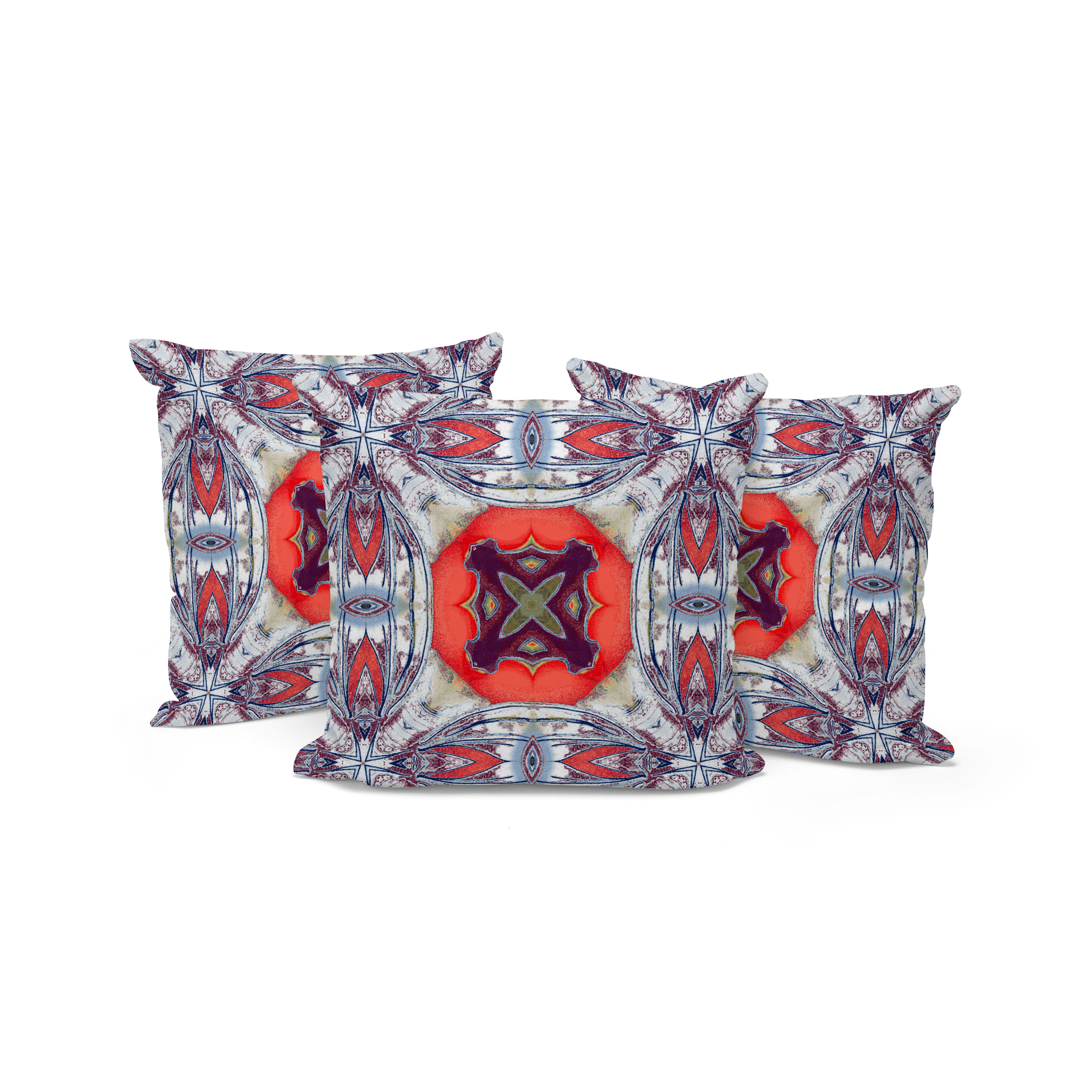 Set of Three Blue Abstract Indoor Outdoor Throw Pillow