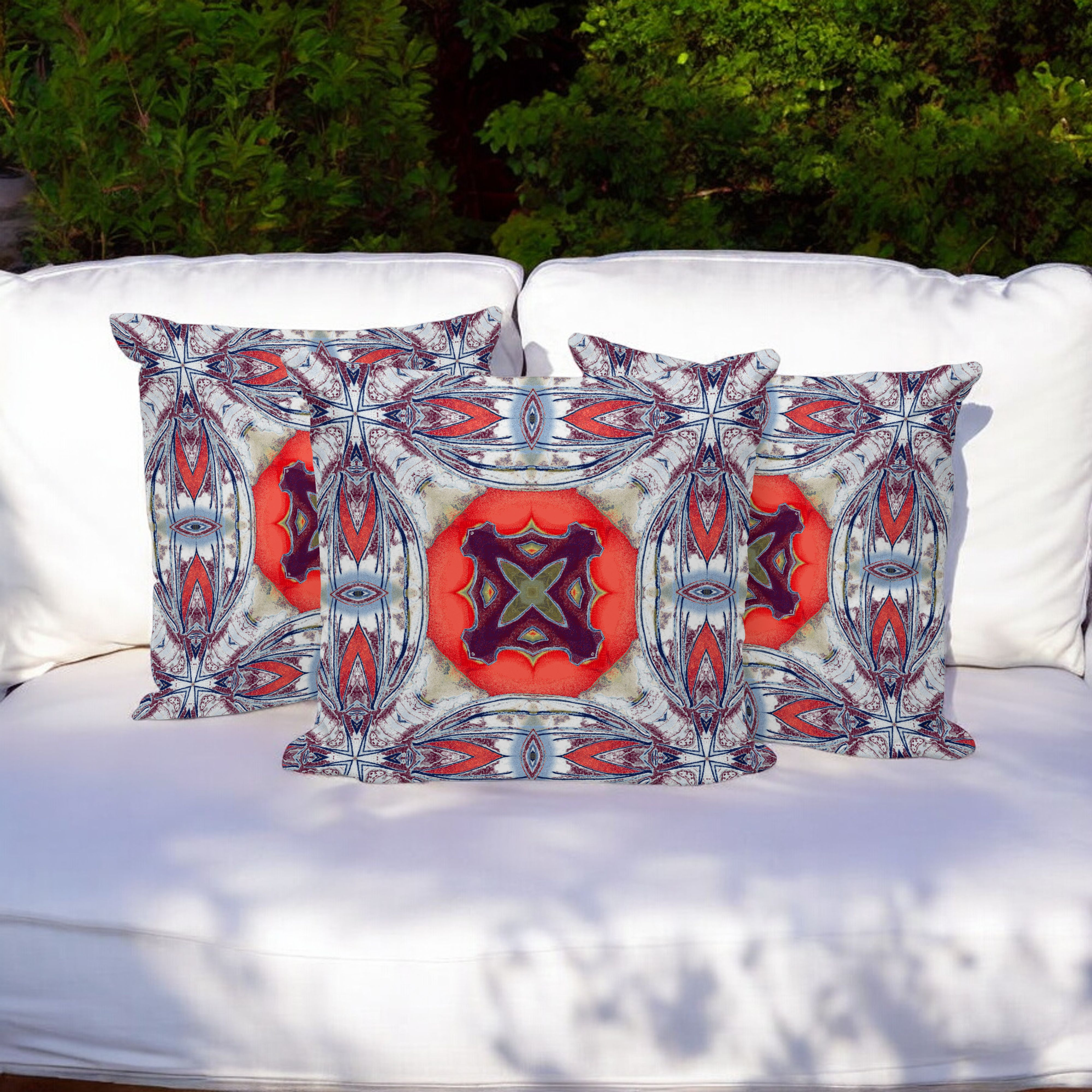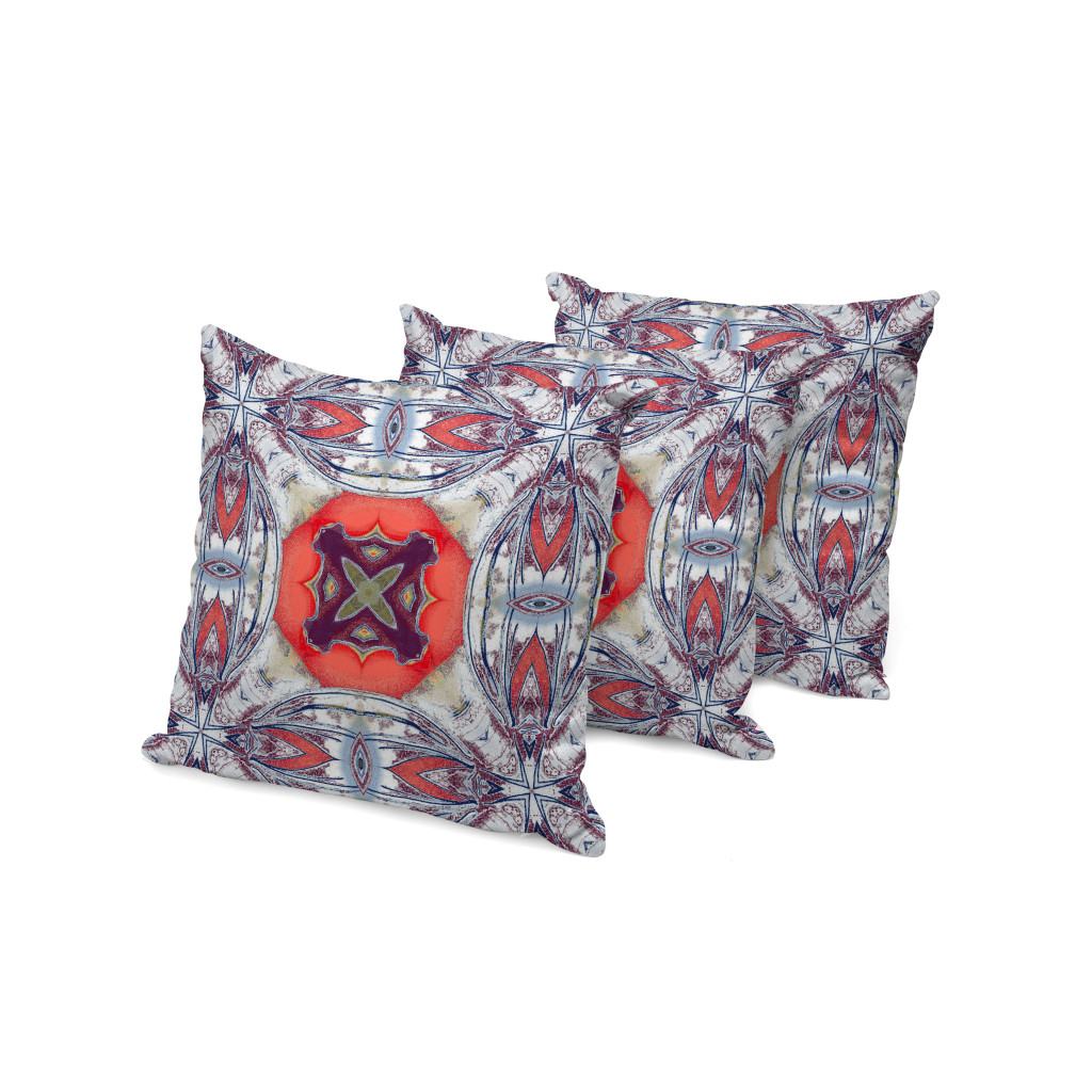 Pastel Floral Squares Indoor/Outdoor Set of 3 Pillows in Light Blue Gray Peach